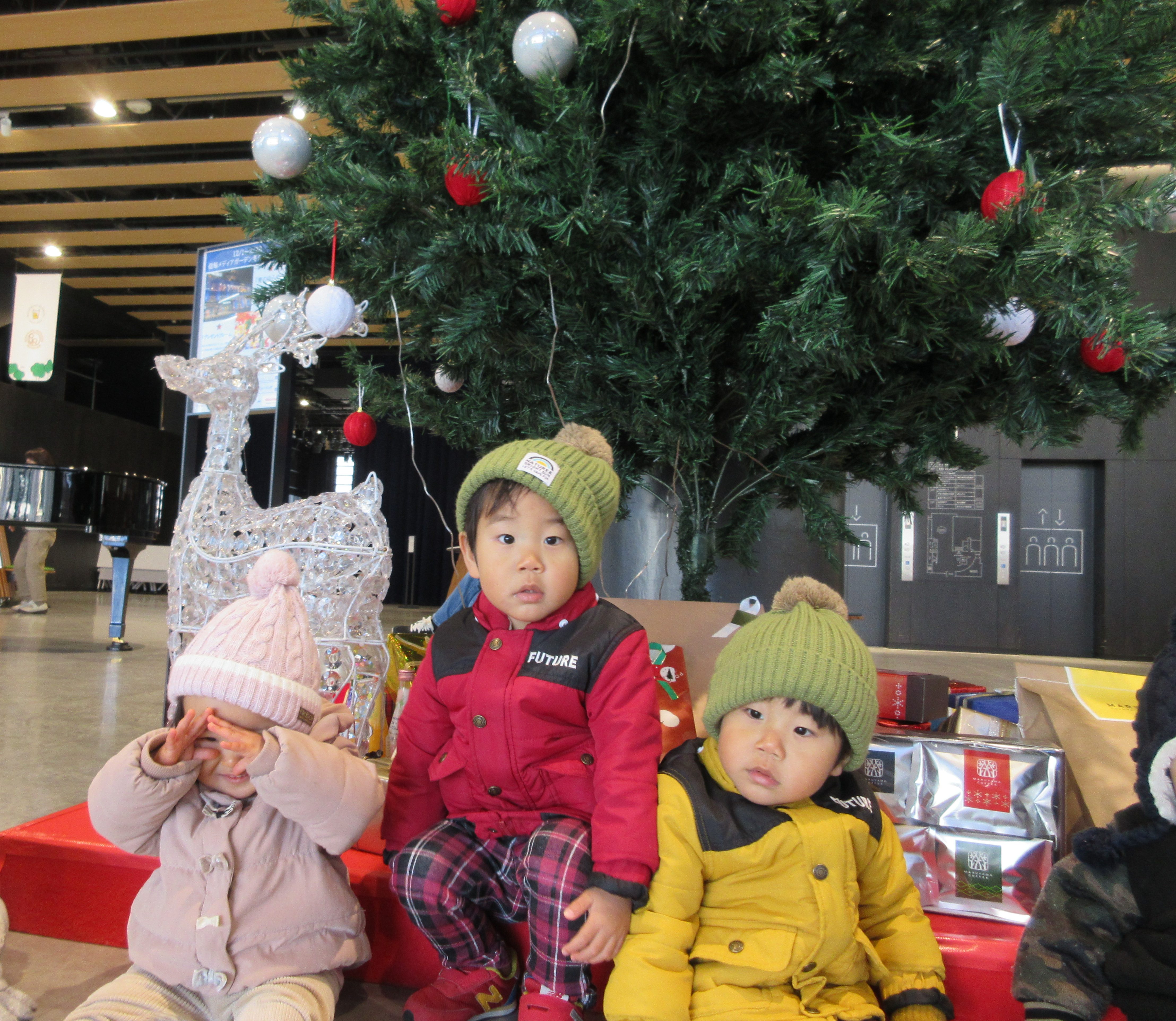 クリスマスツリーが気に入ったのか、集合写真を撮った後もなかなかクリスマスツリーの下から動けない子どもたちでした