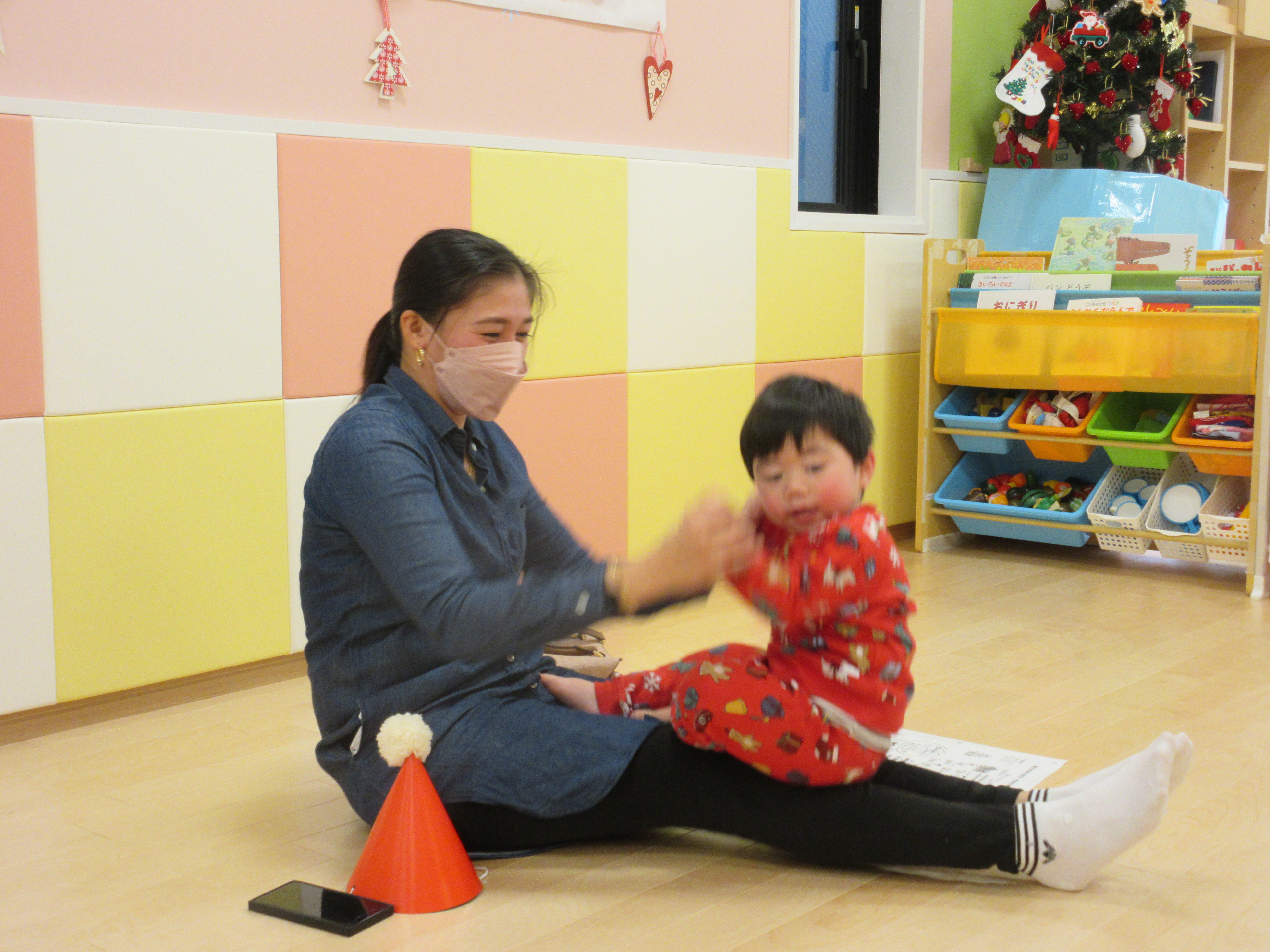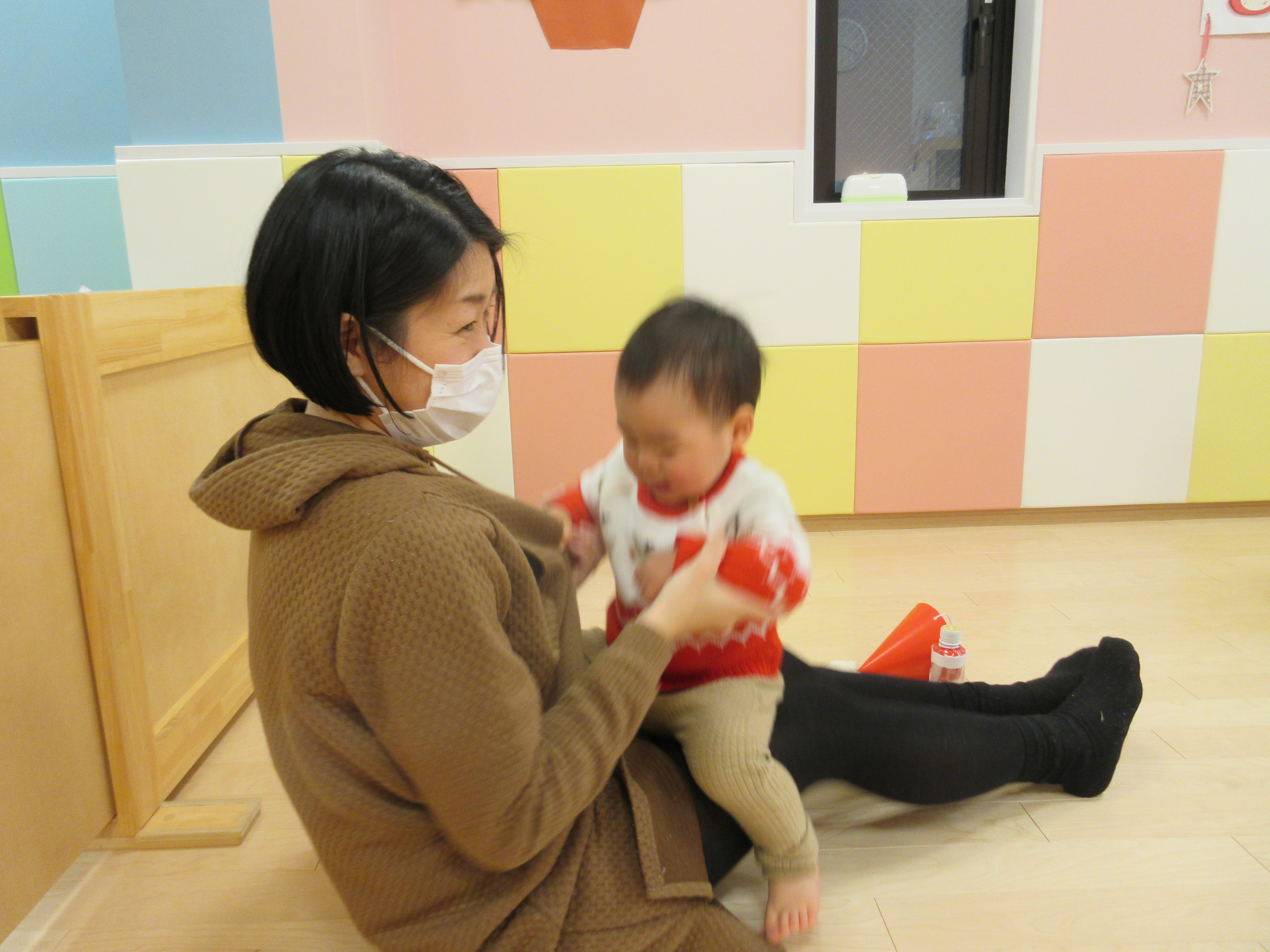 ふれあい遊びをお母さんと楽しんだ後、会は終了・・・。
