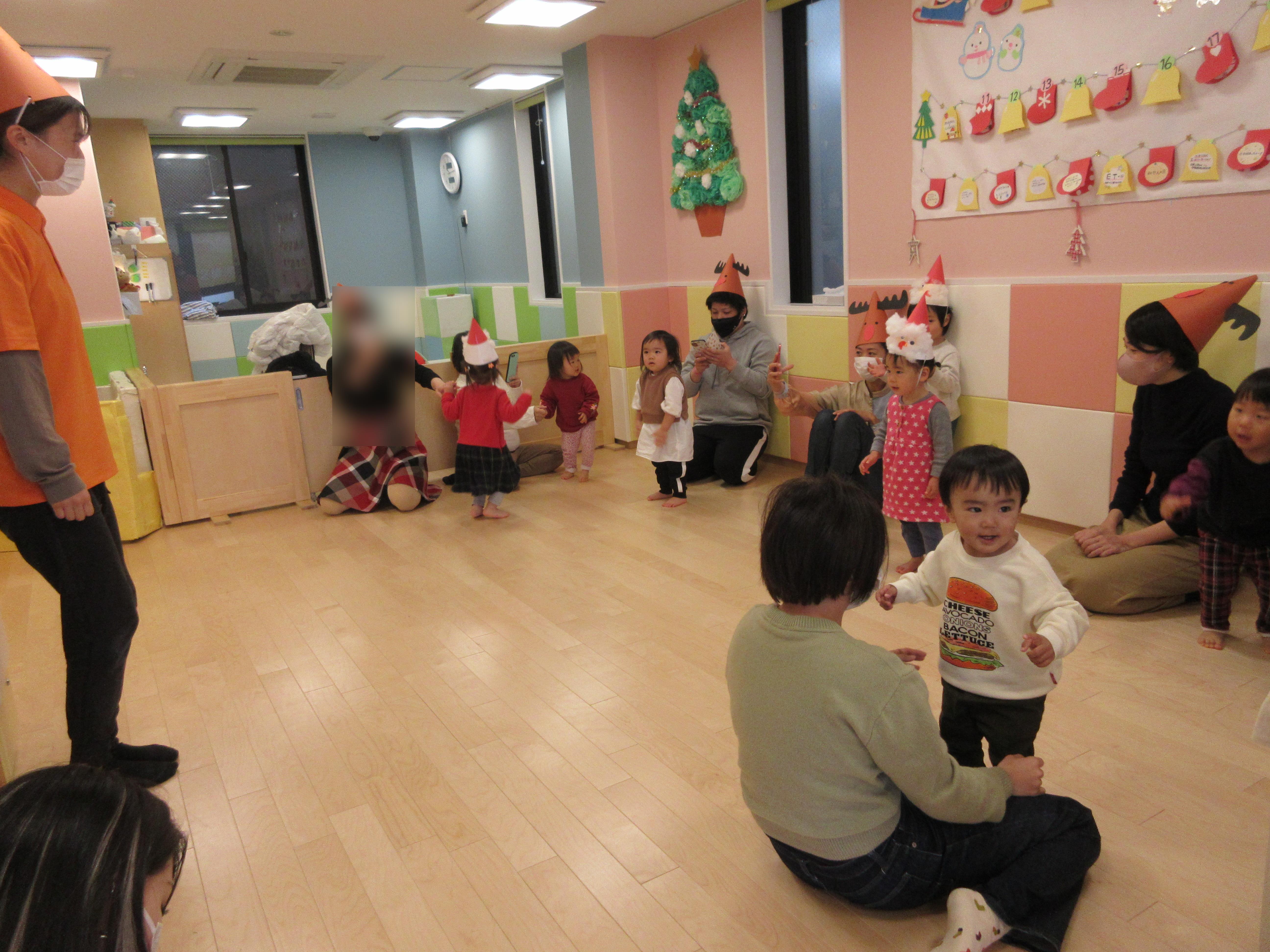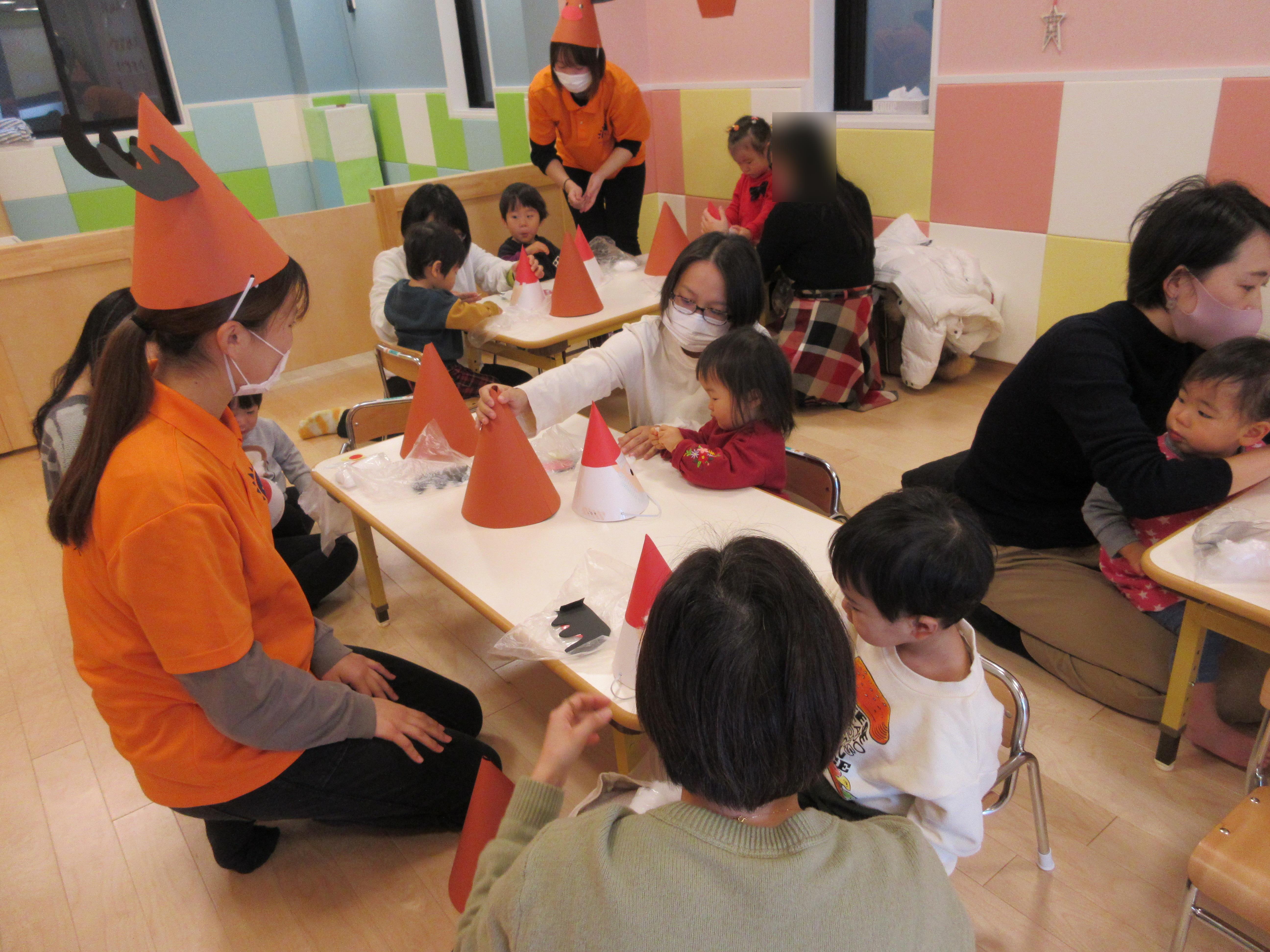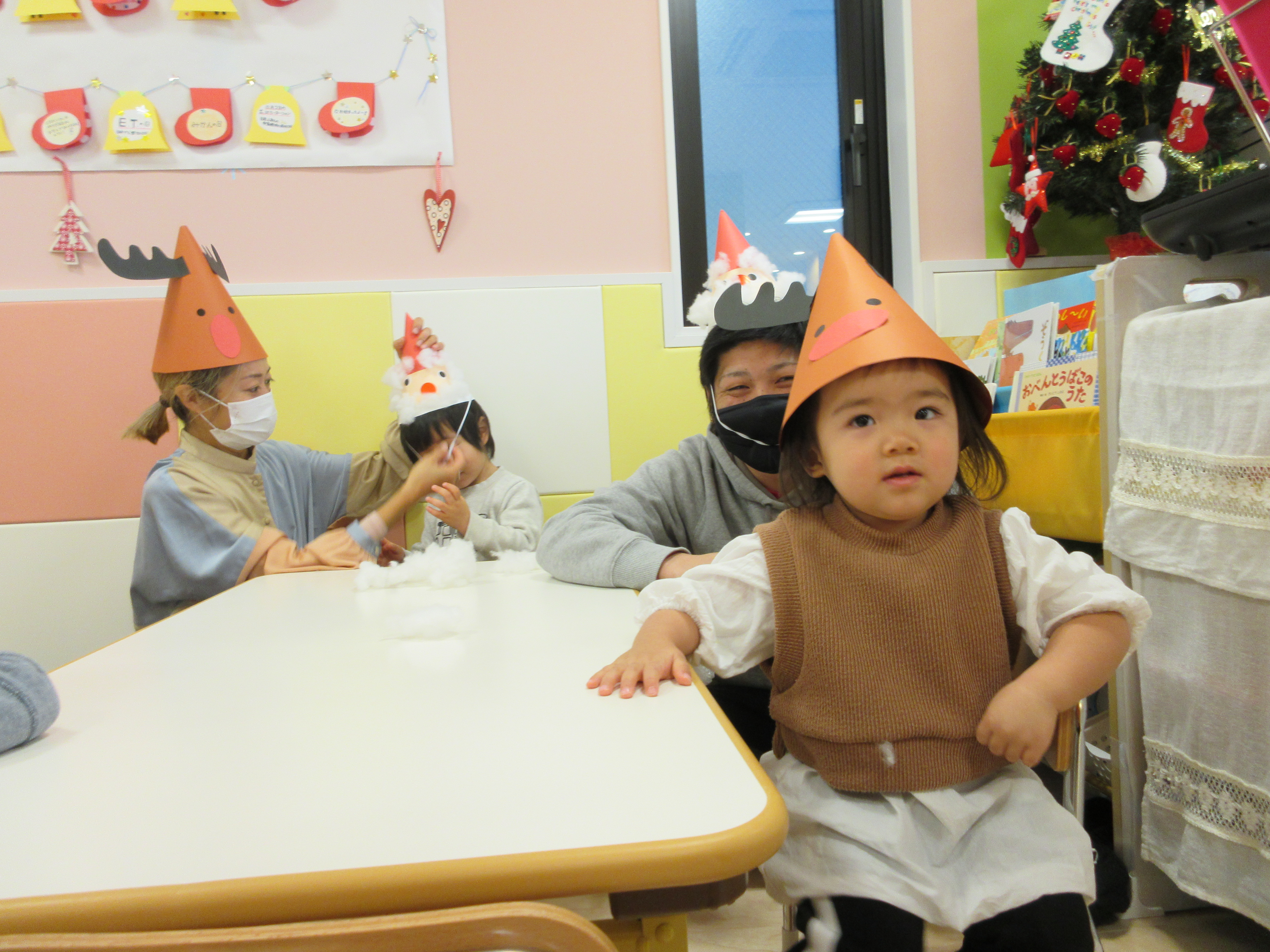 お父さんやお母さん用のトナカイさん帽子でしたが、トナカイさんの帽子をかぶる子もいましたよ?