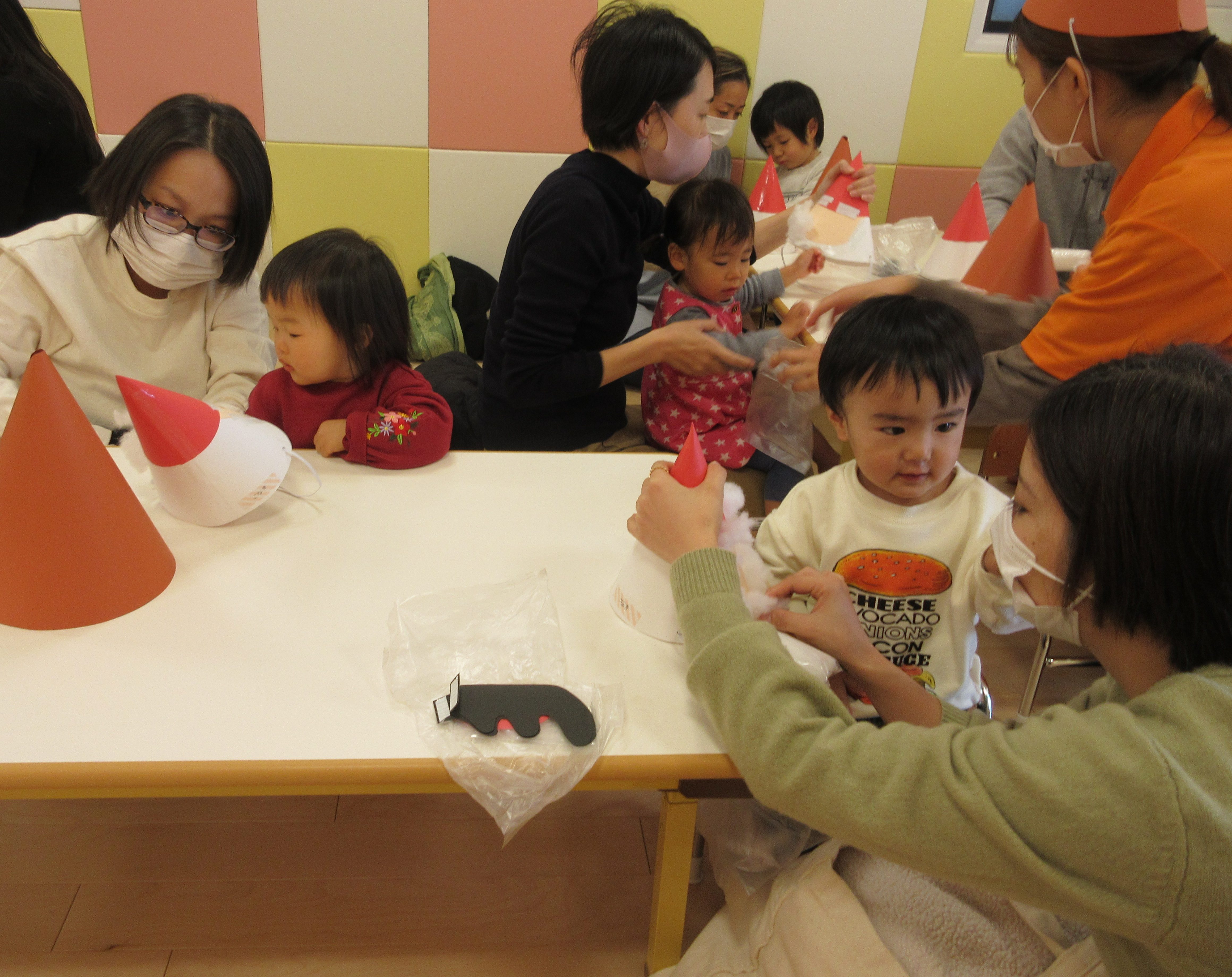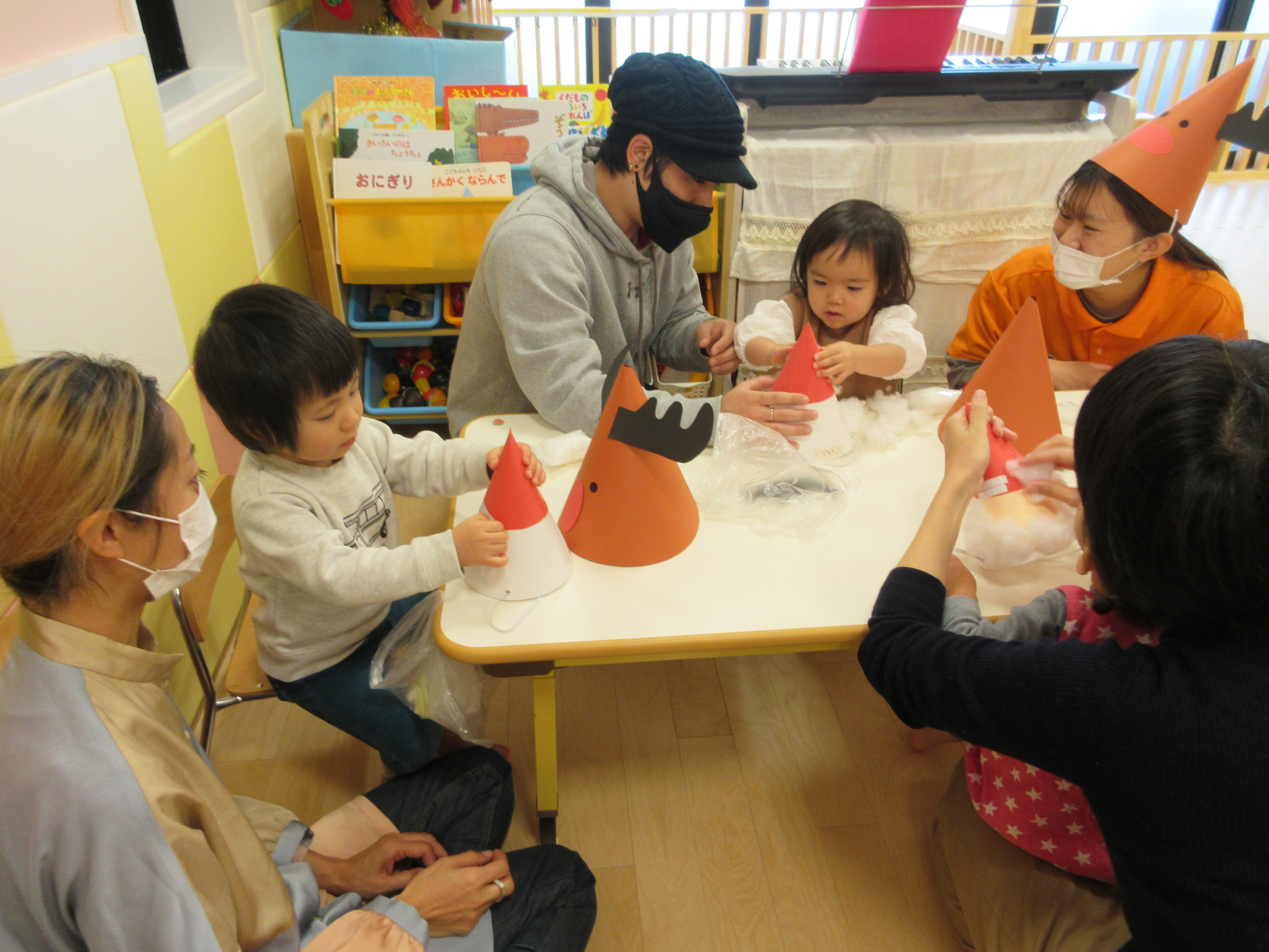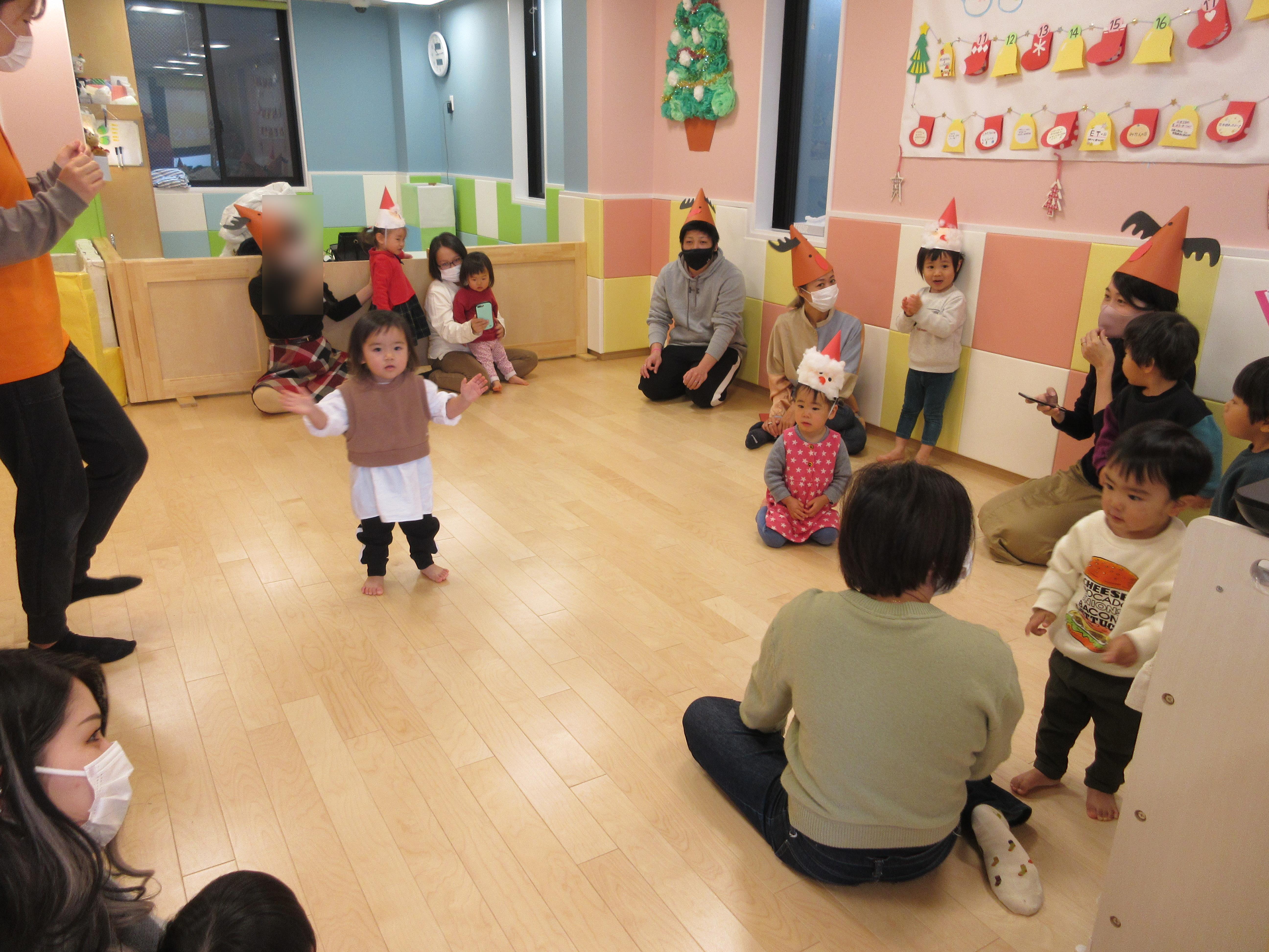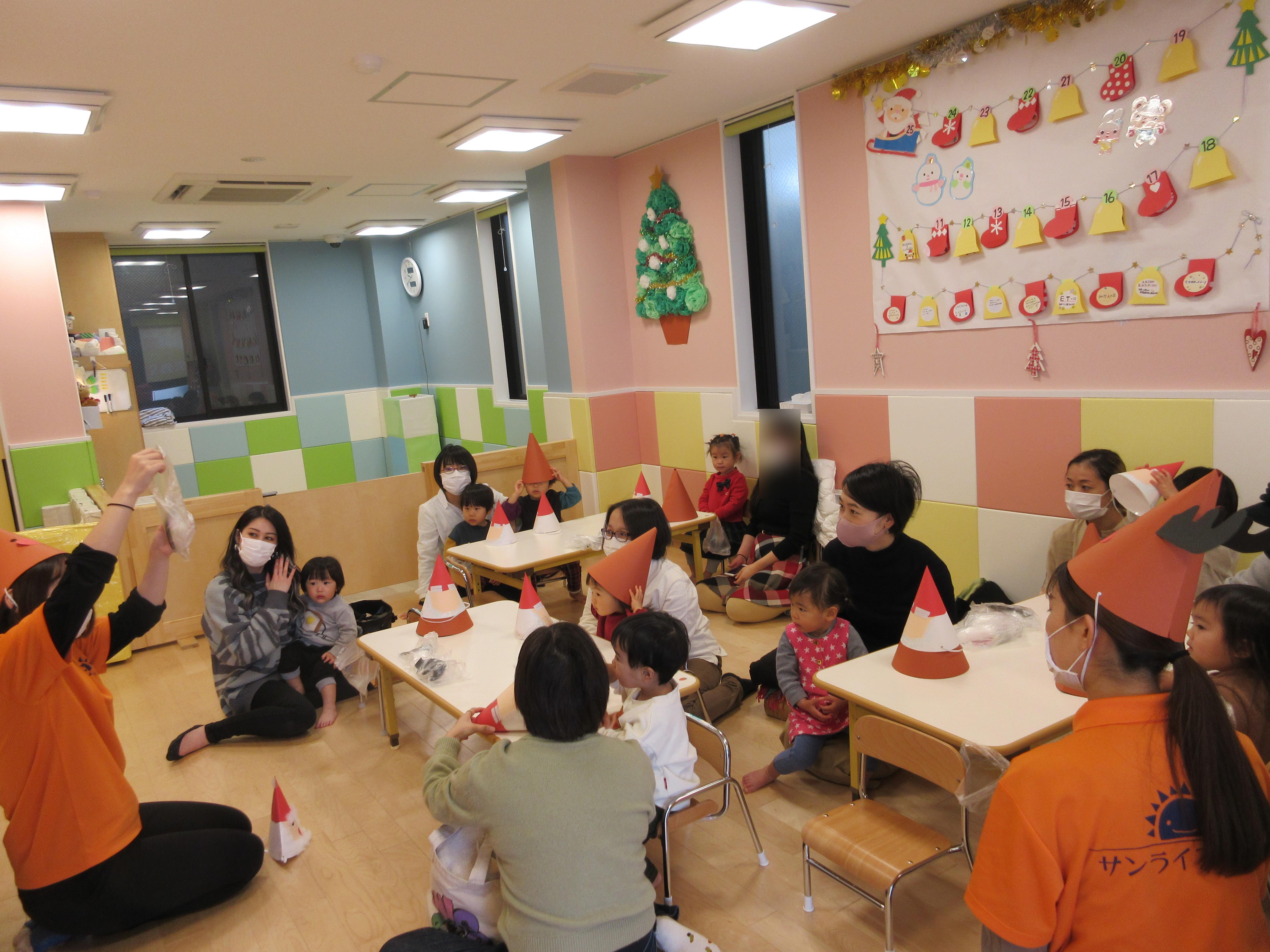 お父さんやお母さん用のトナカイさん帽子でしたが、トナカイさんの帽子をかぶる子もいましたよ?