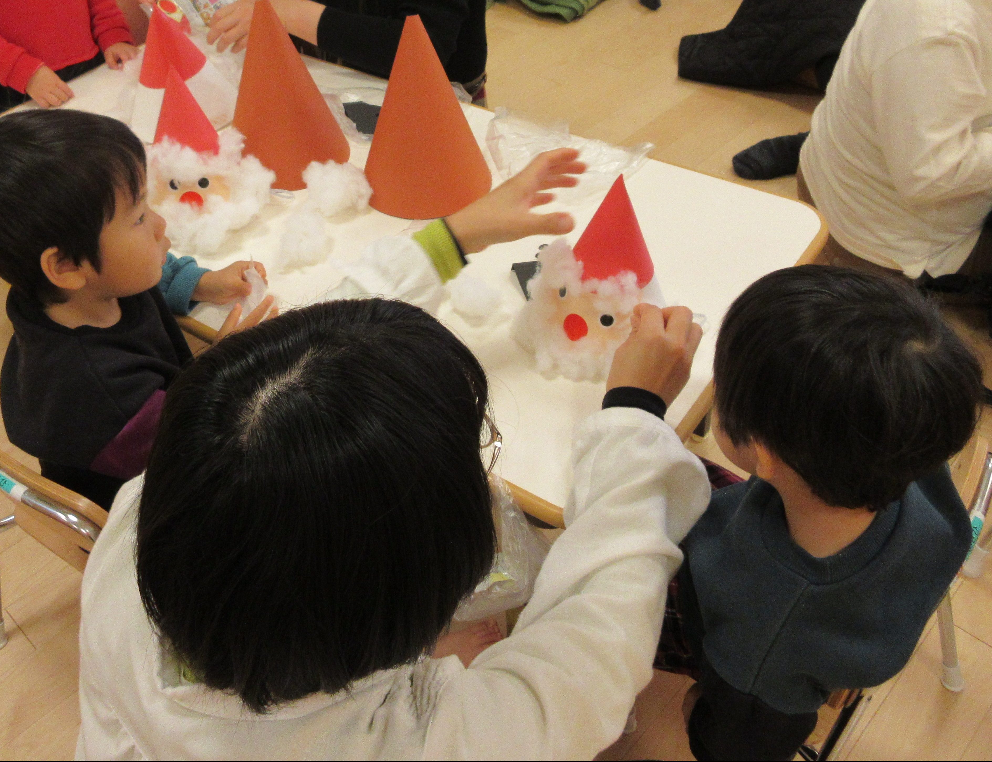 いちごぐみさんとりんごぐみさんは、お父さんとお母さんと一緒にサンタさんとトナカイさんの帽子を作りました?