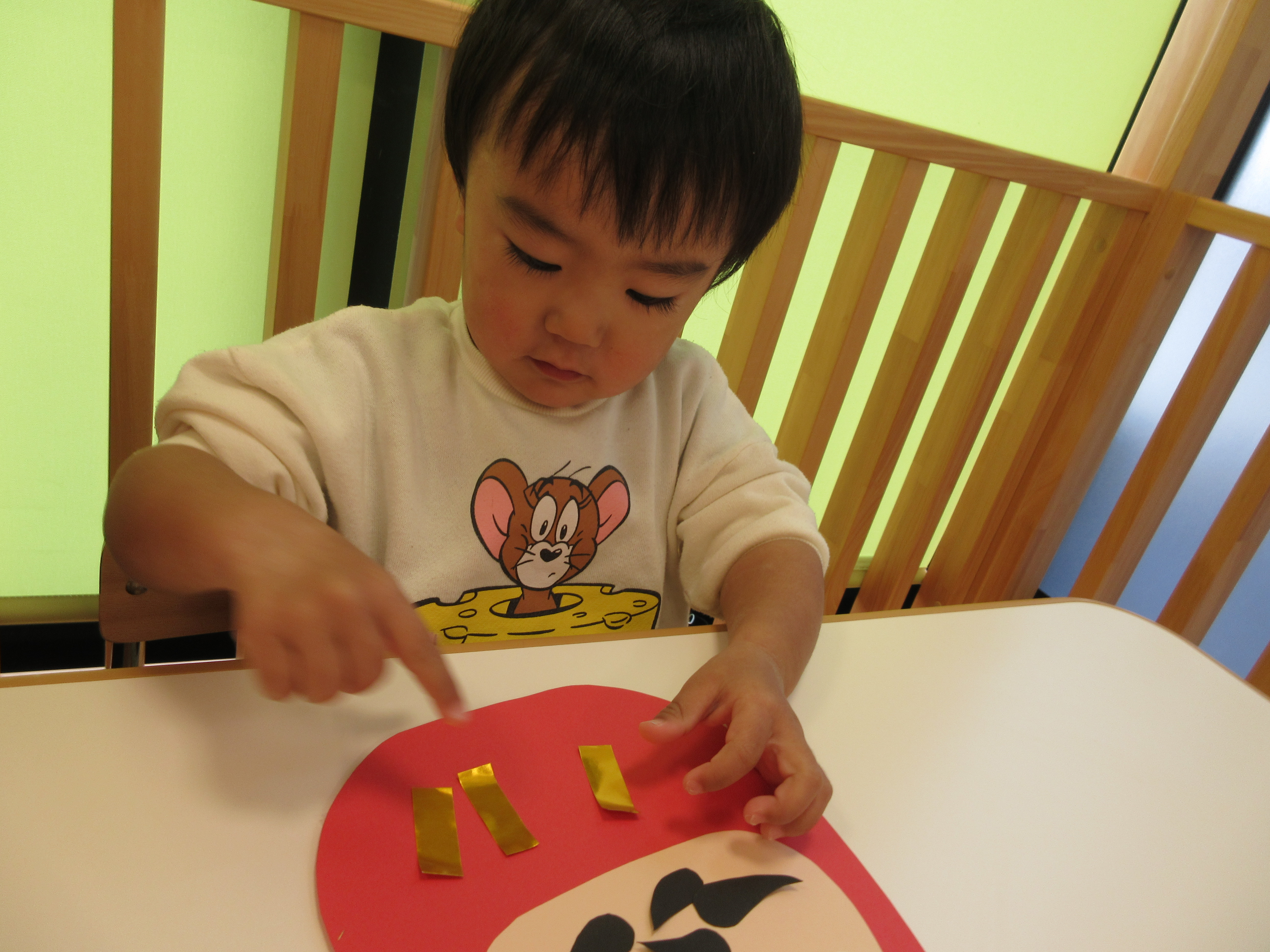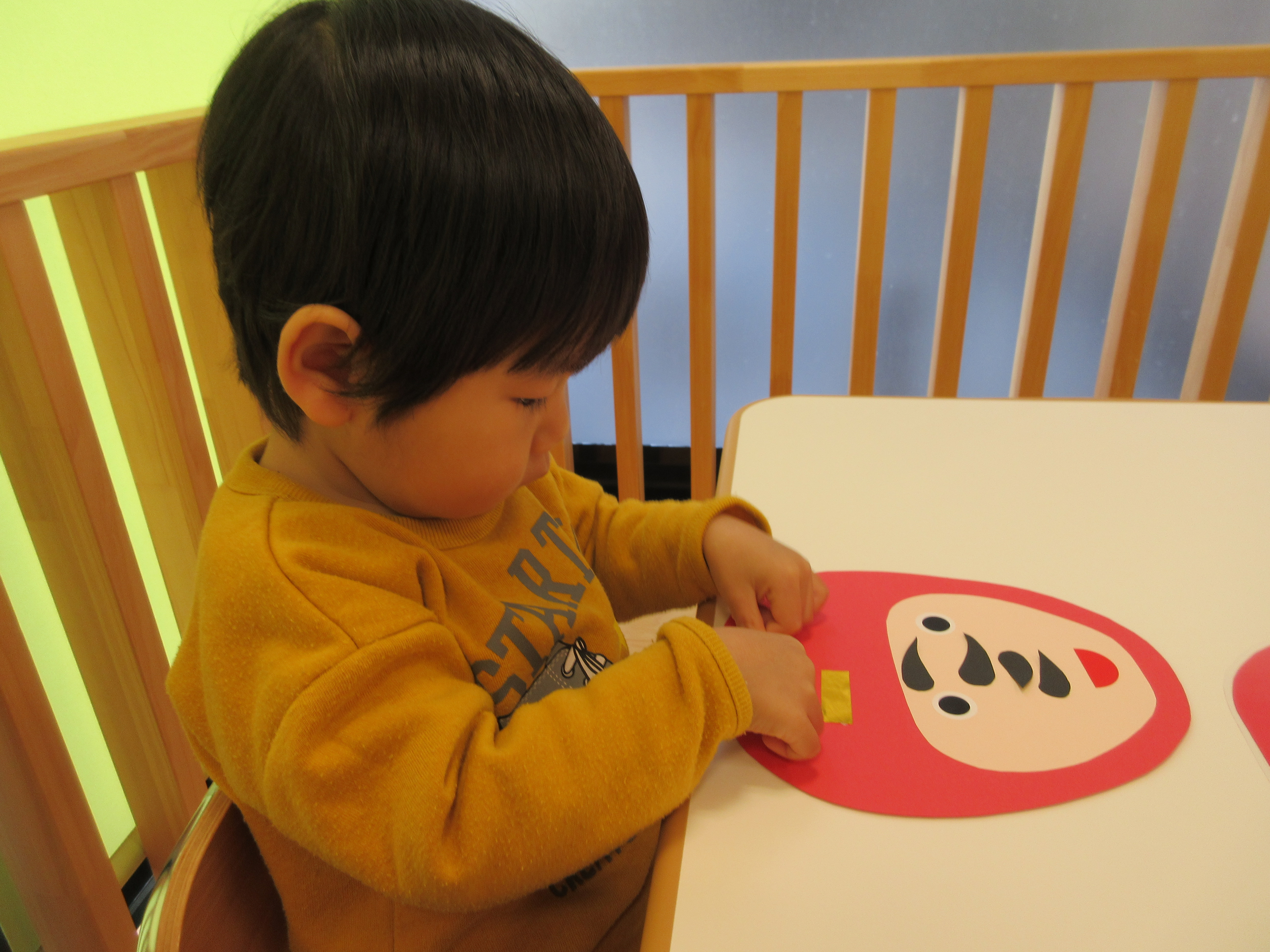 自分で作っただるまさんは特別のようで次の日のお散歩に行く前、「あっ!!だるまさん」と自分が作っただるまさんを指さしていました![]()