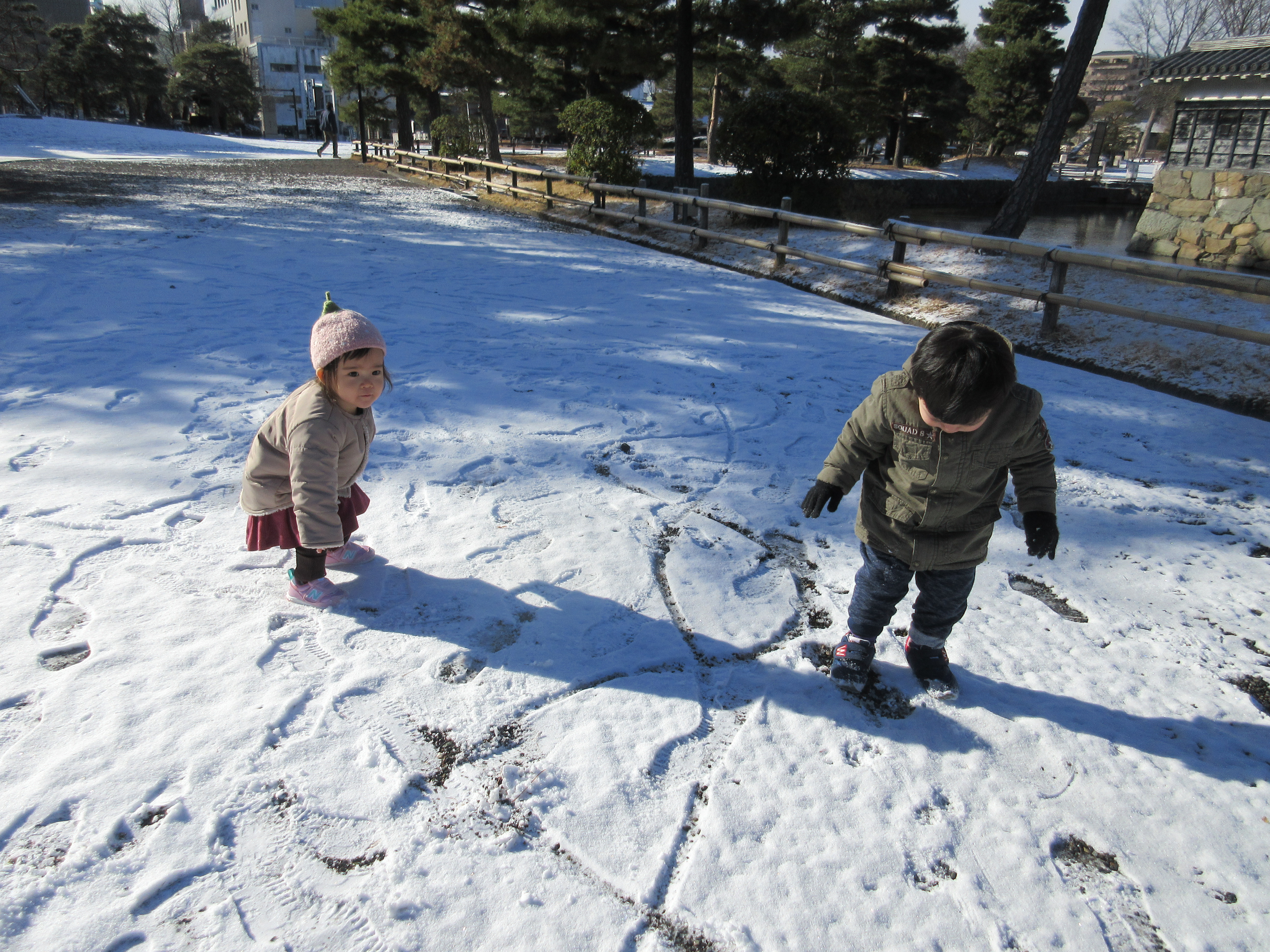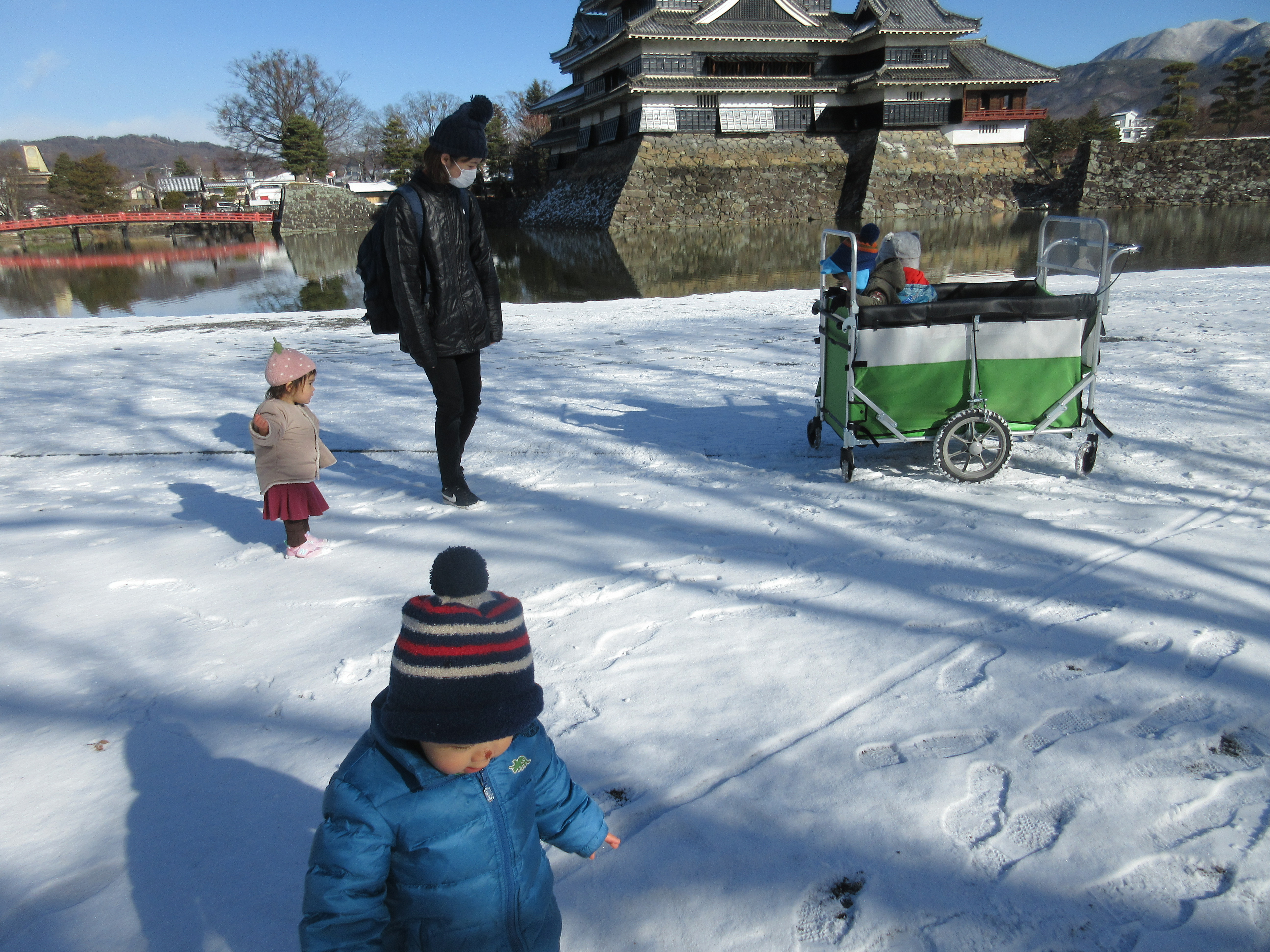 今週は2回も積雪があり、火曜日と金曜日と2度松本城の敷地内で雪遊びを楽しむことができました☃
