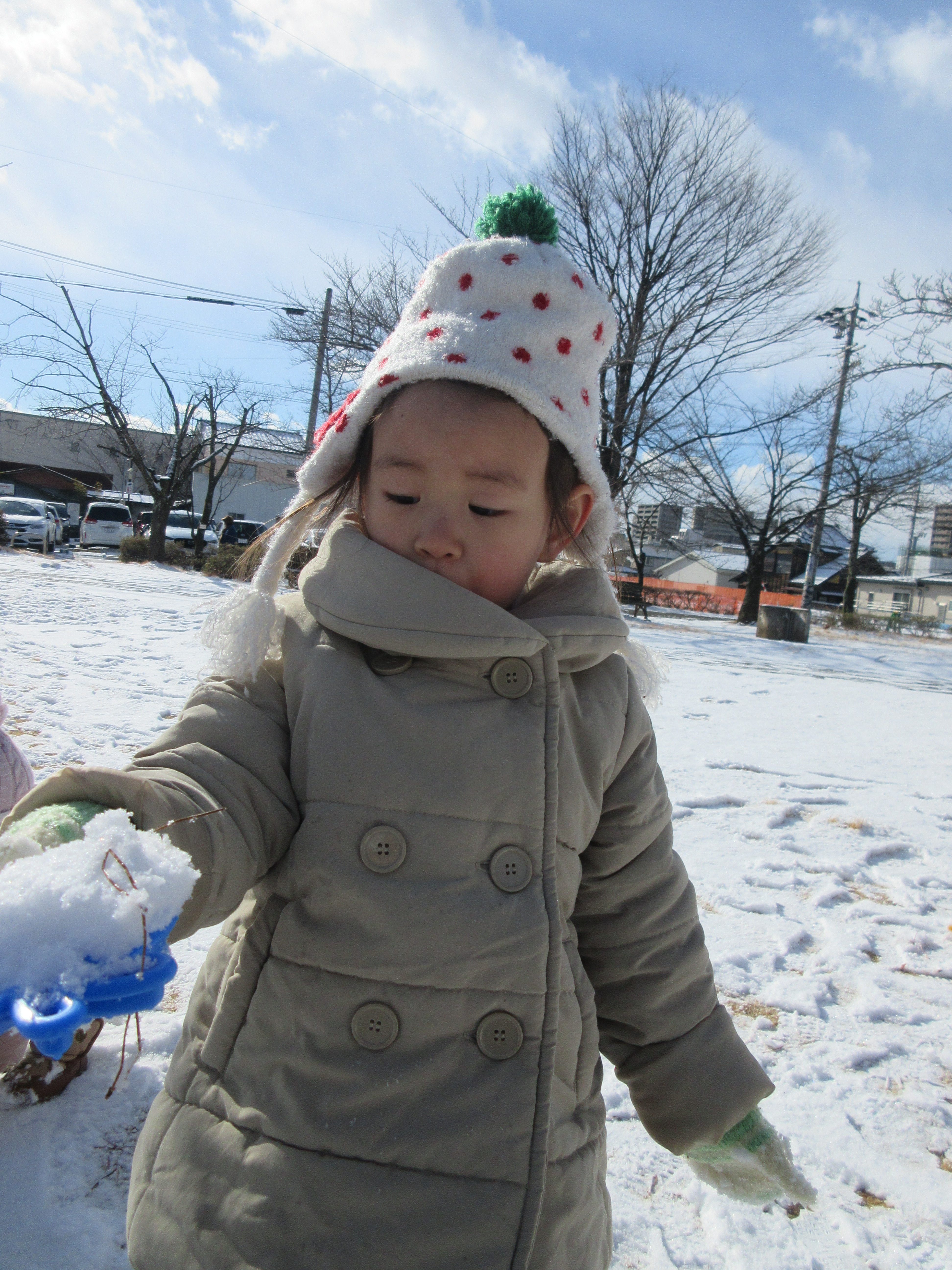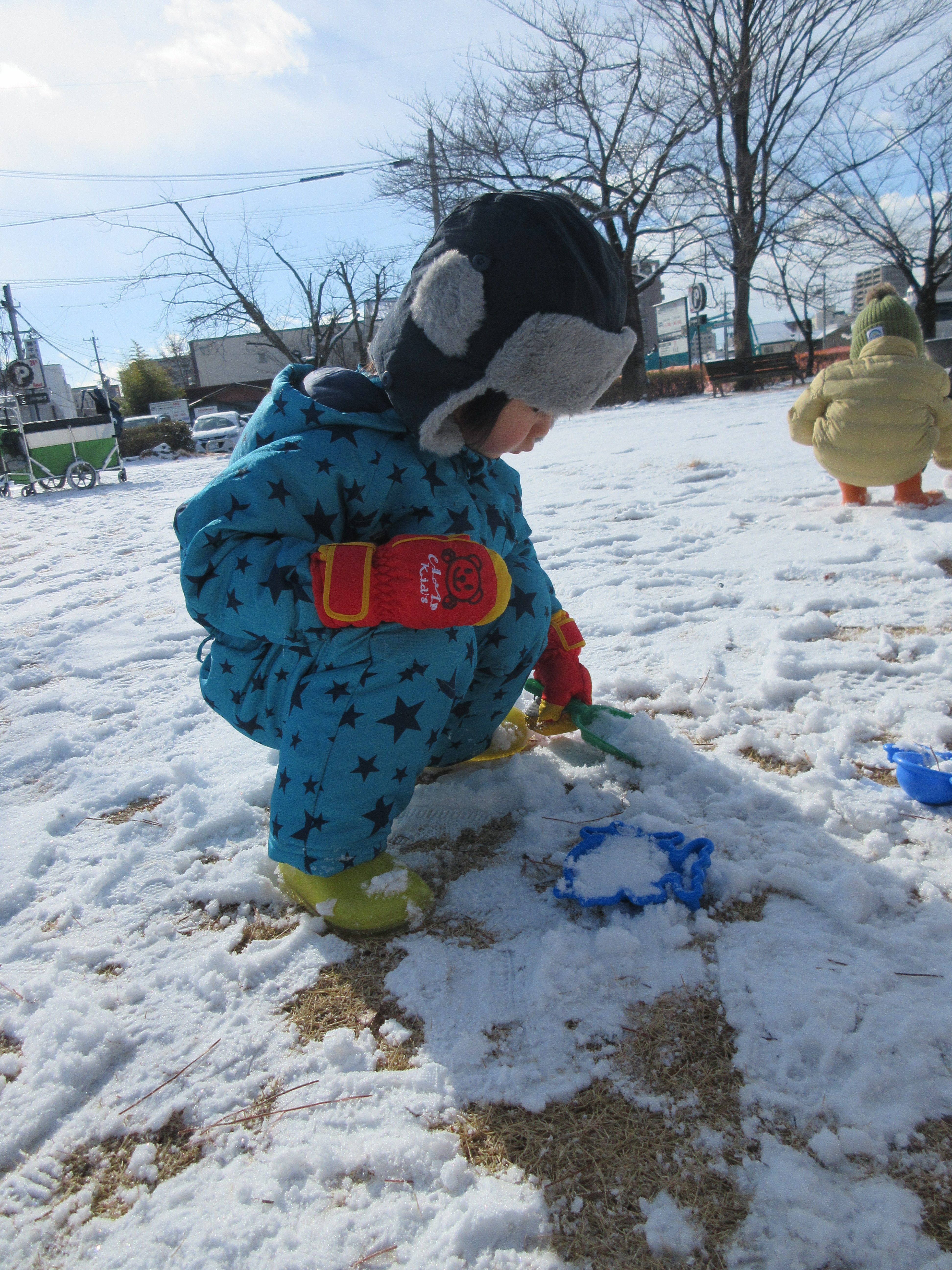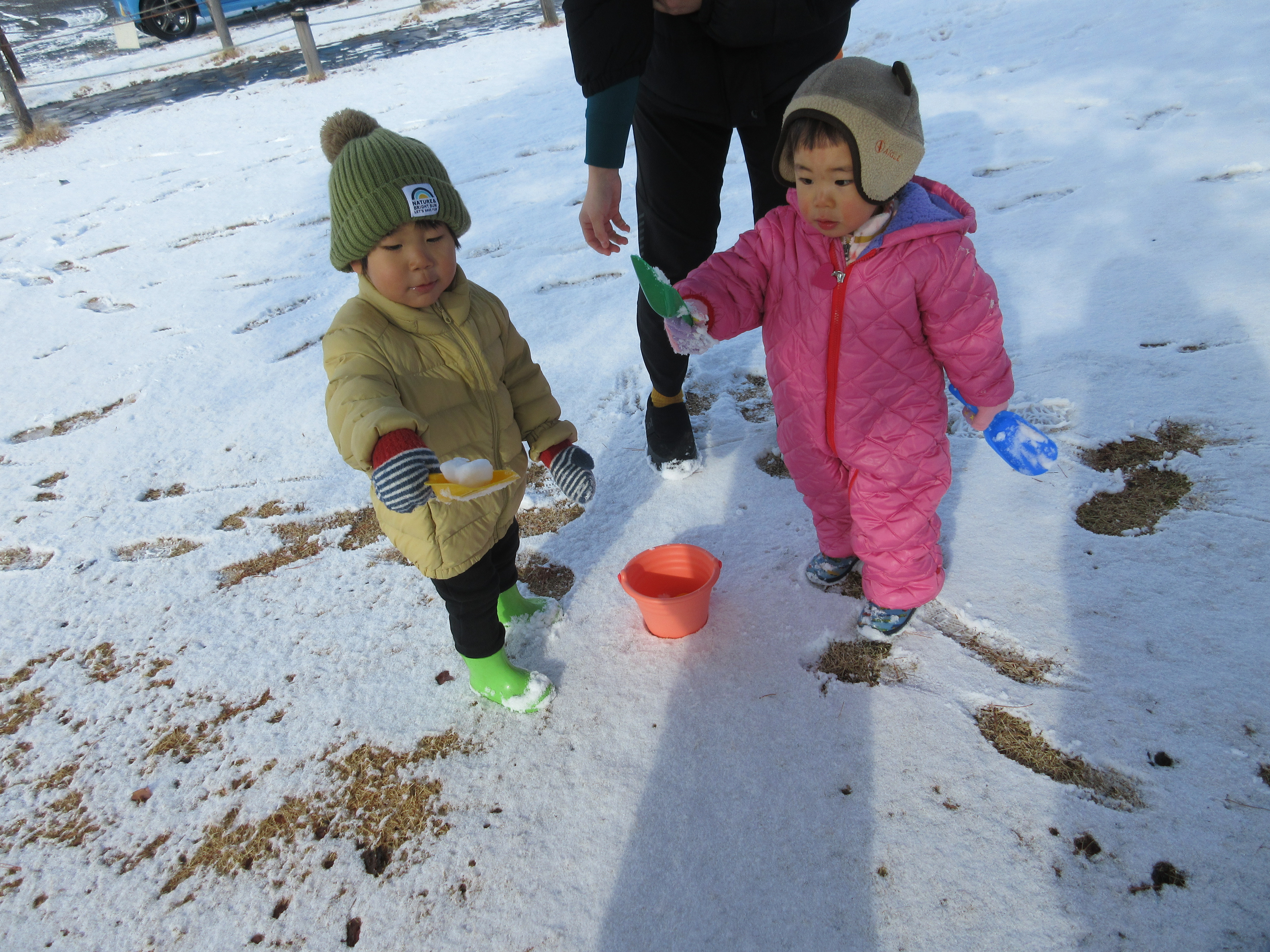 砂遊び用のスコップとバケツも使用しながら雪遊びを楽しみました![]()