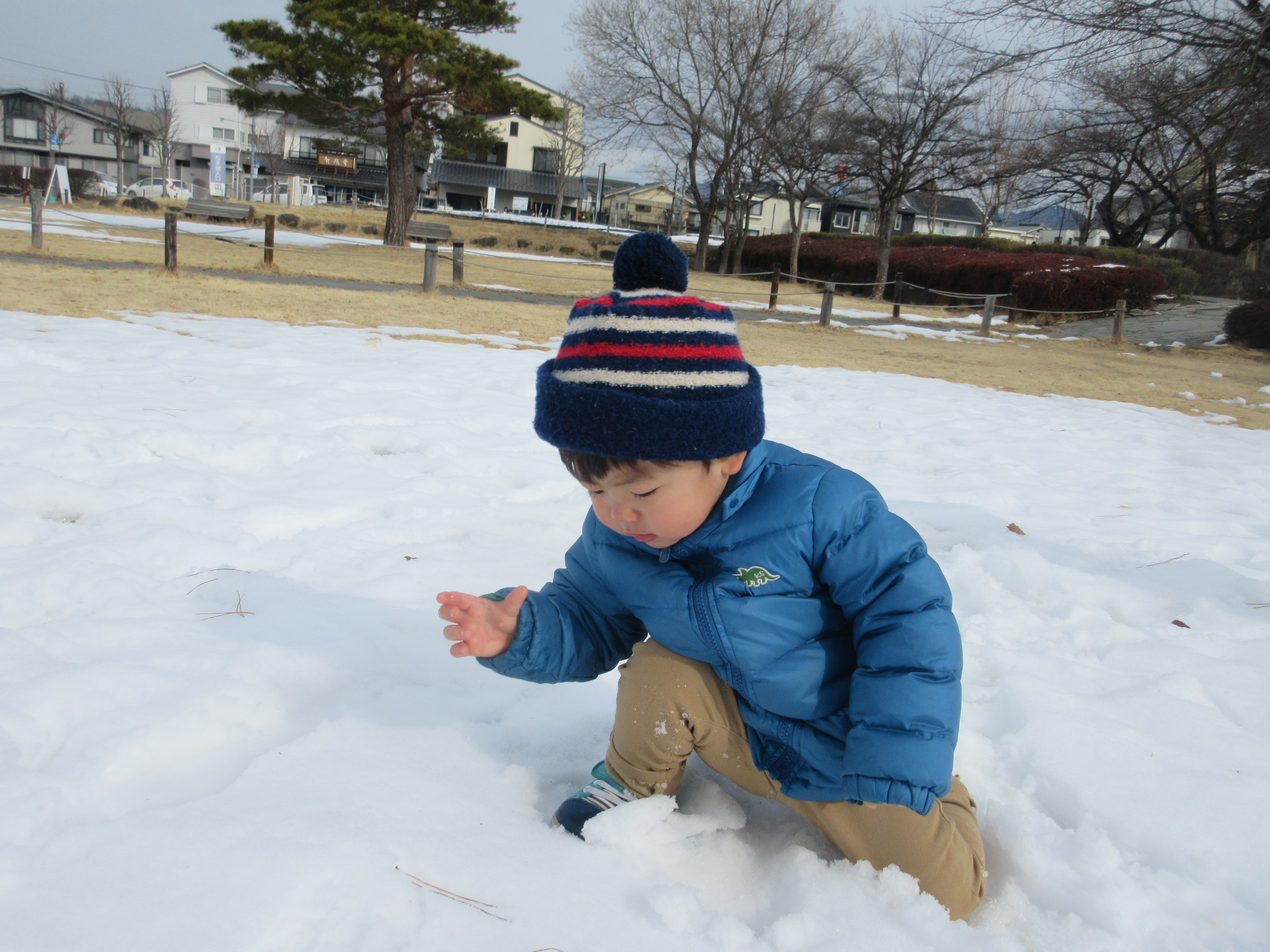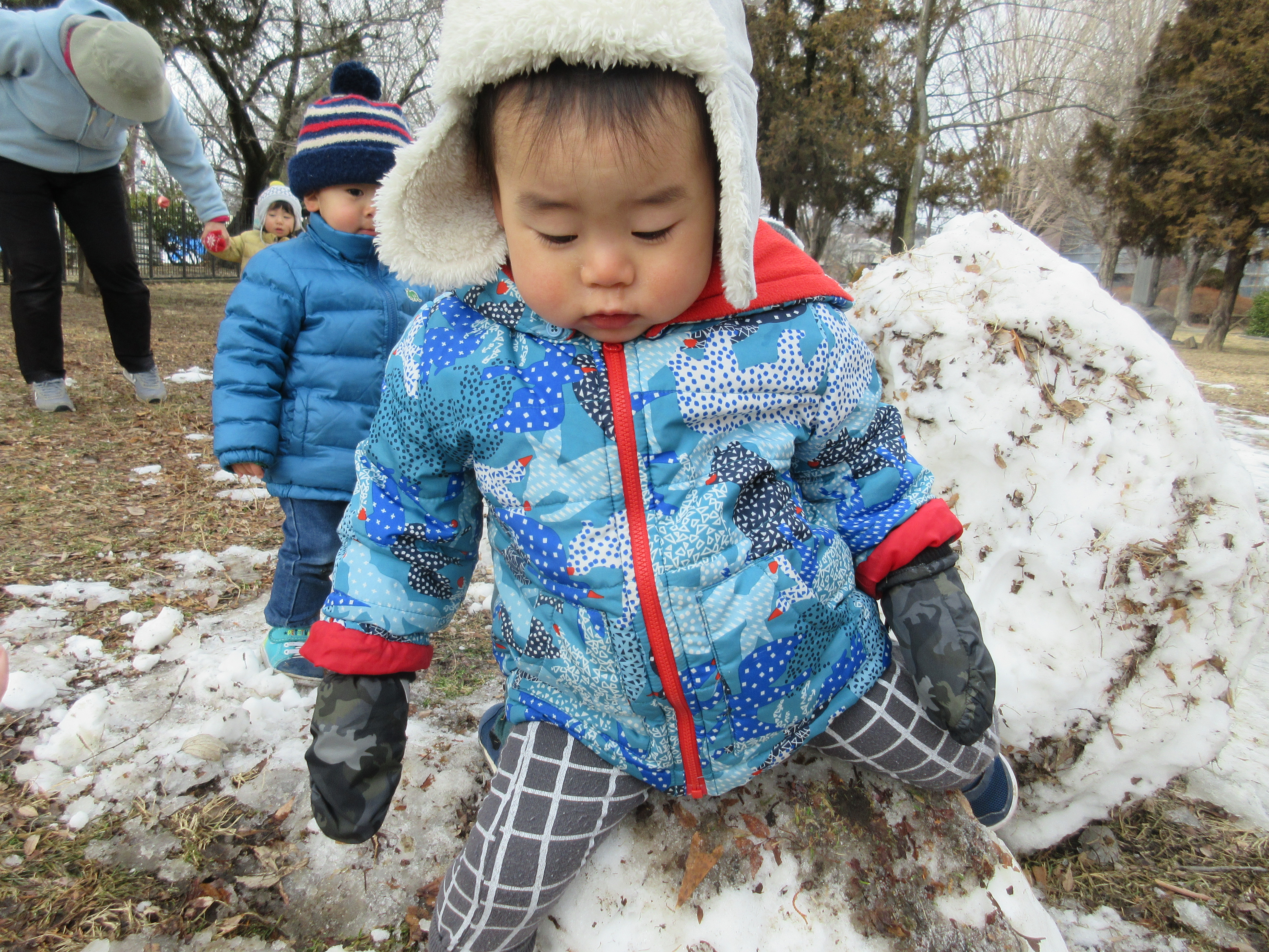 公園に着くと嬉しそうに雪を触って遊んでいた子どもたち。