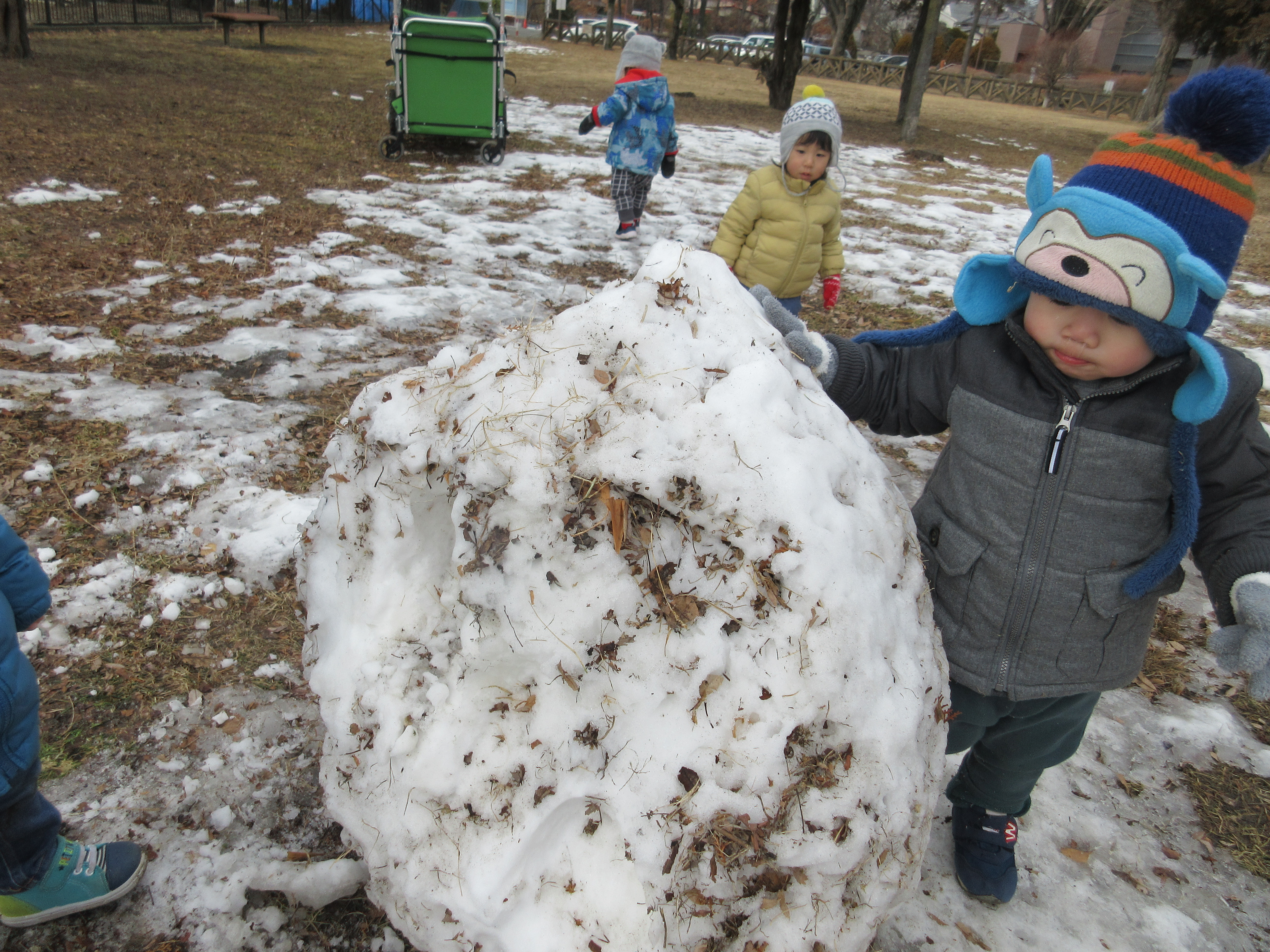 また別の公園には大きな雪だるまも(残念ながら壊れていましたが・・・)あり、子どもたちはみんな興味津々?