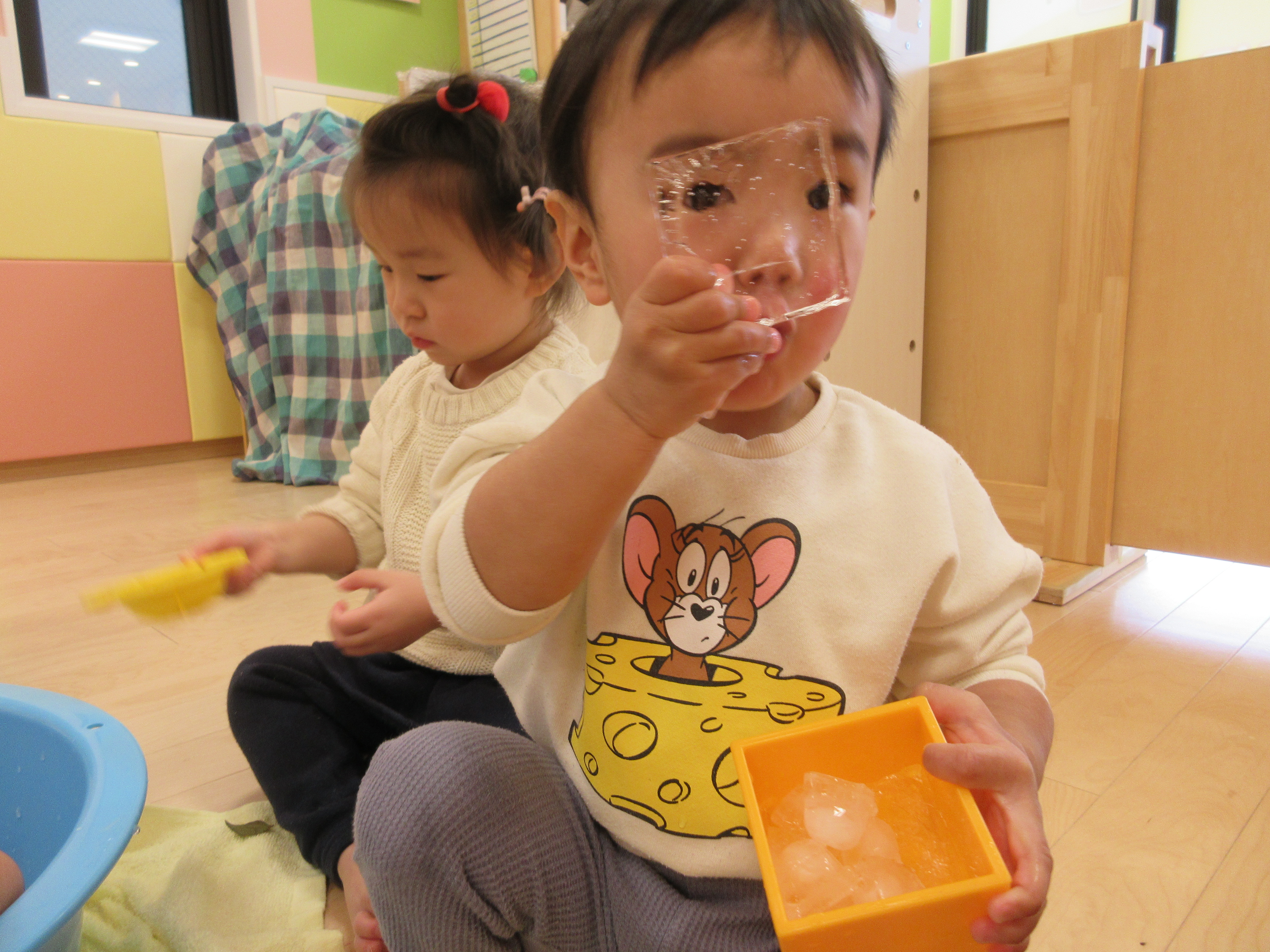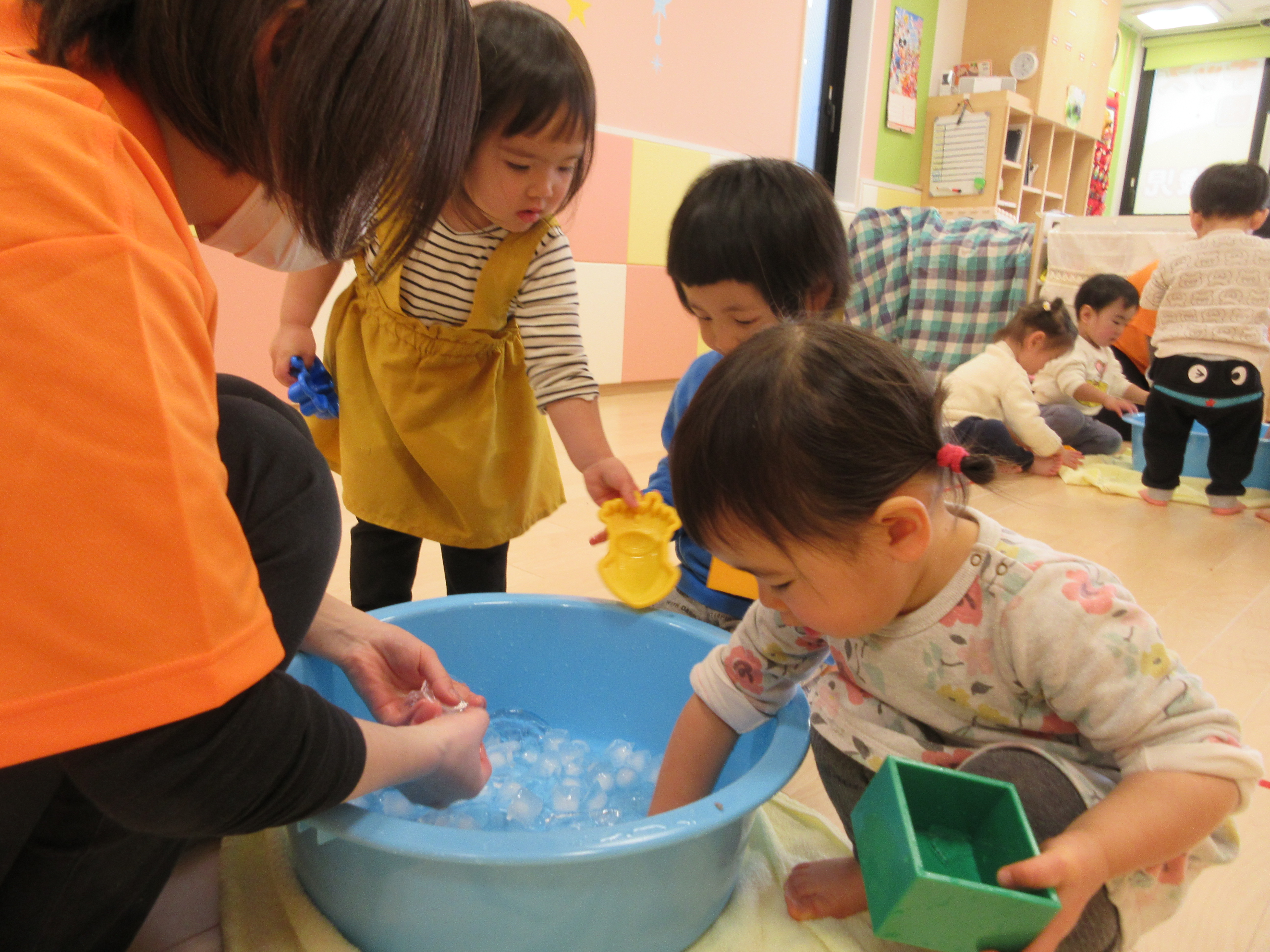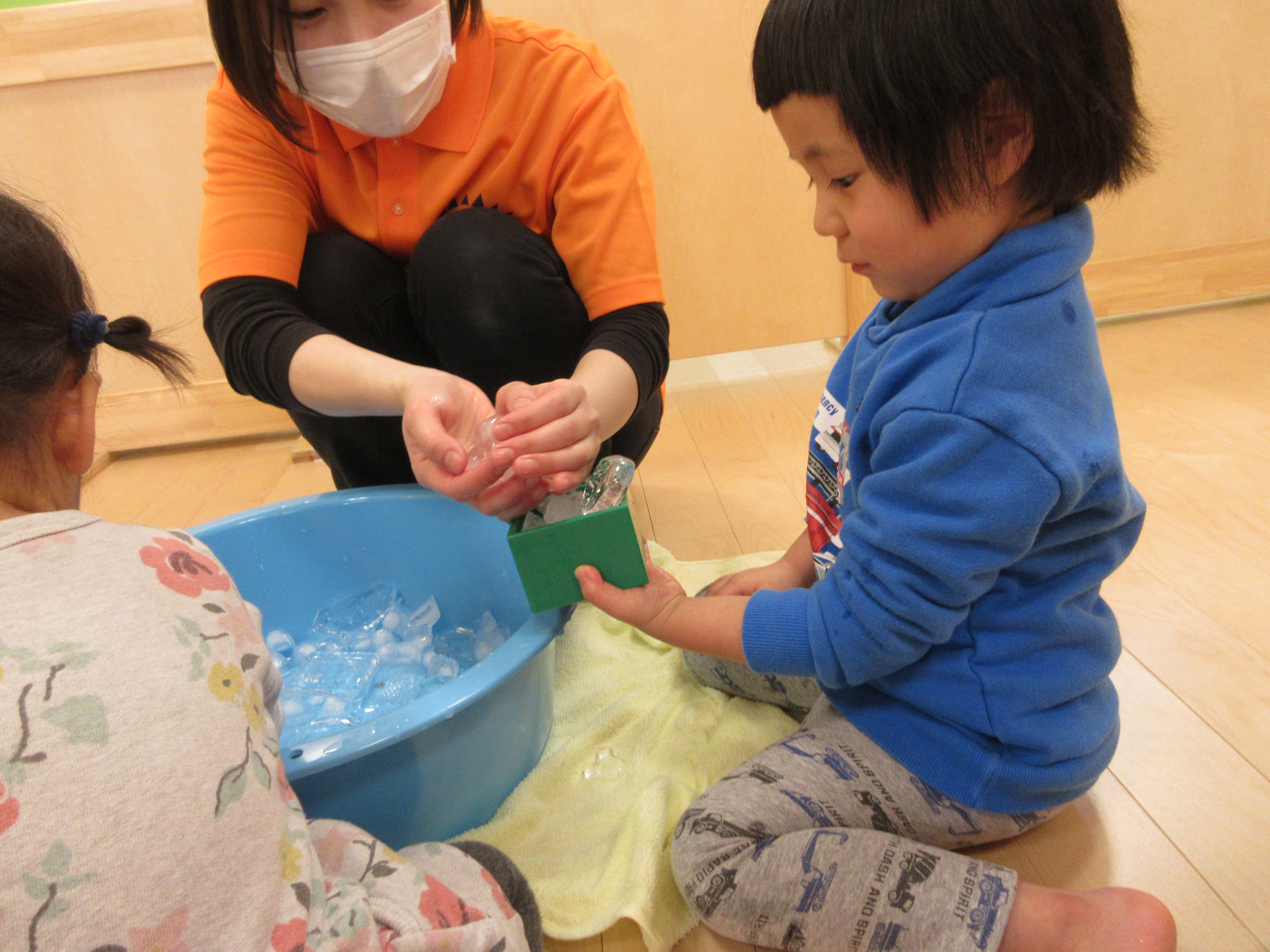 最後の氷遊びかな~?と言いながら全員で氷の感触を楽しみました