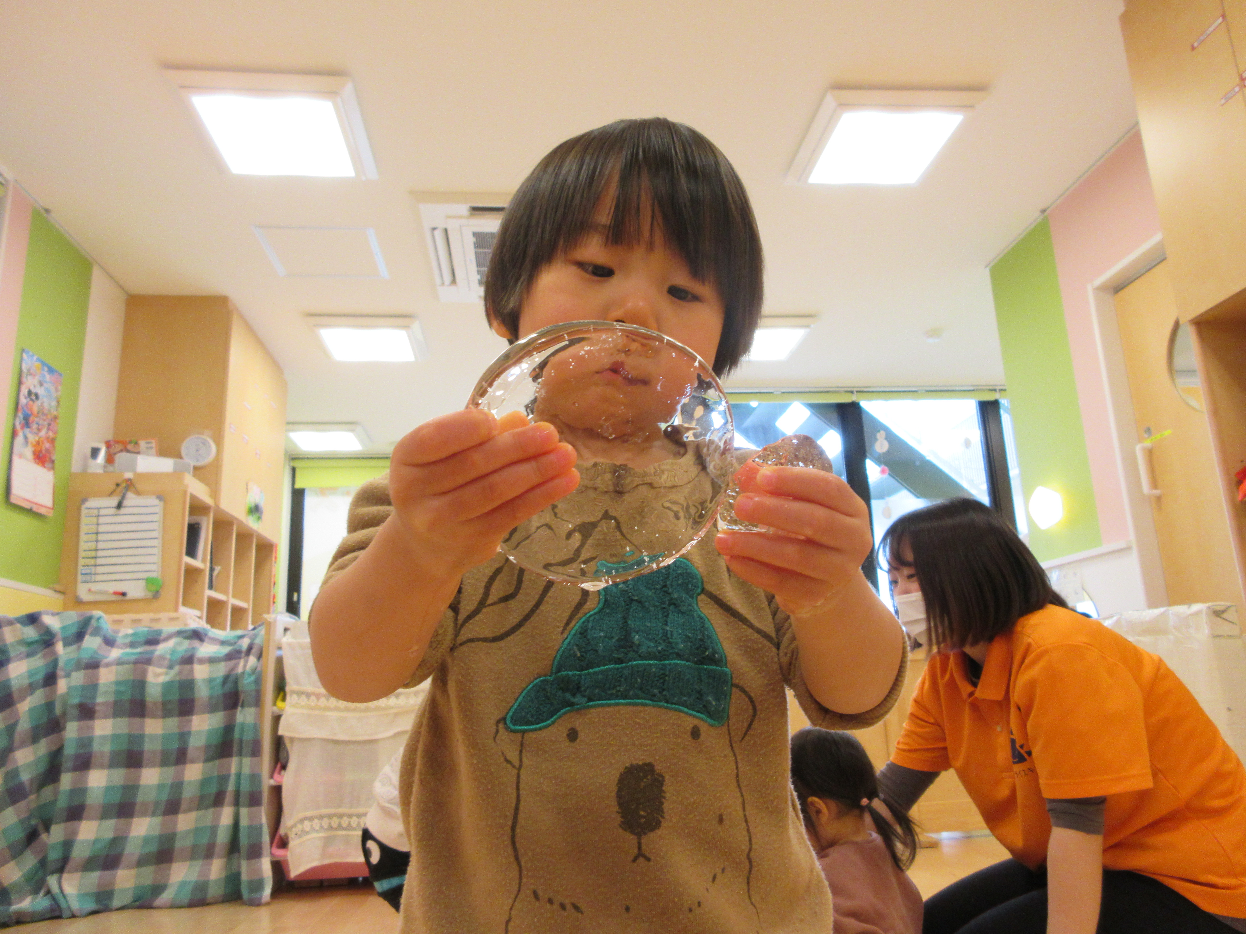 ⇩「おー✨✨」と透けて見えることに驚く子もいました。かわいいですよね