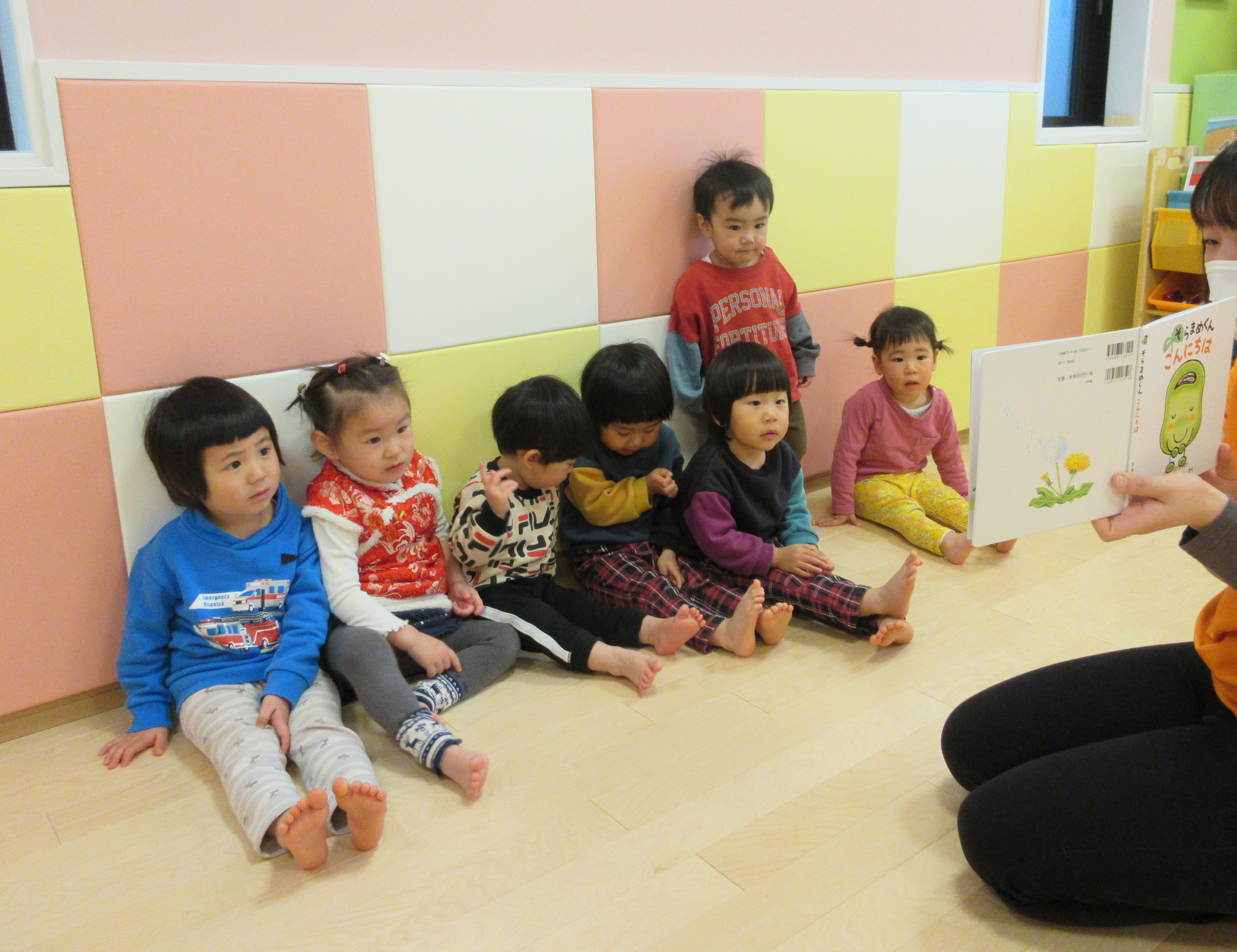 また、「公園にたんぽぽあるかな?」「ありさんもいるかな?」とみんなで春の自然物を楽しみにしながらお話を読みました?