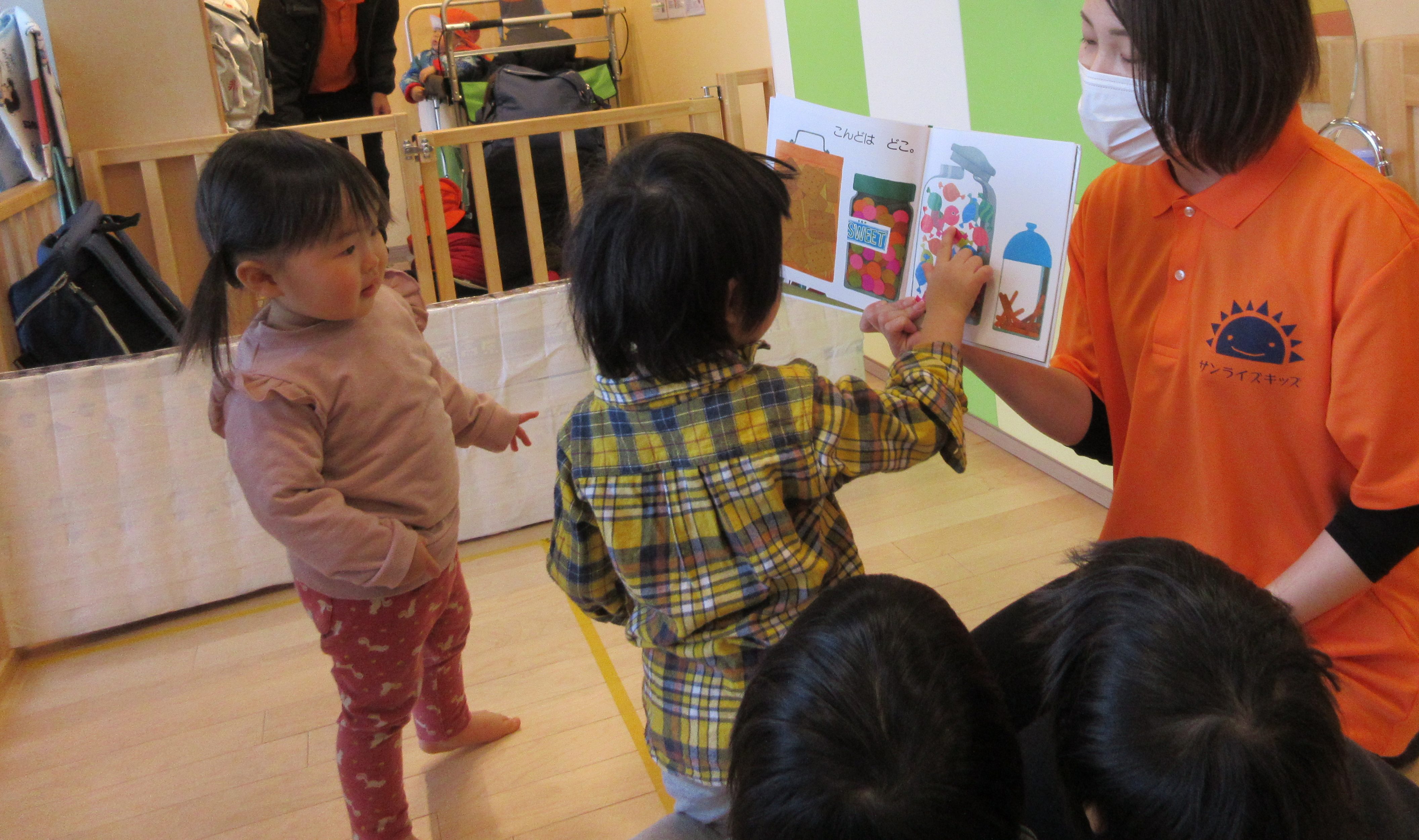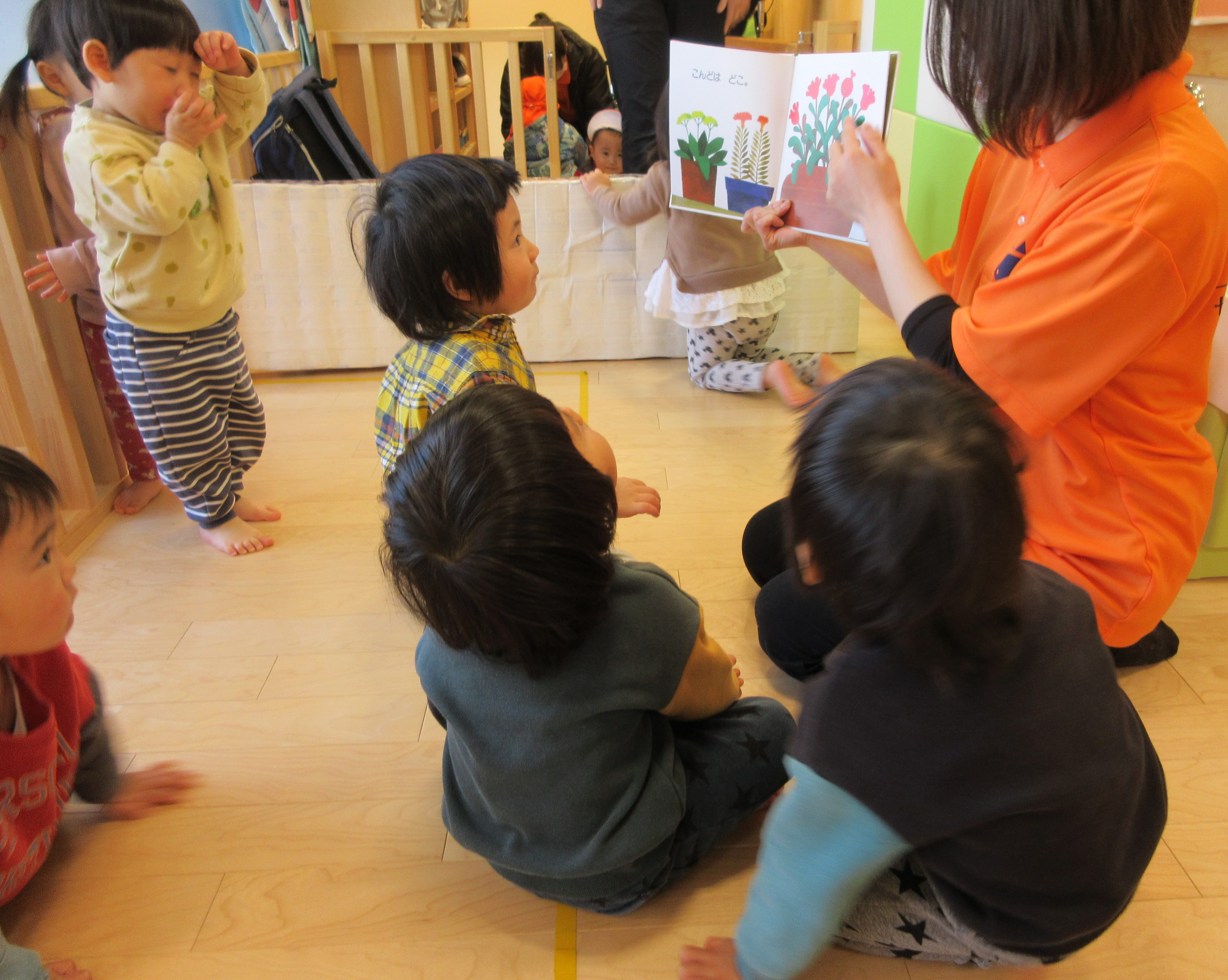 読み始めると「ここー!」「あそこにいるよ~」と指をさしてきんぎょの居場所を教えてくれる子どもたち![]()