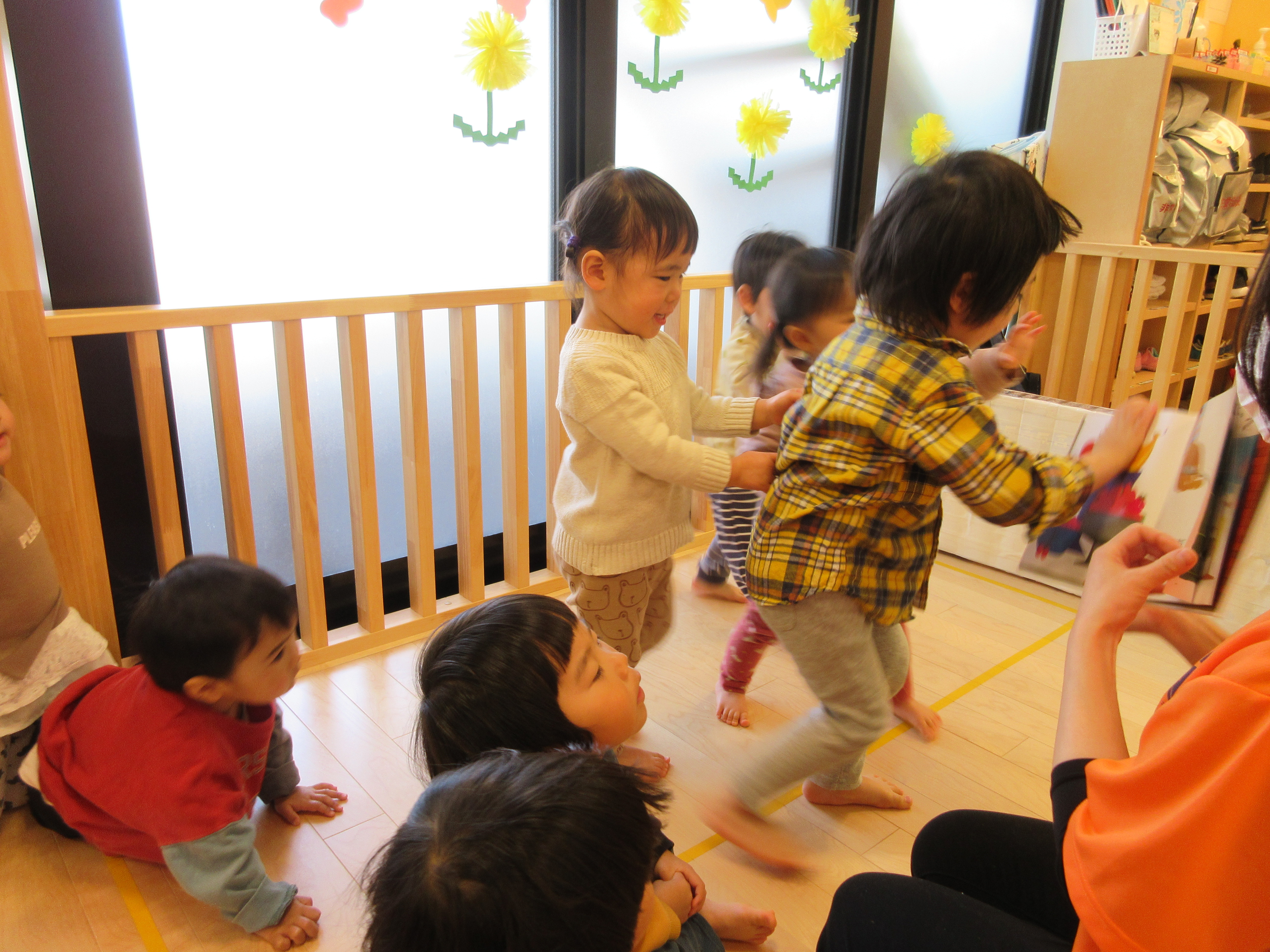 話が進むにつれて「わたしも~」「ぼくも~」とだんだん人数も増え、みんなで絵本の中のきんぎょを指さしていました![]()