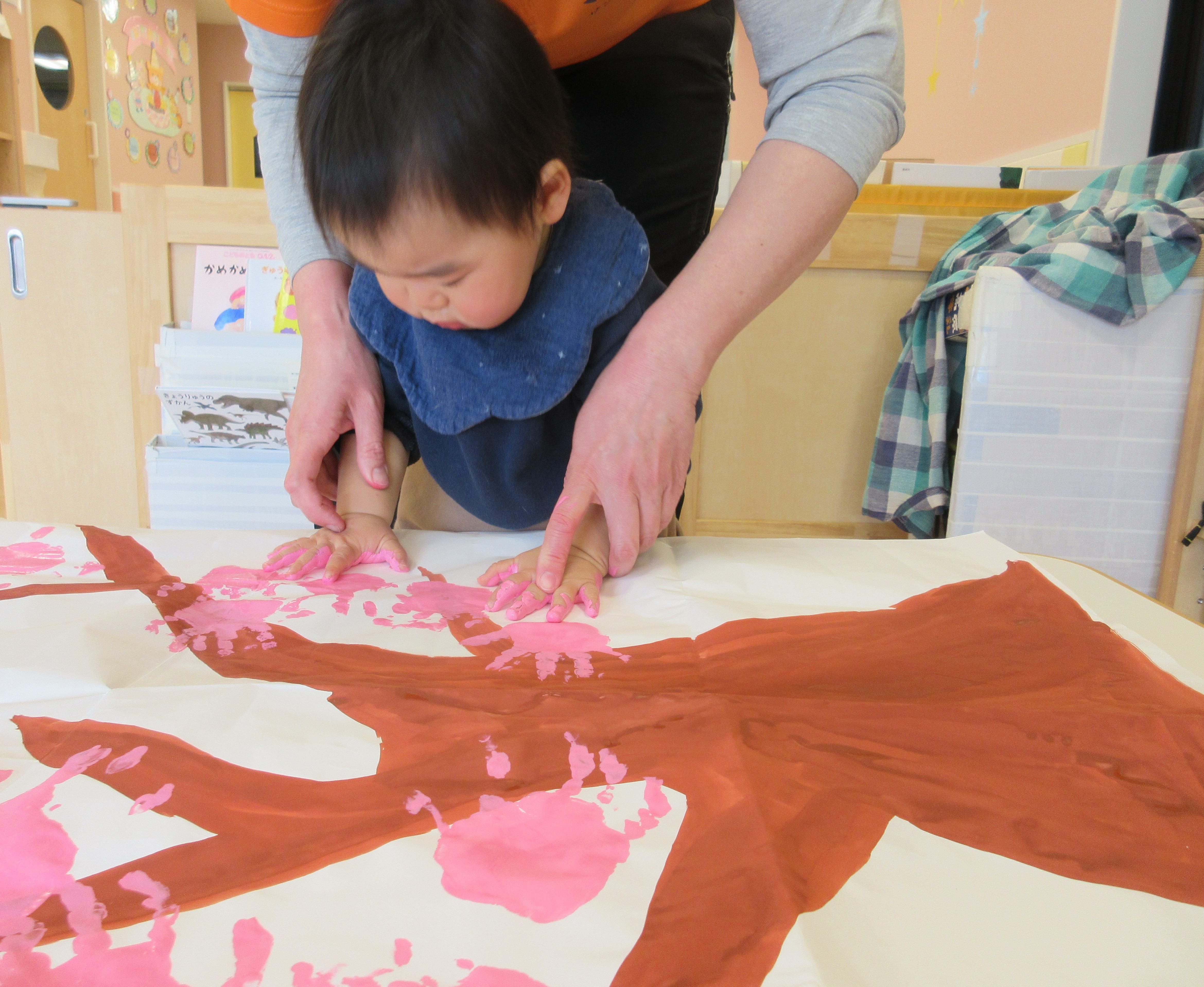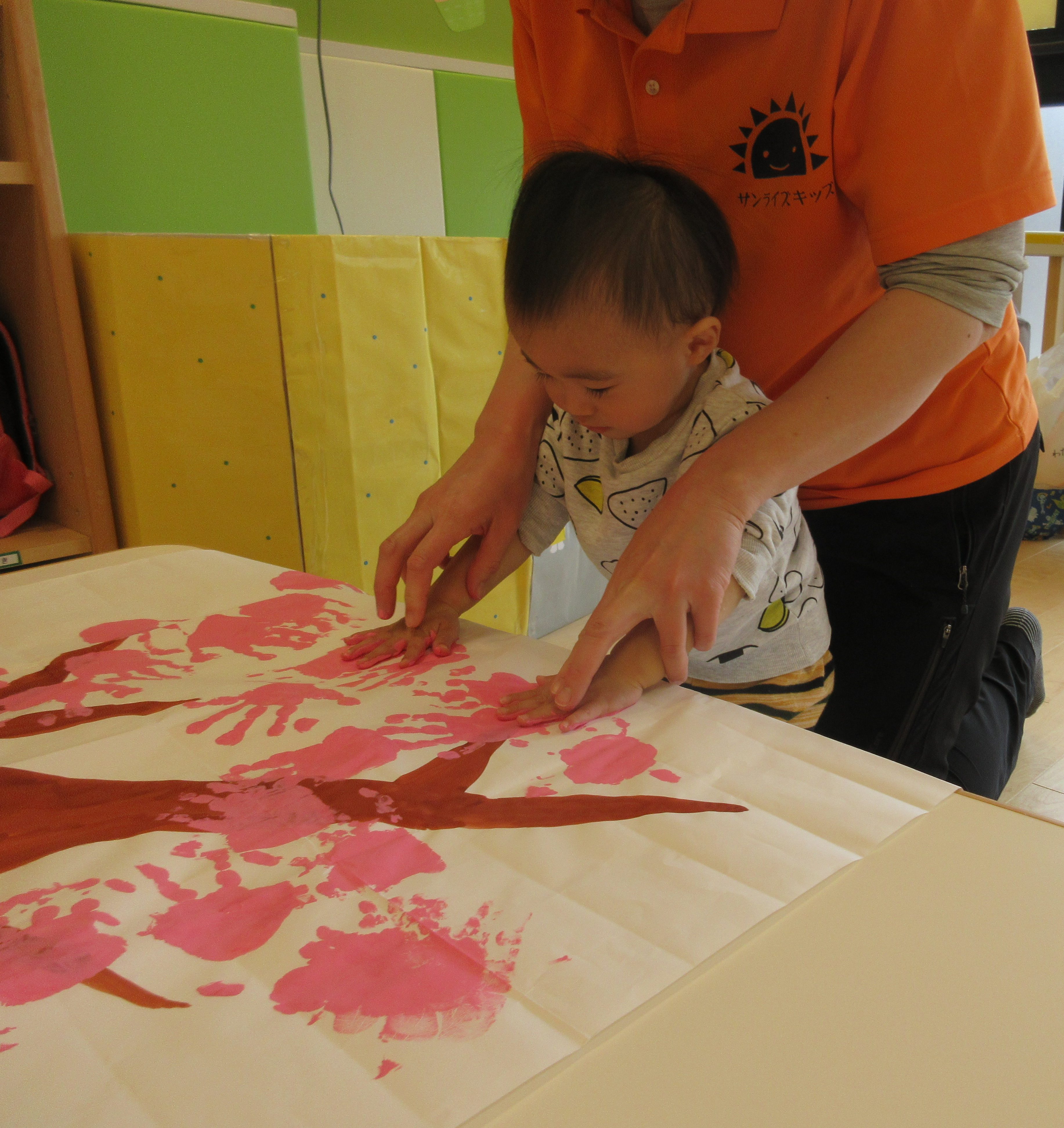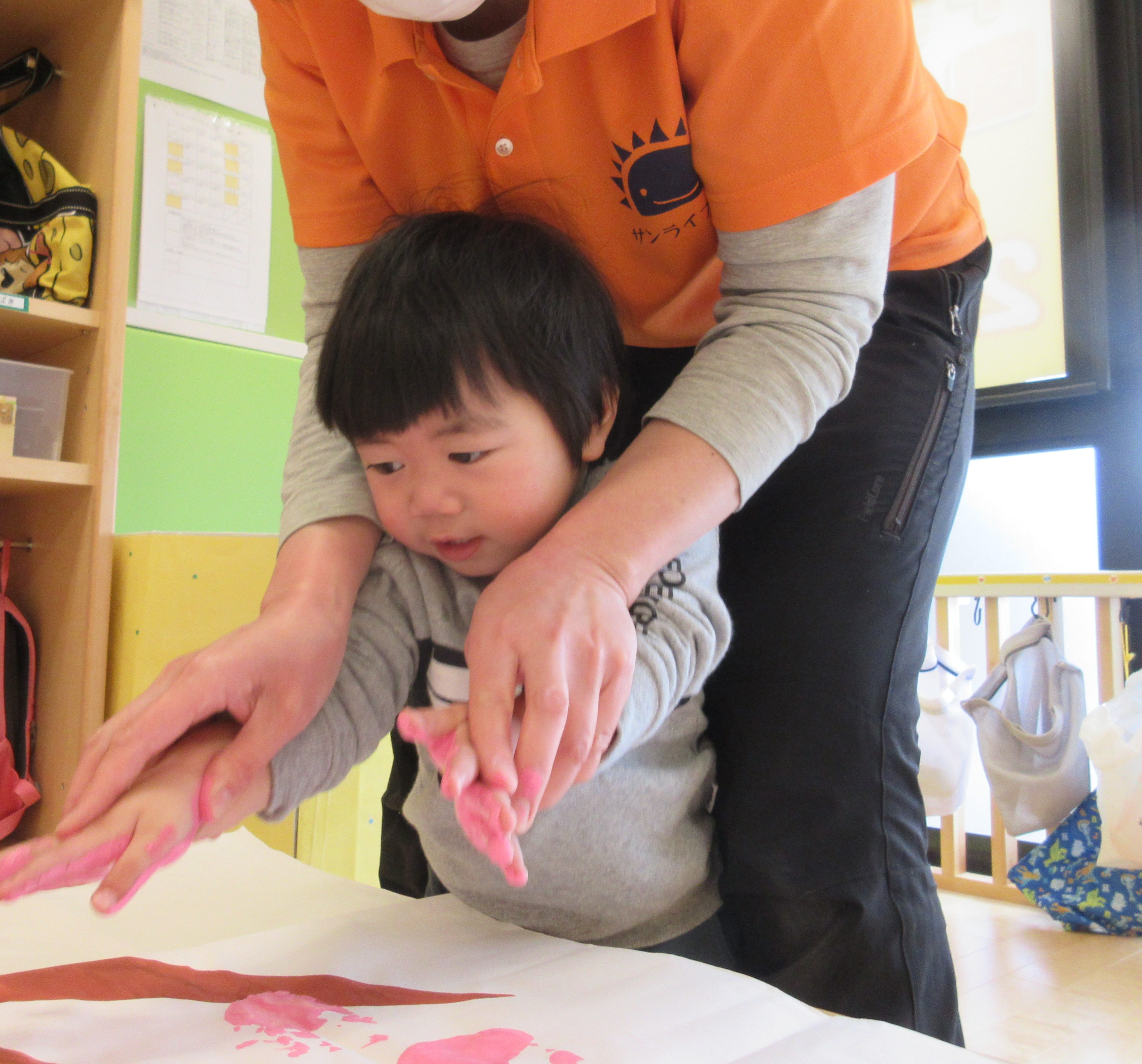 手形を押すのも上手になり、自分から紙に手形をつけようとするその姿に成長も感じました。