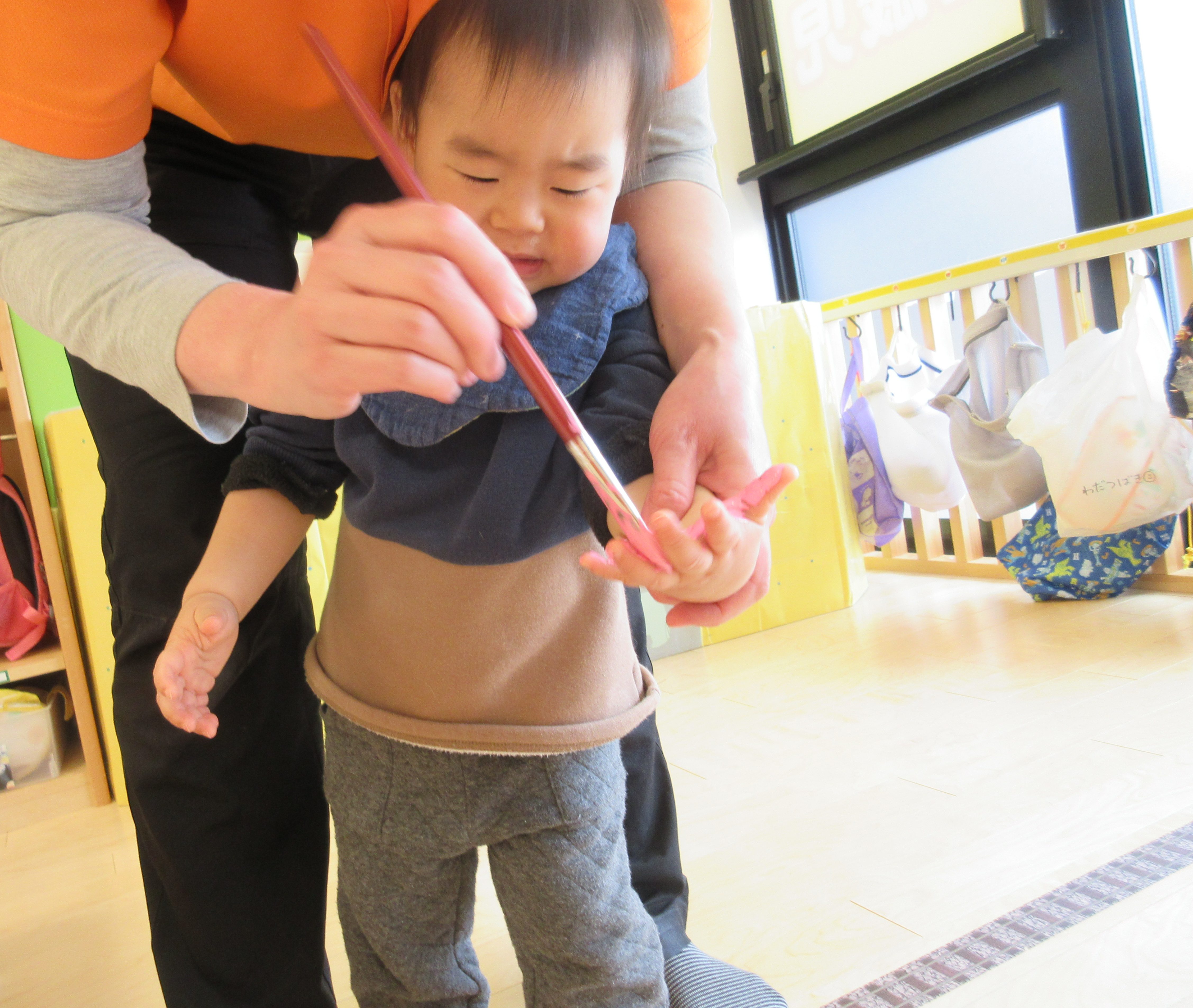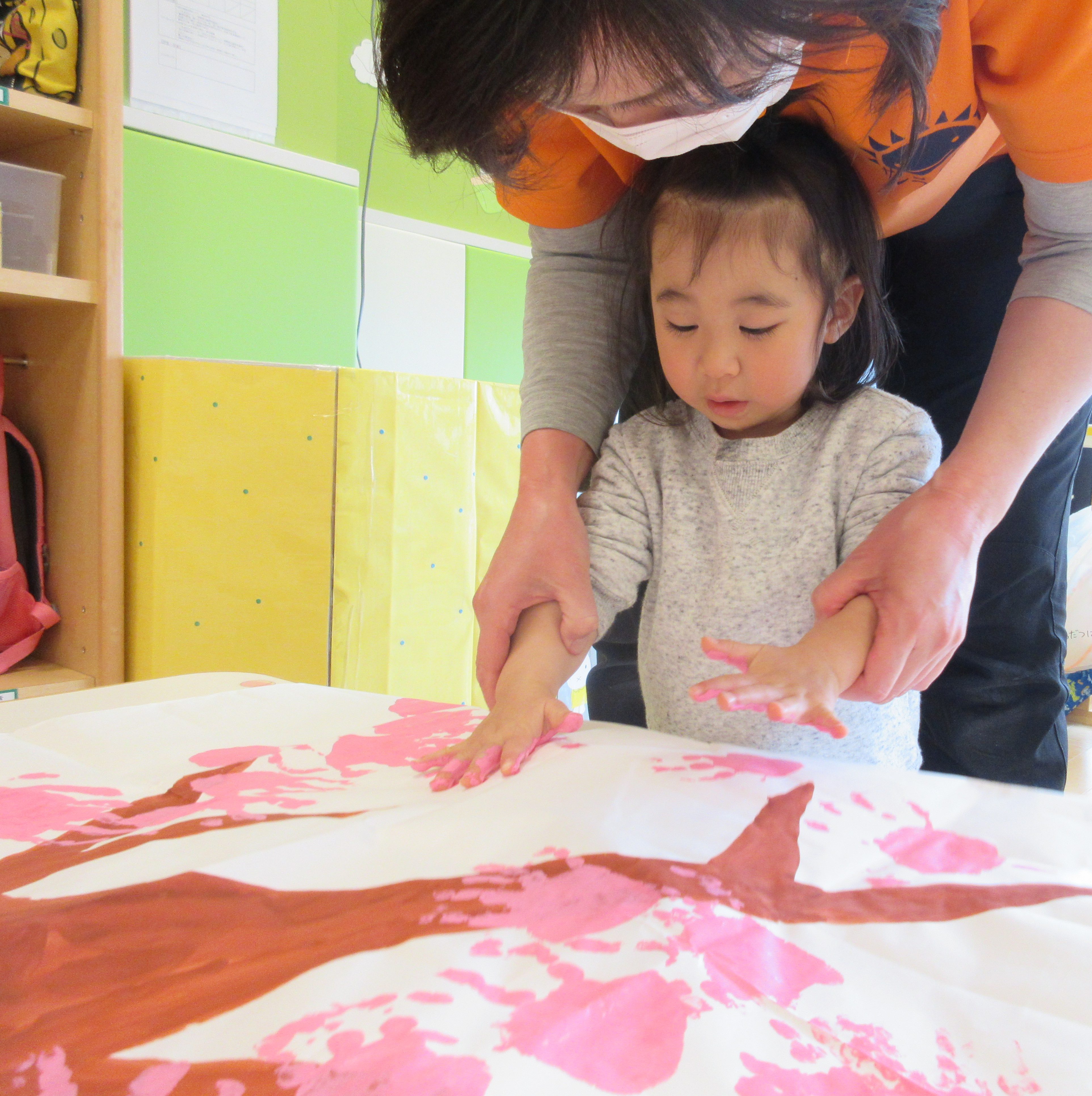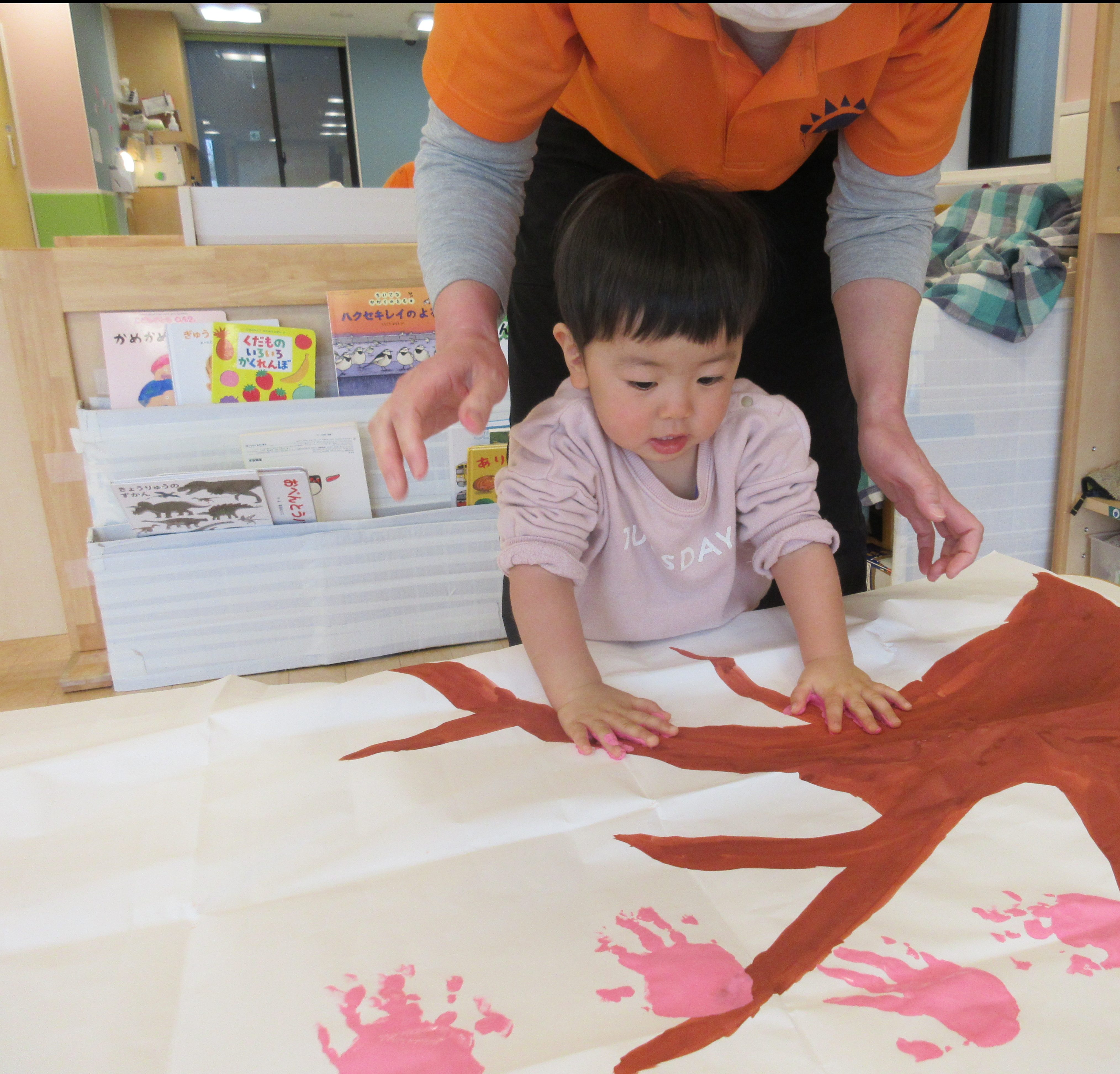 手形を押すのも上手になり、自分から紙に手形をつけようとするその姿に成長も感じました。