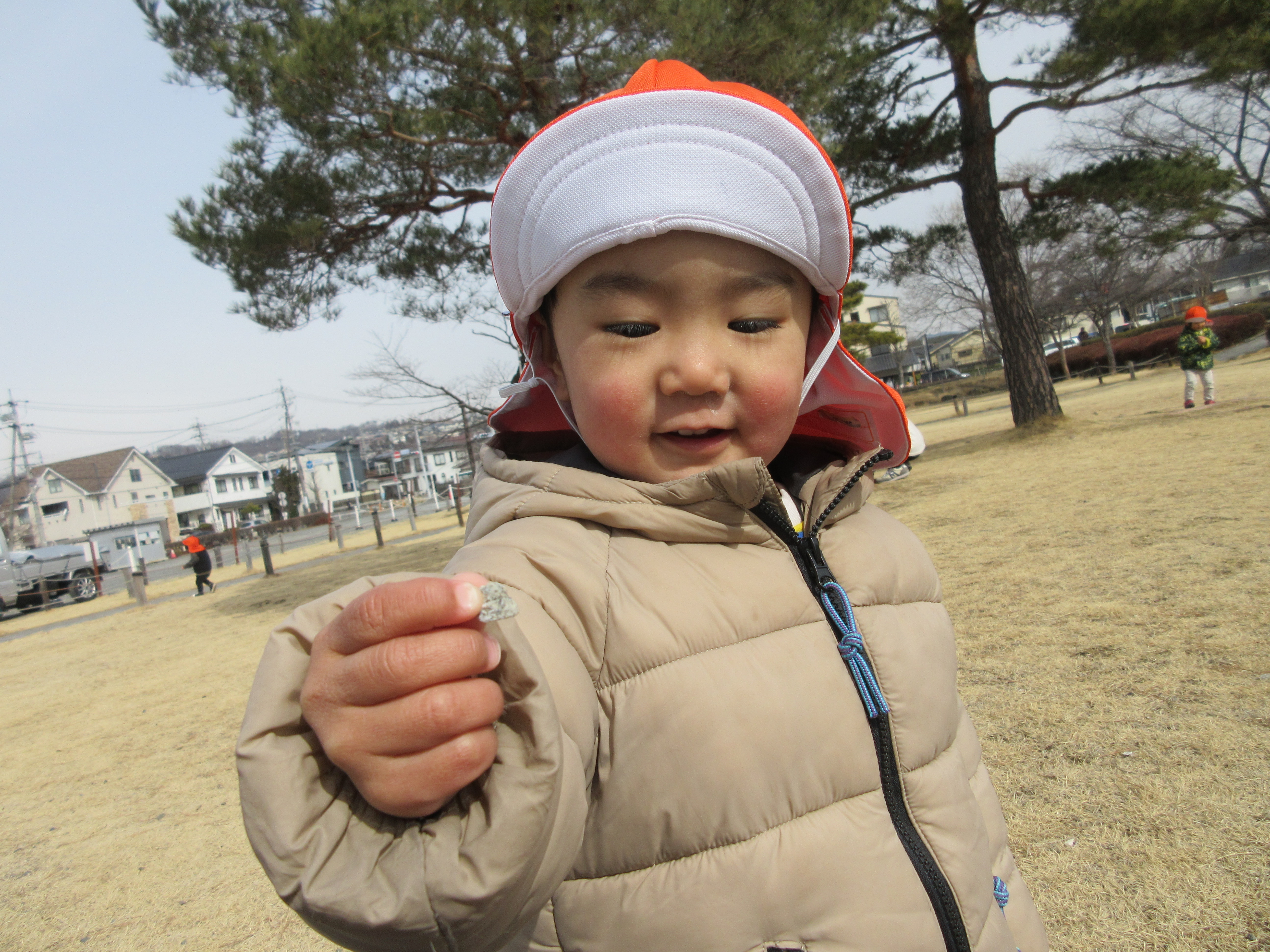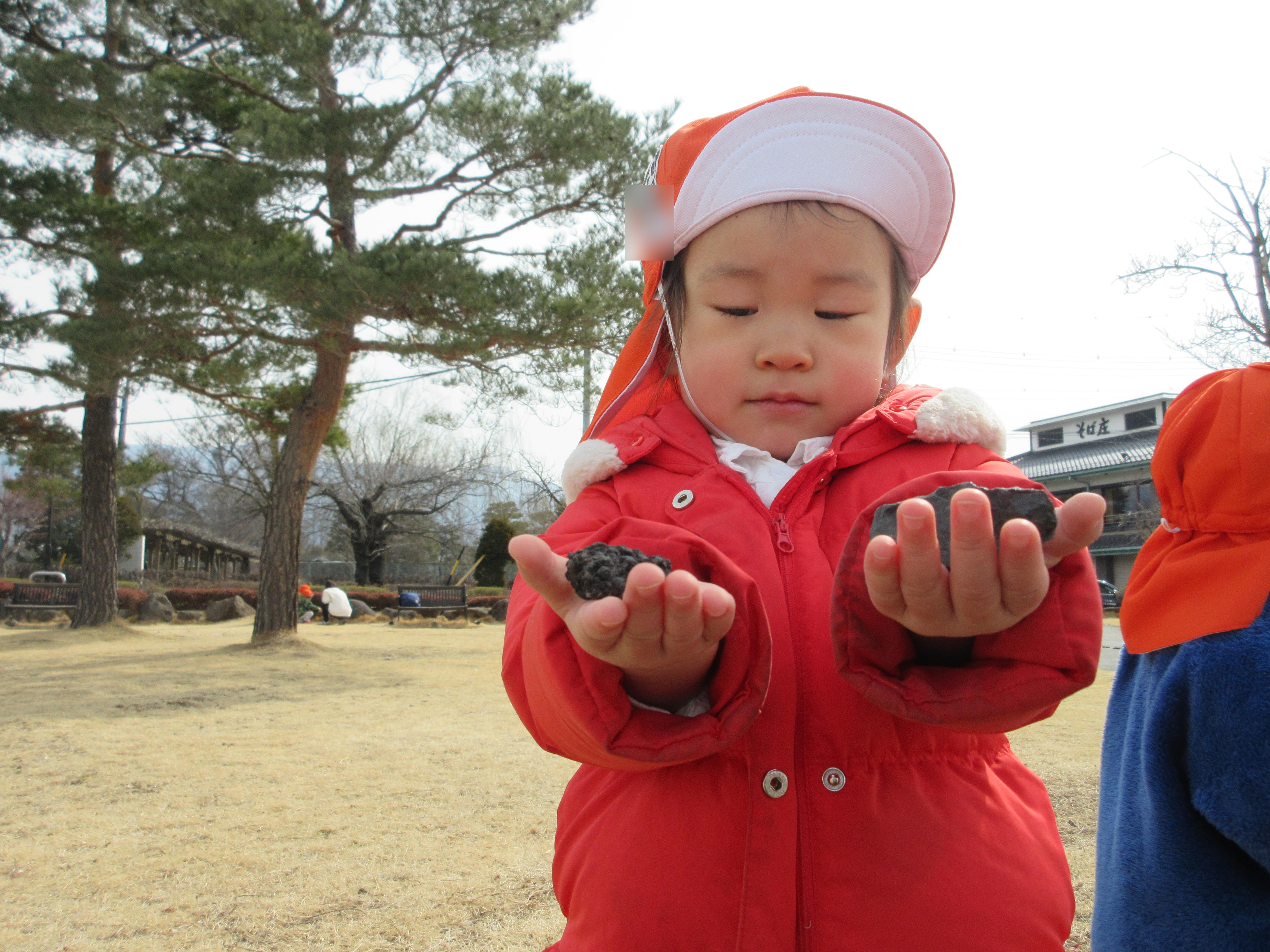 「このいしかわいいよ~」「あかちゃんいしだね」と見つけた石を得意げな表情で先生に見せてくれました![]()