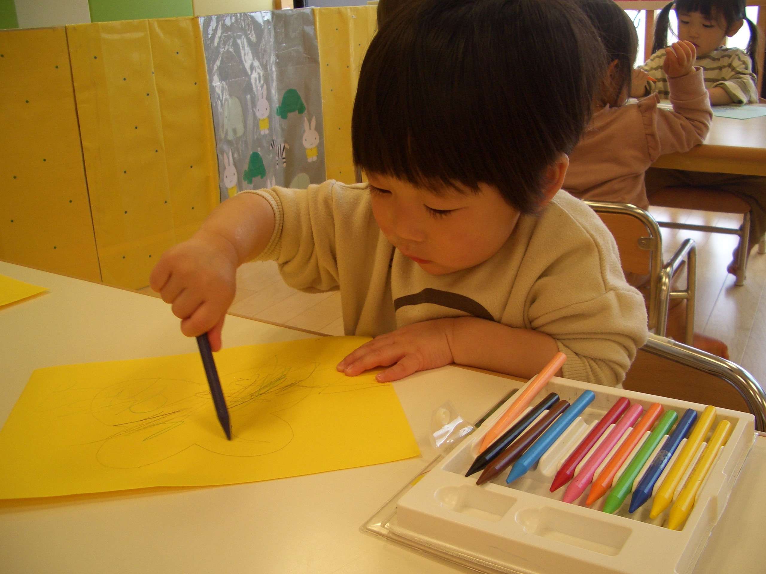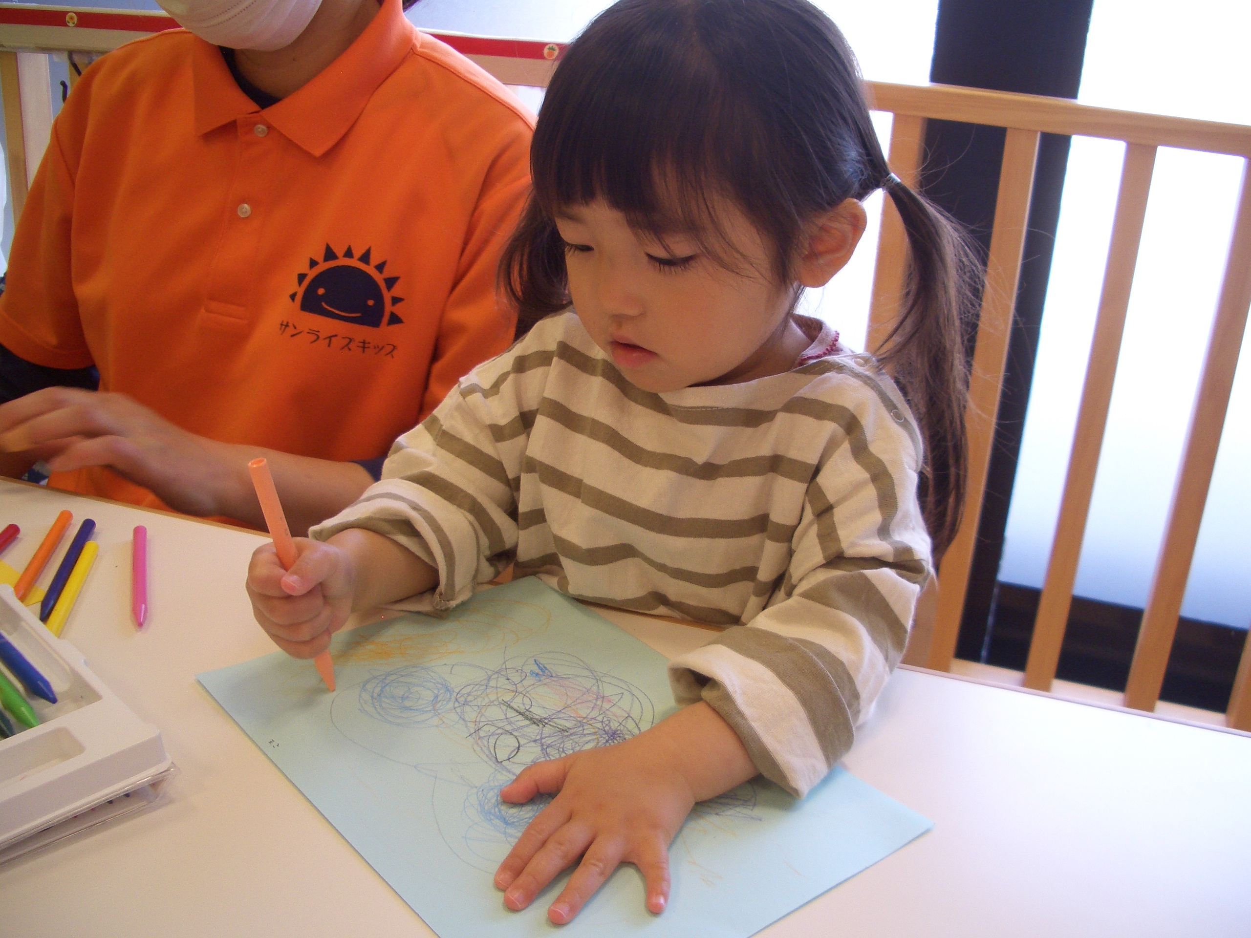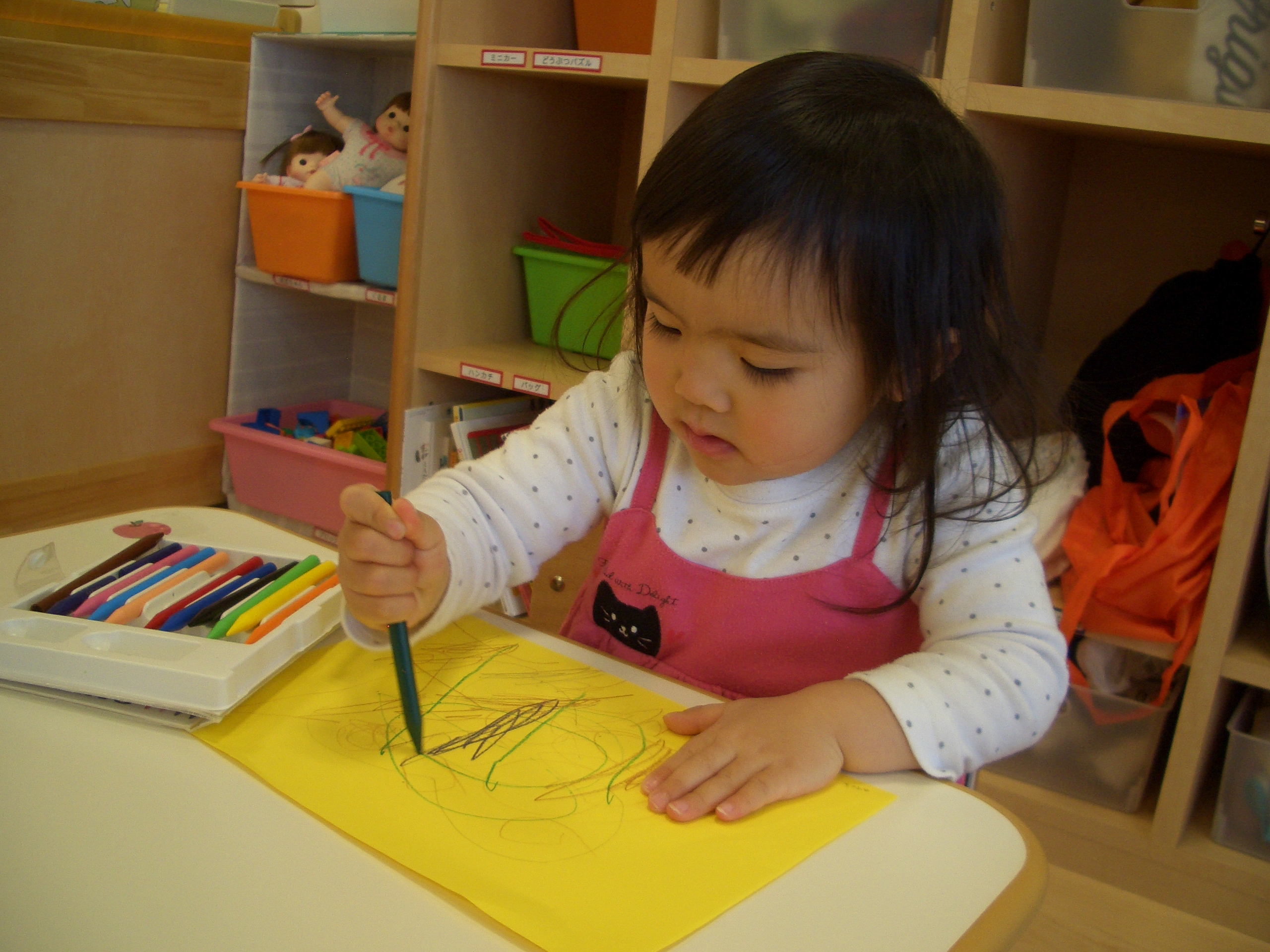 優しく丸を描いてみたり、力強く塗ってみたりと思い思いに楽しんでいましたよ![]()