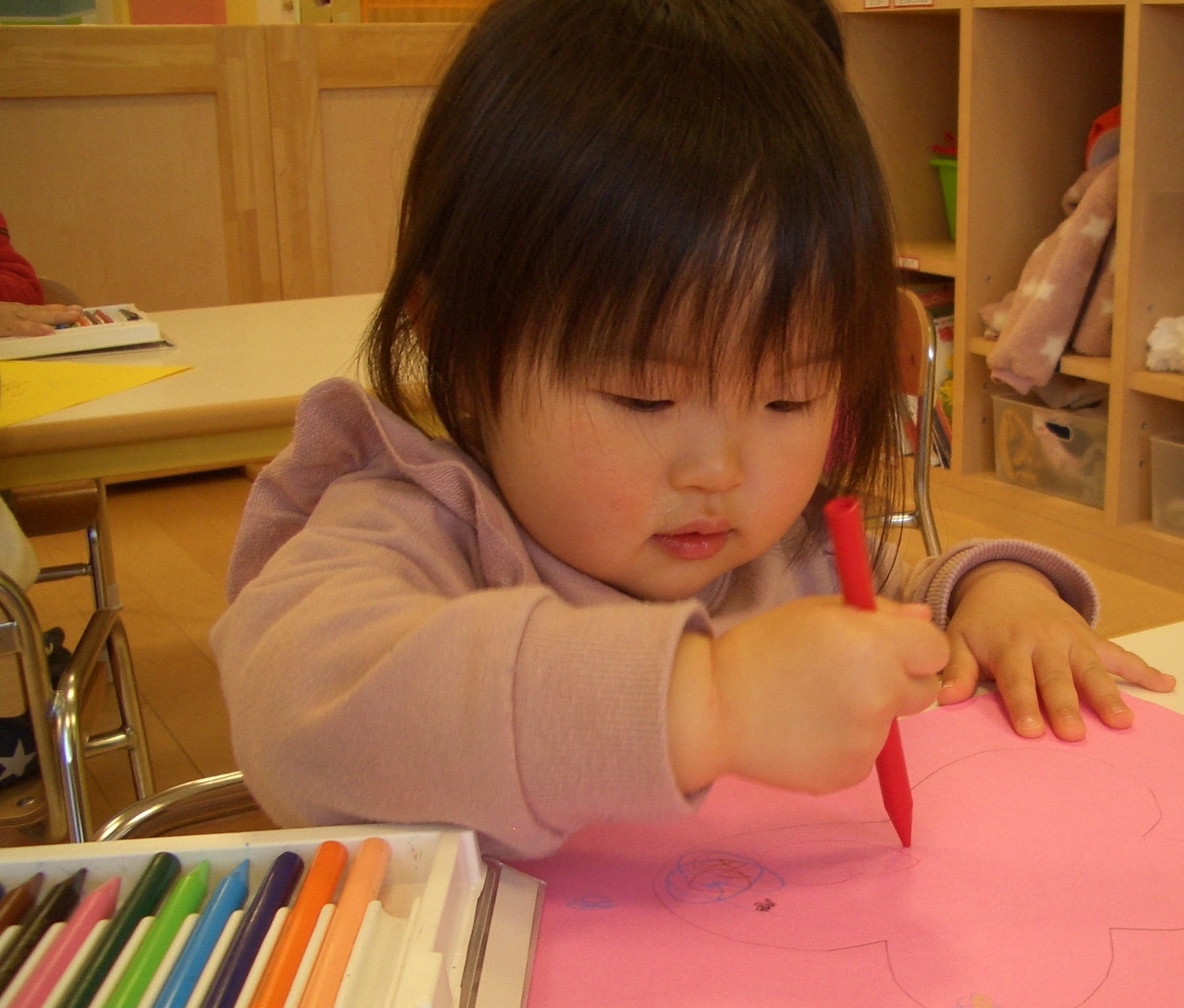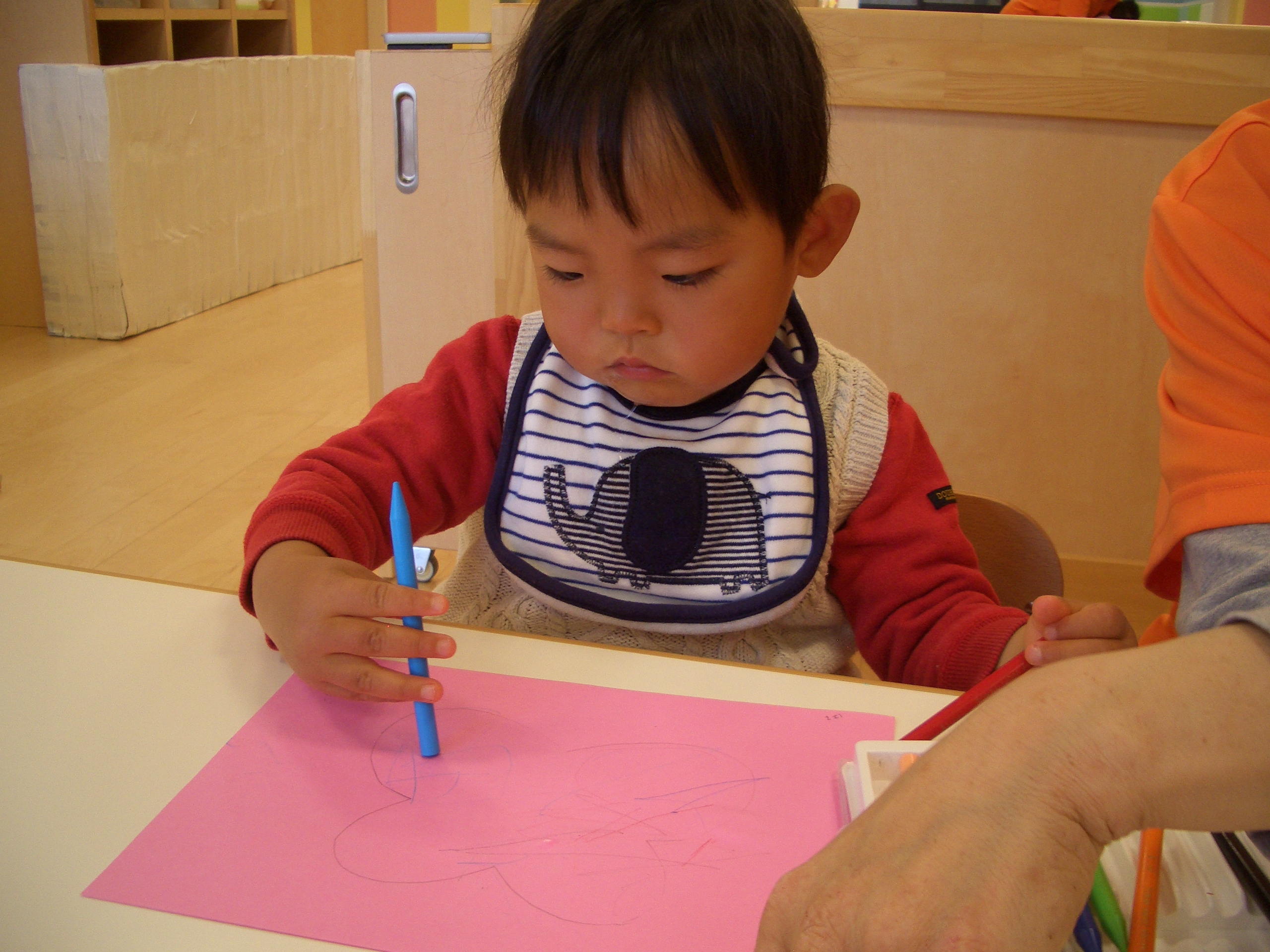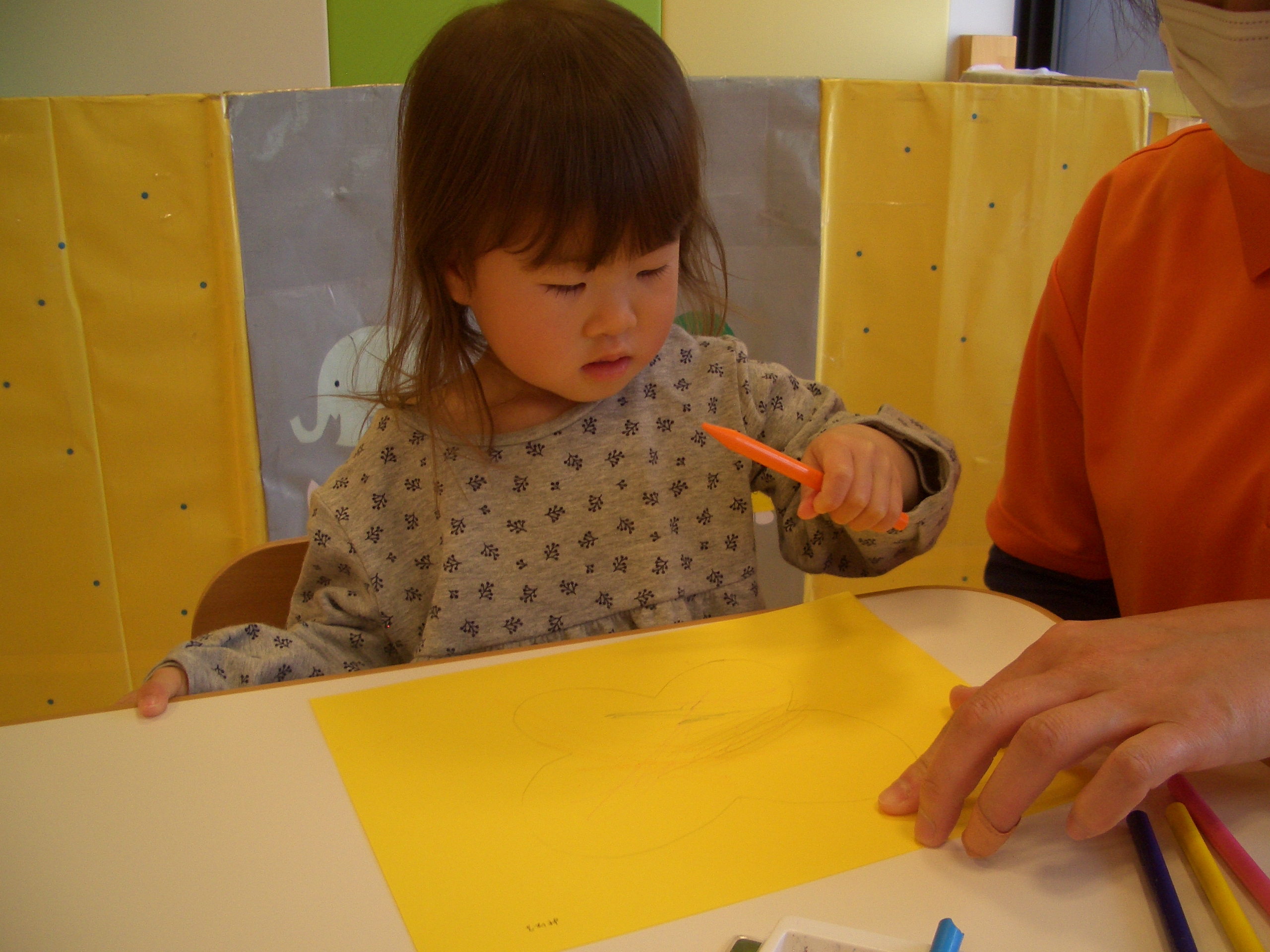 優しく丸を描いてみたり、力強く塗ってみたりと思い思いに楽しんでいましたよ![]()