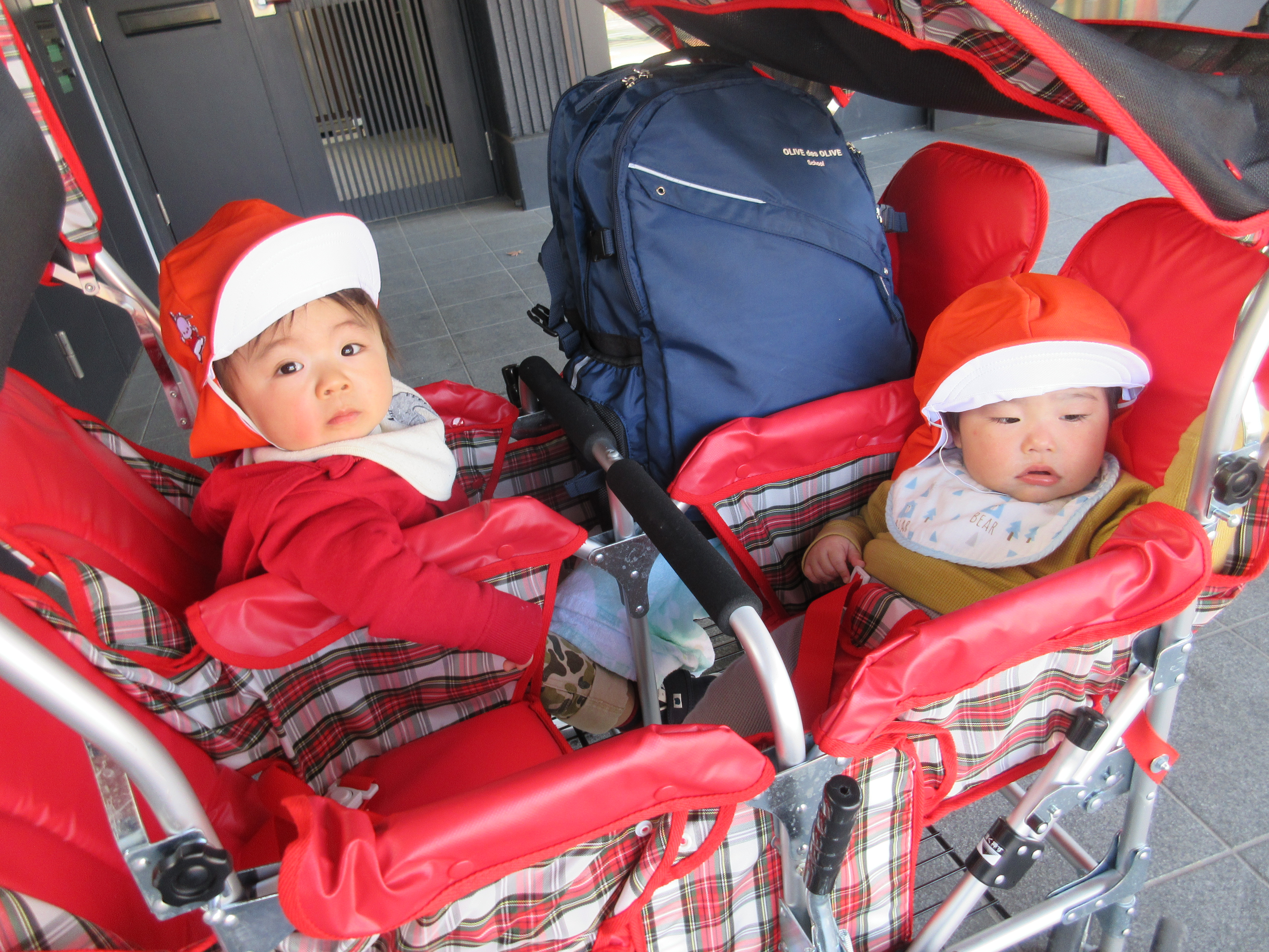 散歩カートに乗ってお散歩に行きます![]()