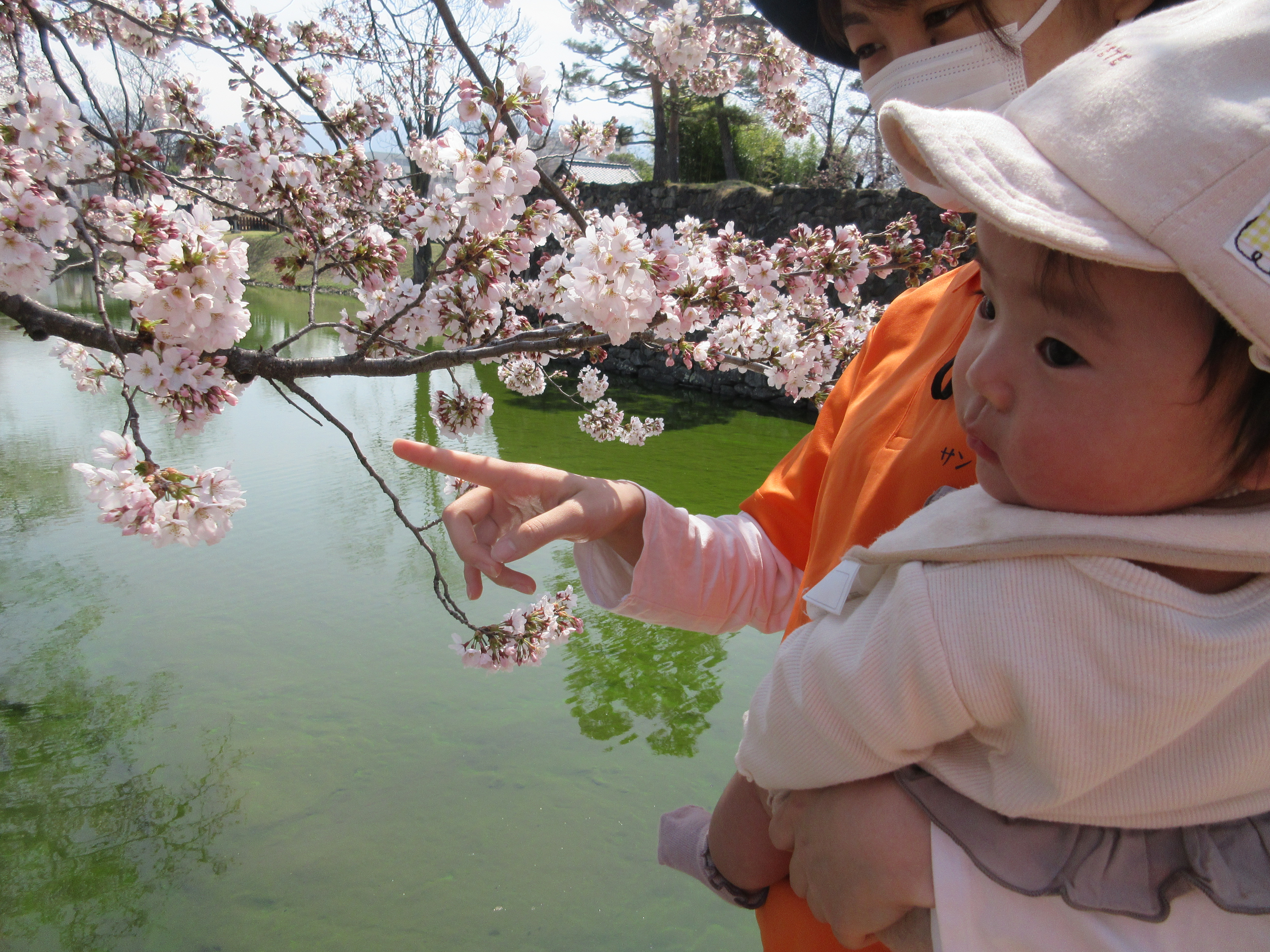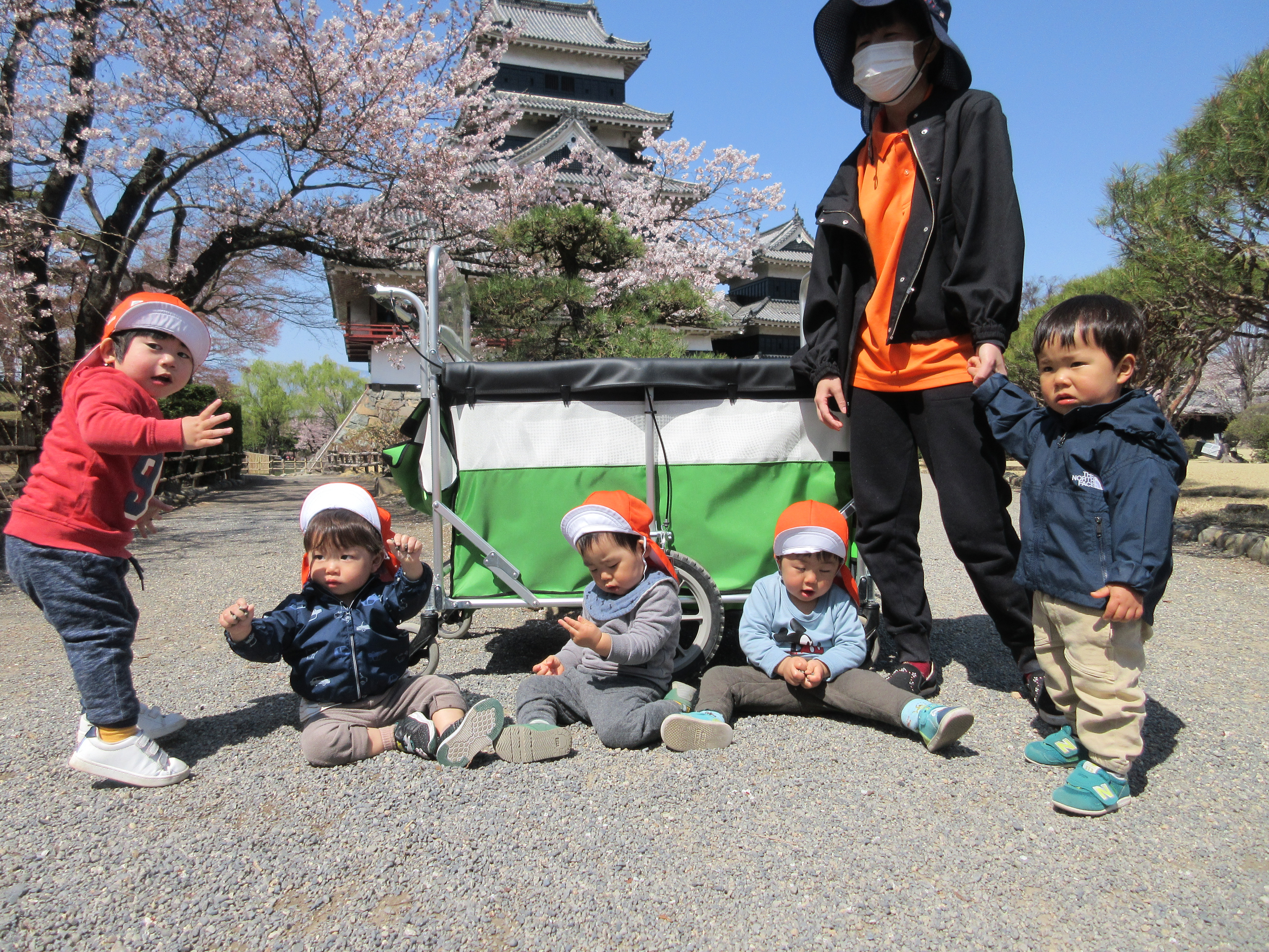 今週は松本城の桜が咲き始め、お散歩では桜の木に夢中の子どもたち![]()