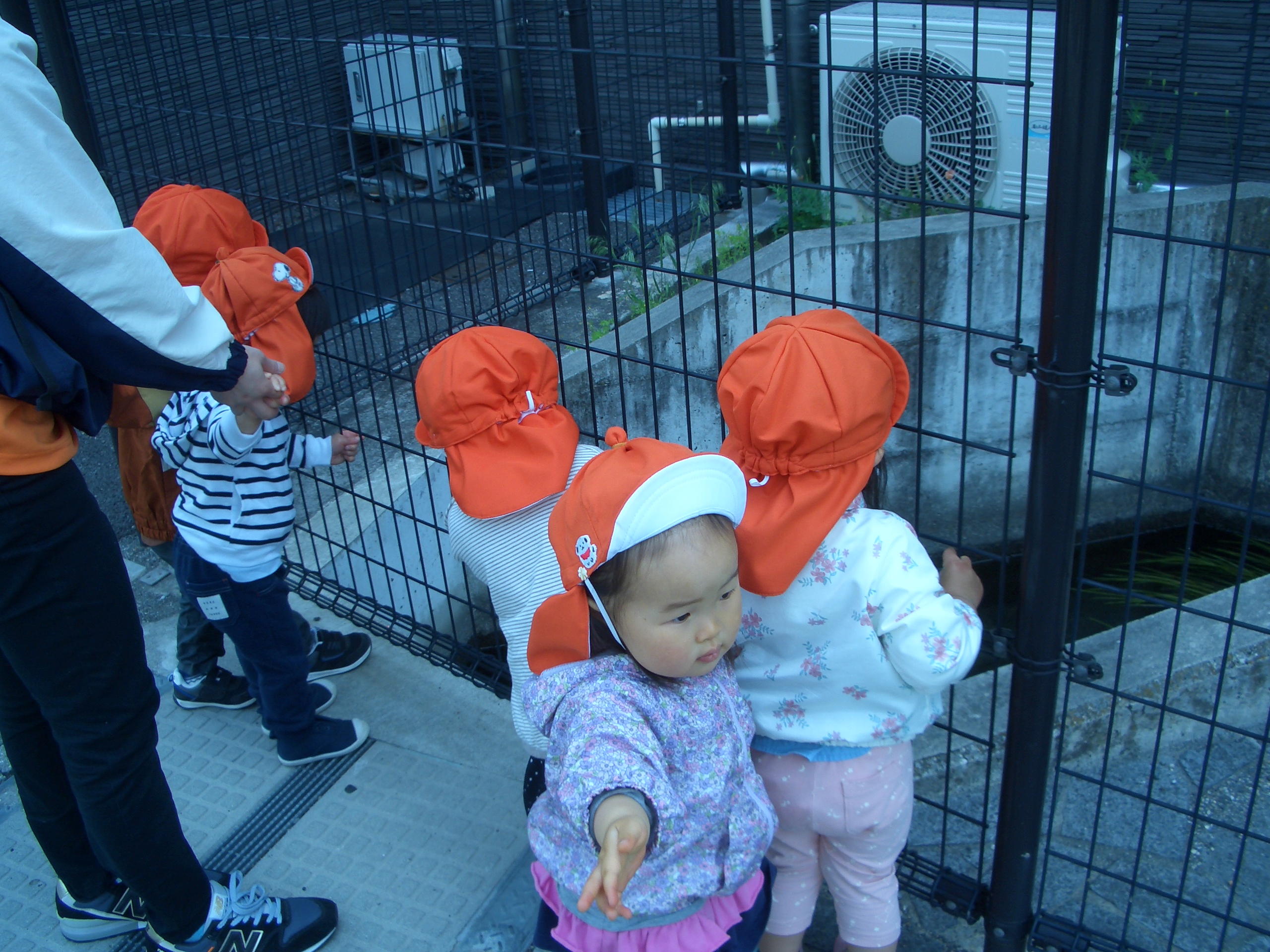 お魚が泳いでいることにびっくりしている様子の子どもたちでした![]()