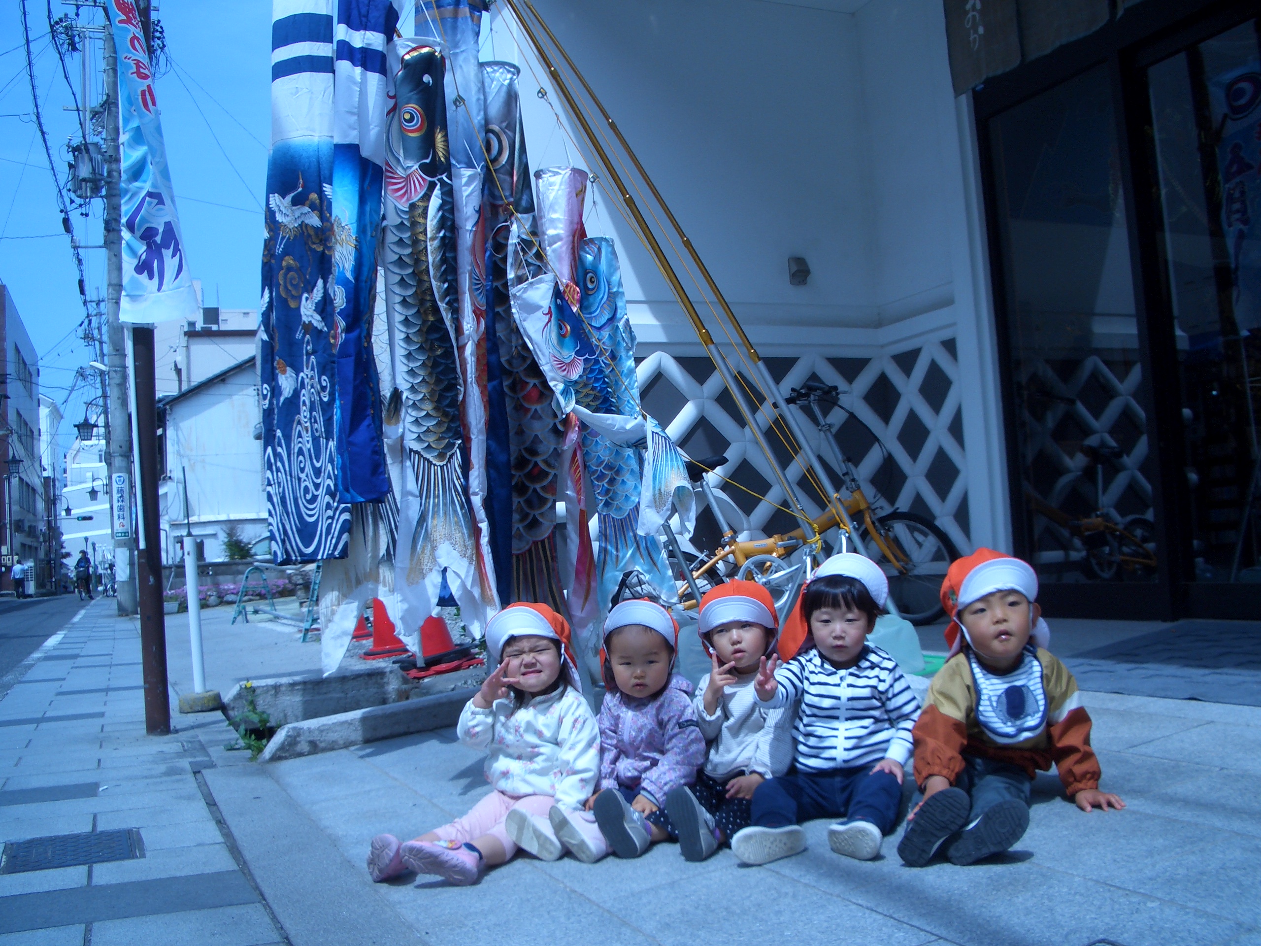 先週こいのぼりの製作をし、子どもたちがこいのぼりにとても興味を持っていたので今週は本物のこいのぼりを見に行ってきました。