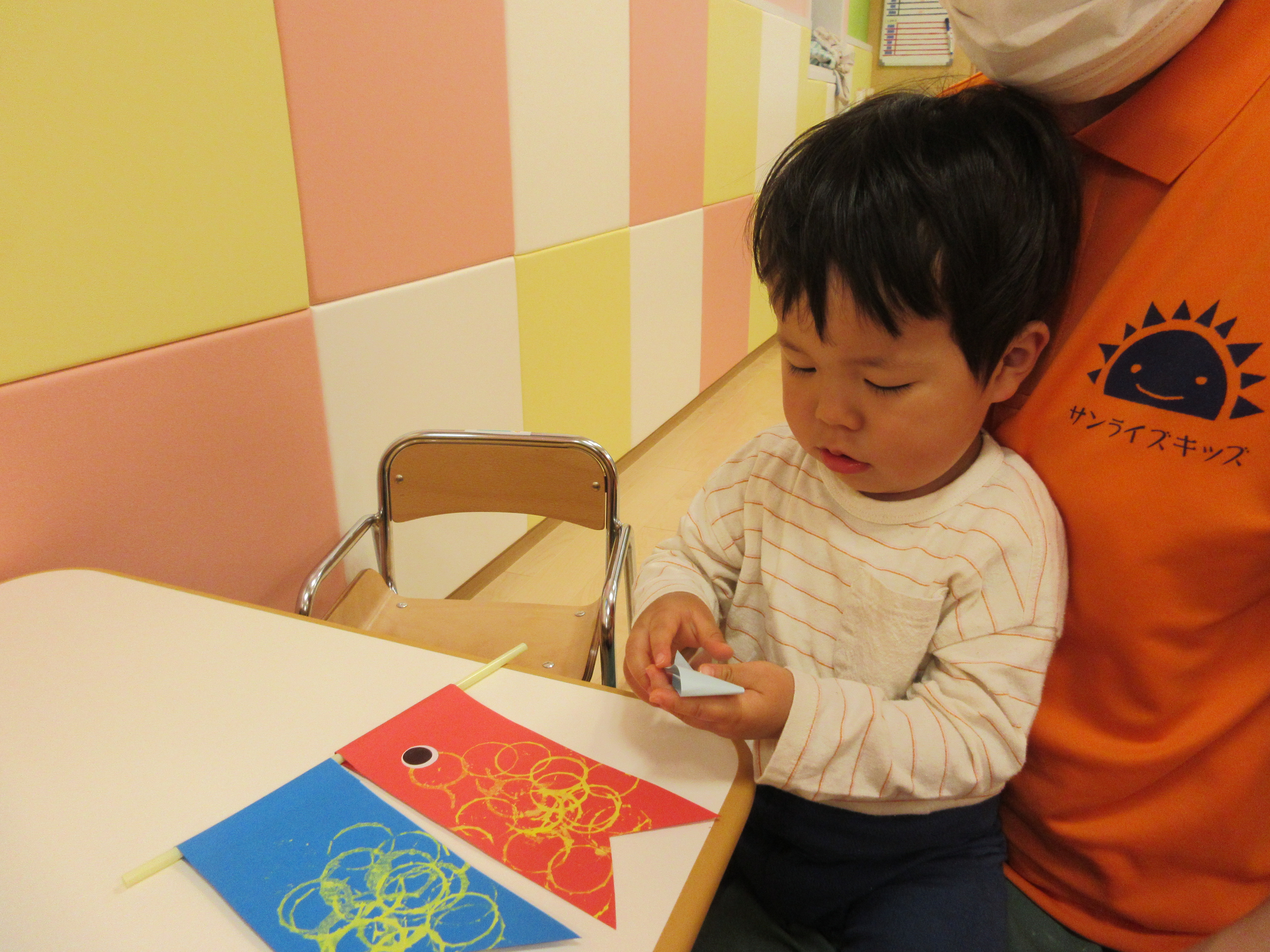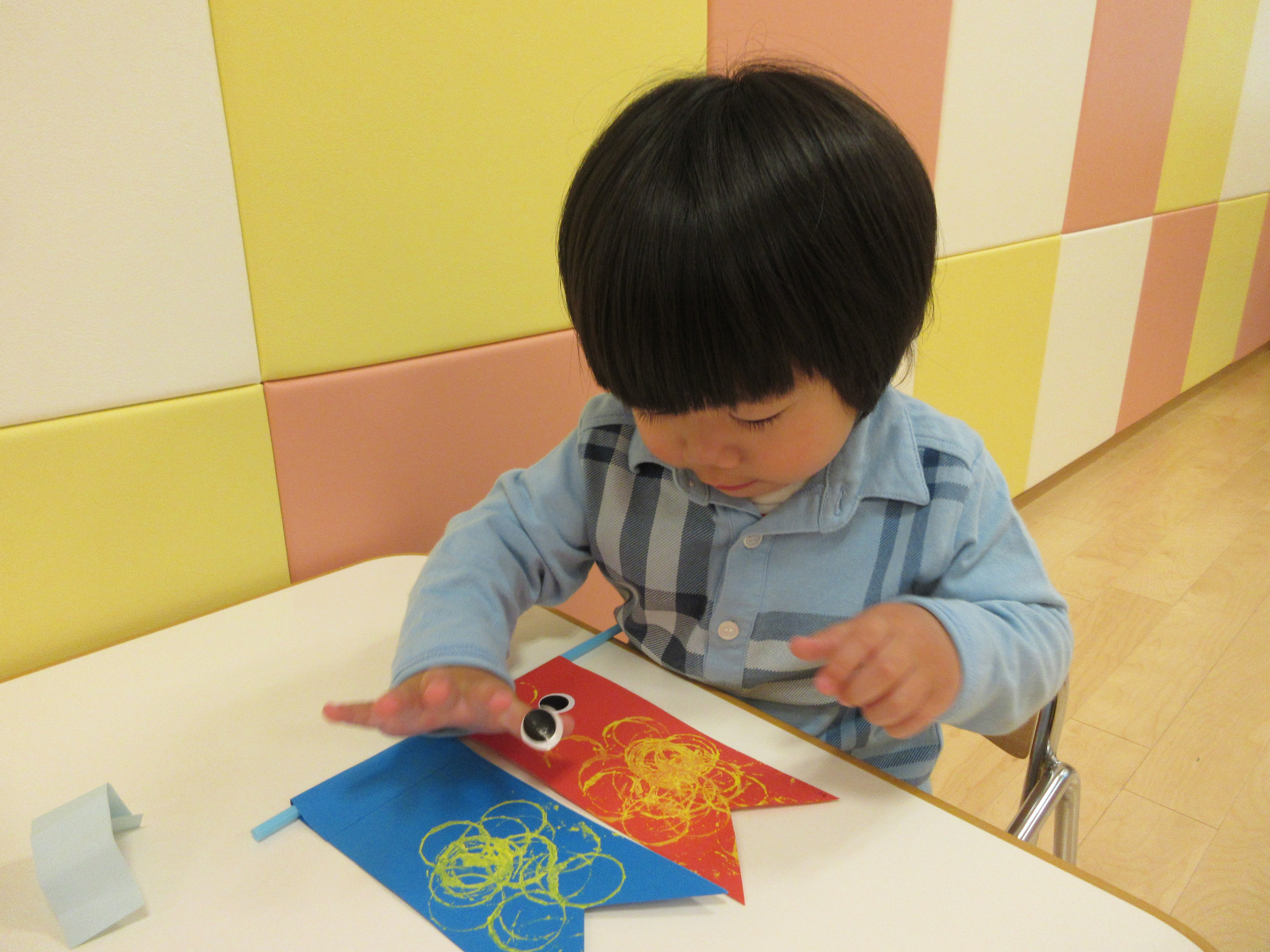 目玉のシールも自分たちで貼り、個性豊かな“こいのぼり”が完成しました![]()