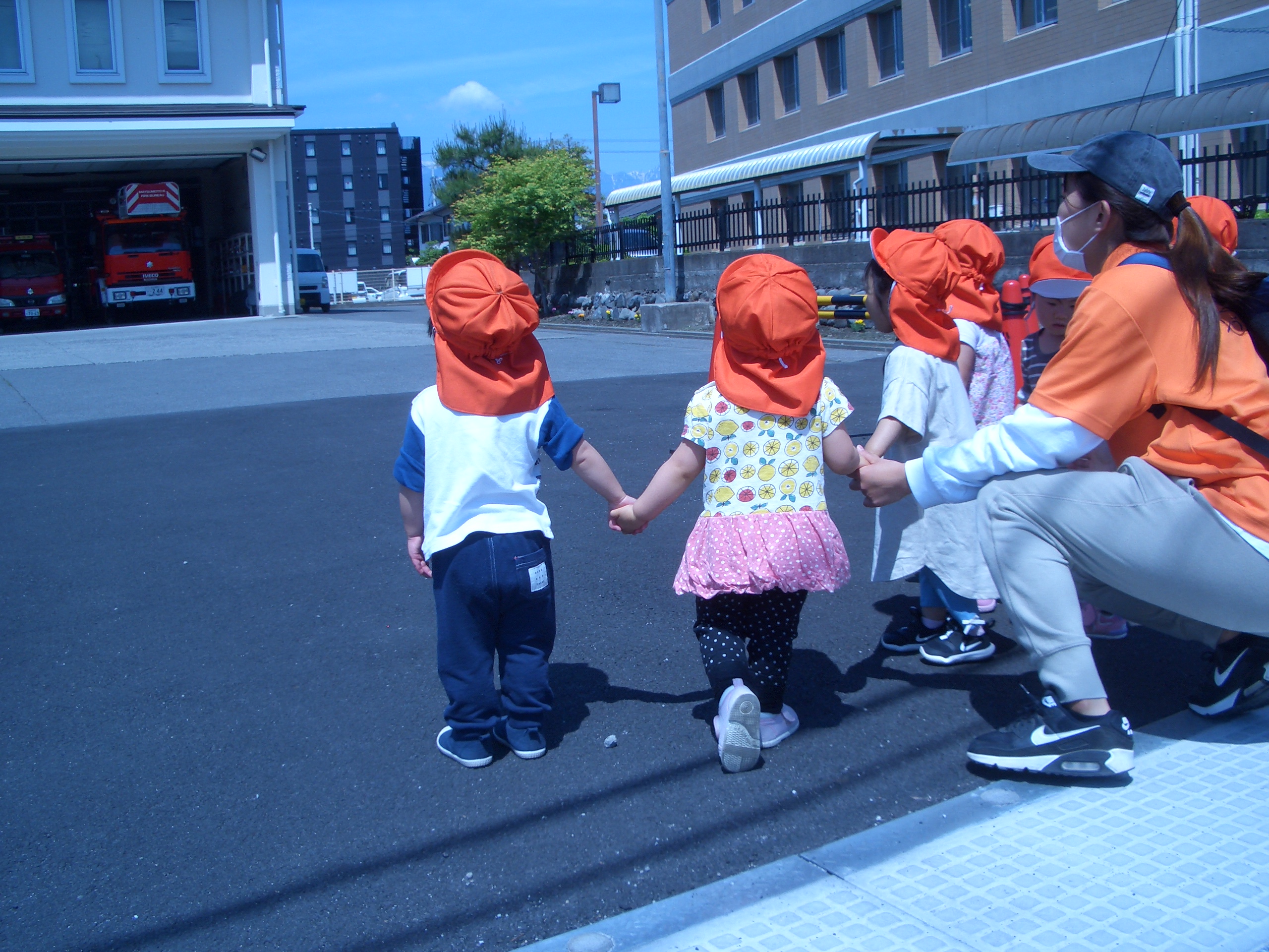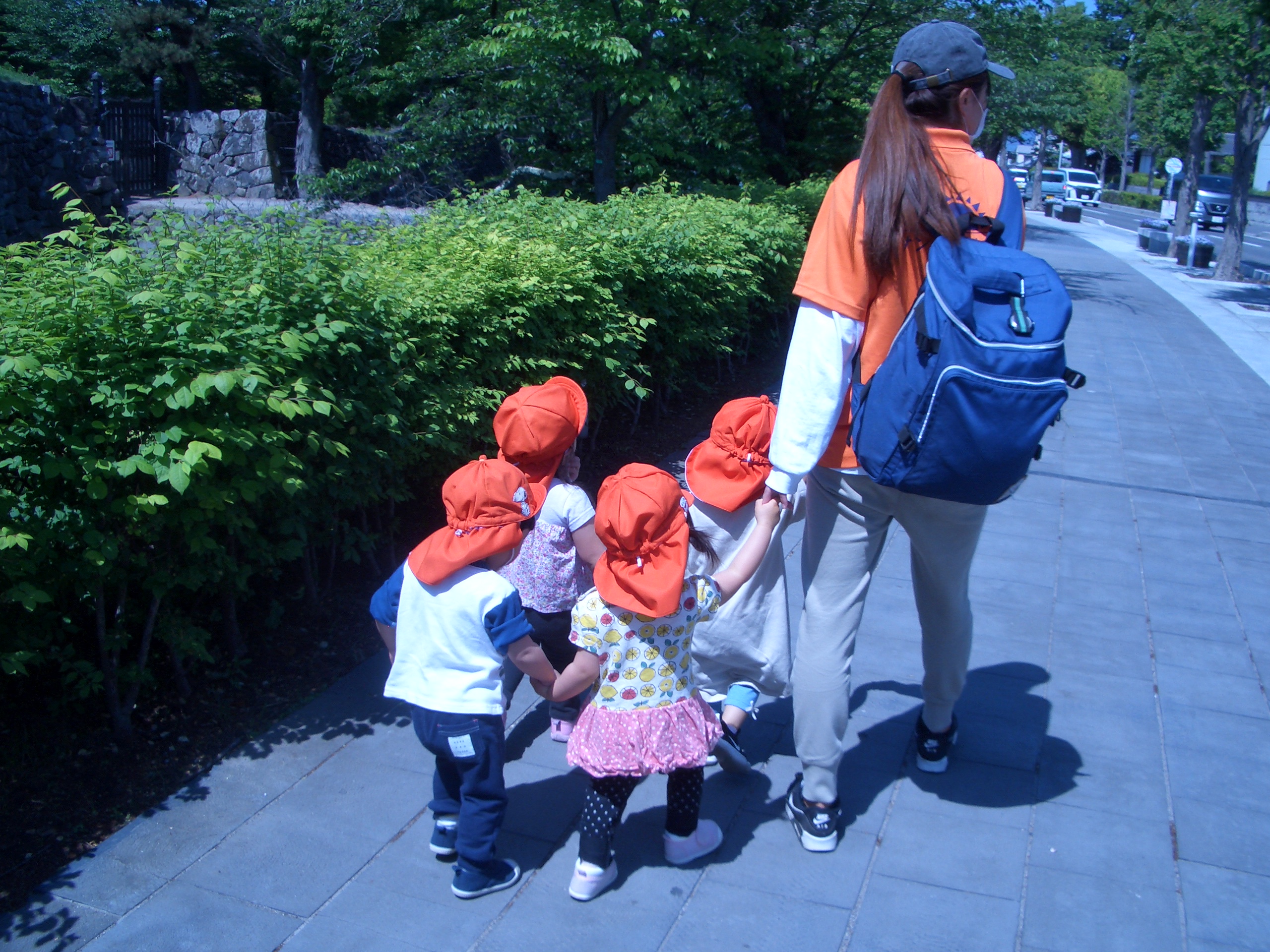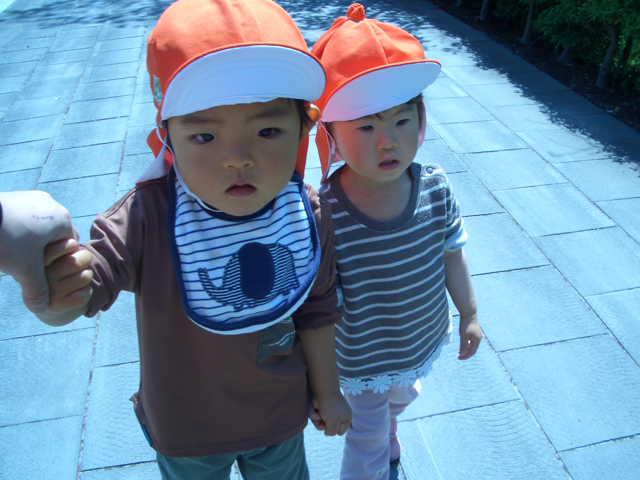 また、3歳のお兄さんお姉さんに向けて、先生とだけでなくお友だちと手を繋いで歩く練習も少しずつしています![]()