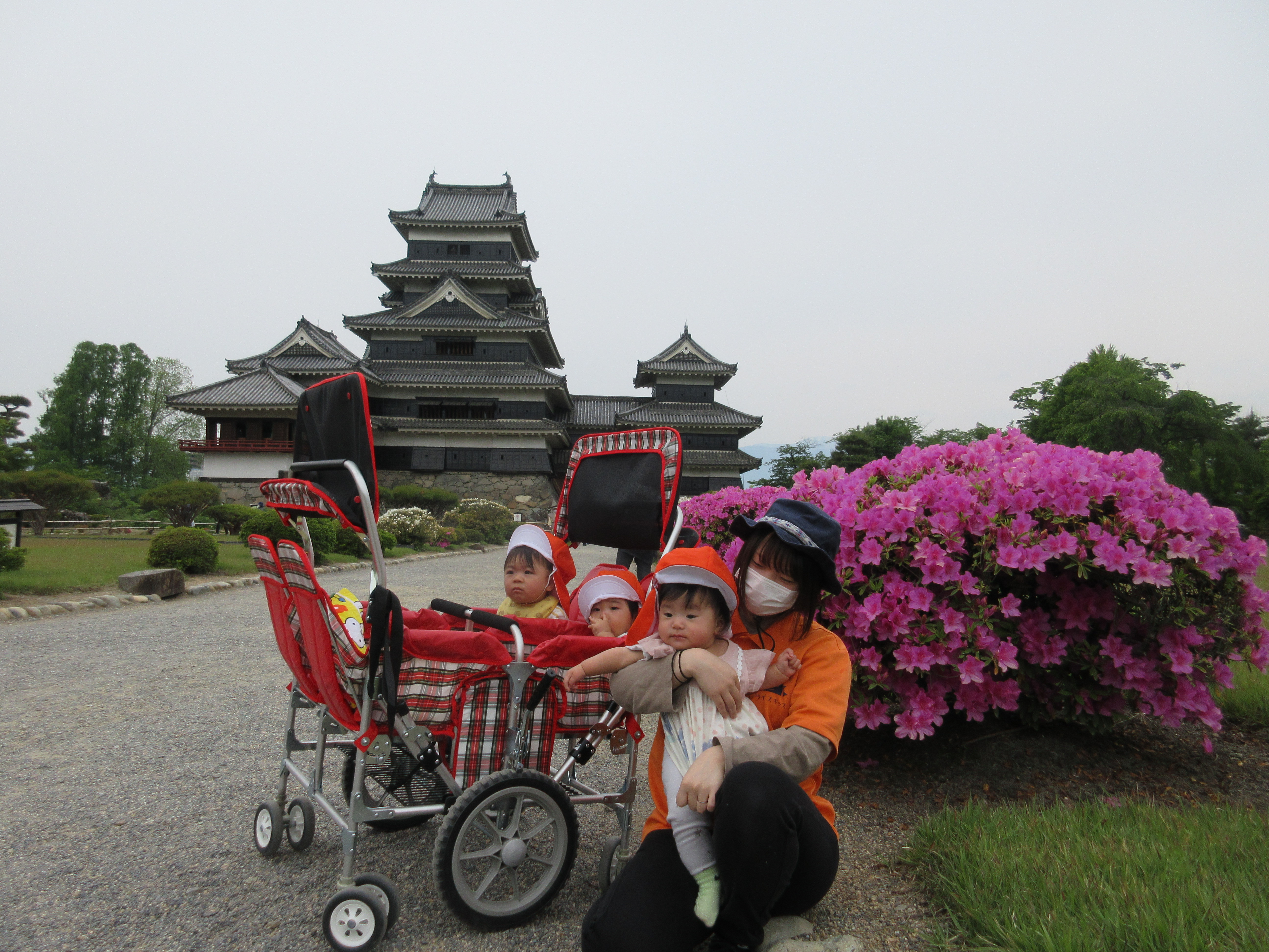 綺麗なツヅジと松本城と共にみんなで記念撮影。