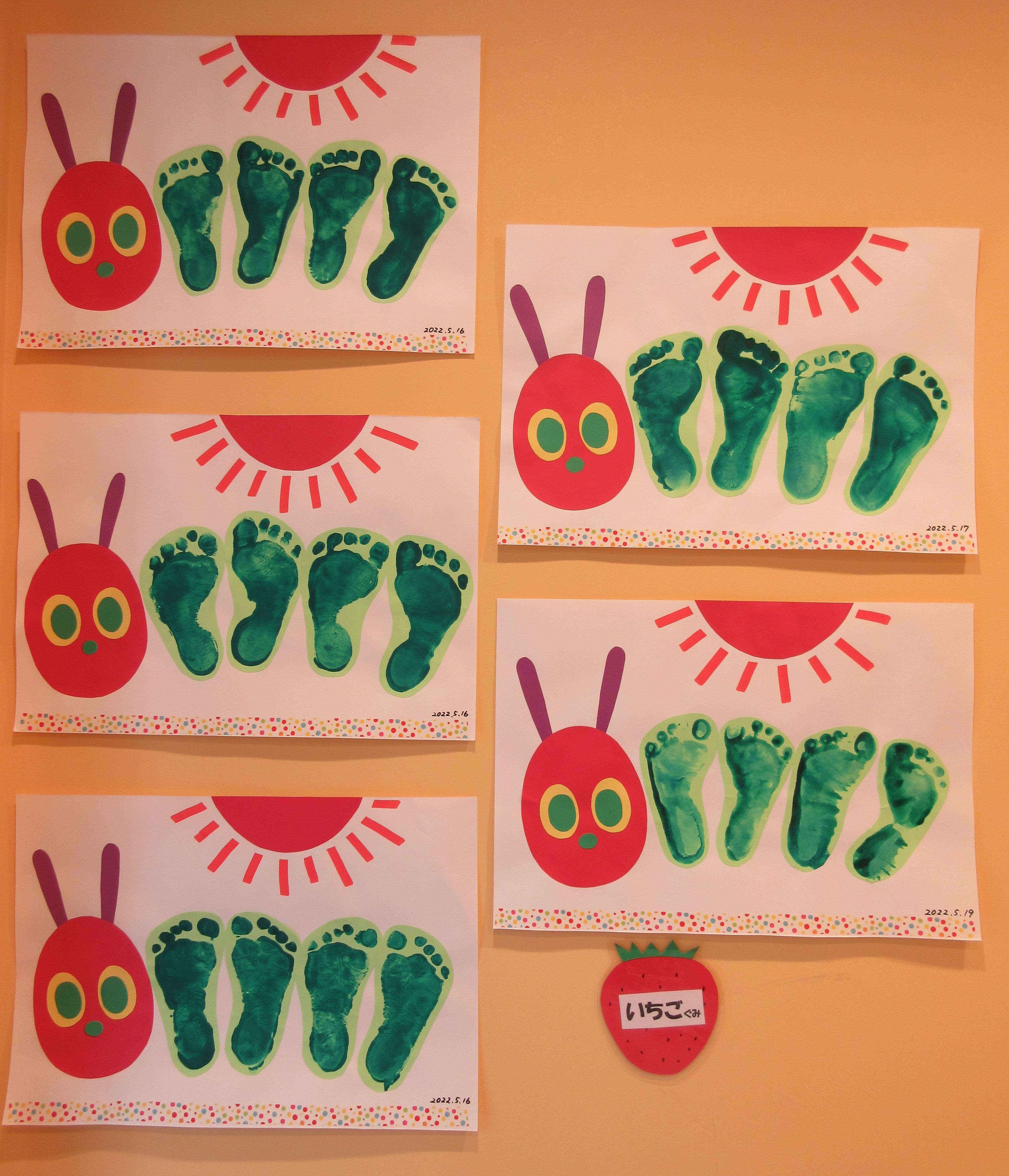 足型は『はらぺこあおむし』になったのですが、出来あがったものを見せると、どの子も嬉しそうに見ていましたよ。