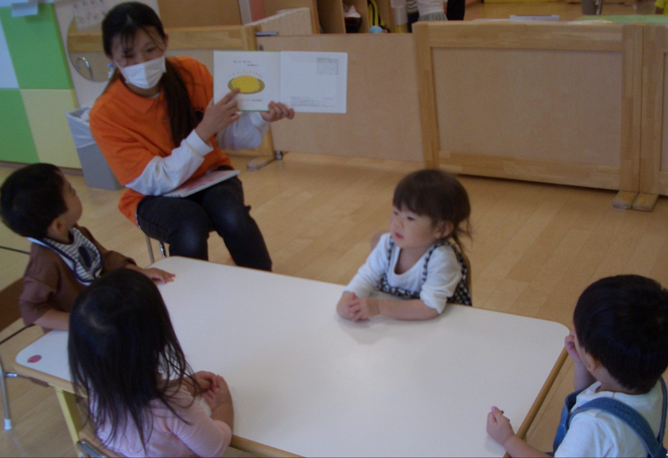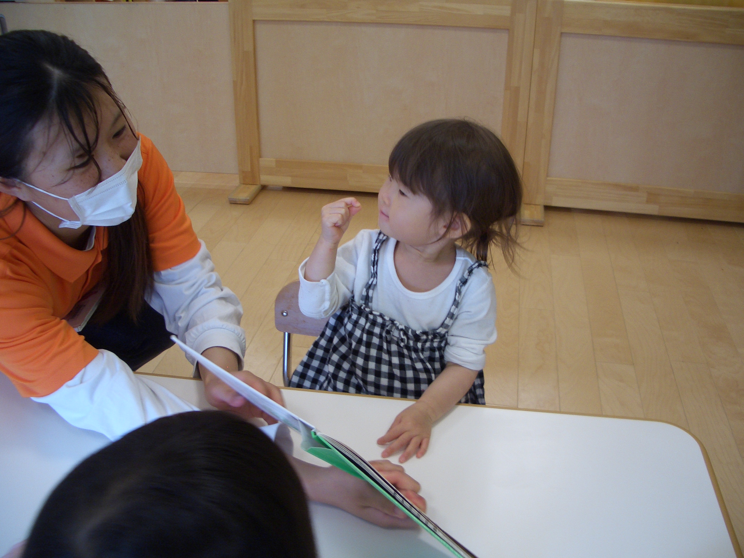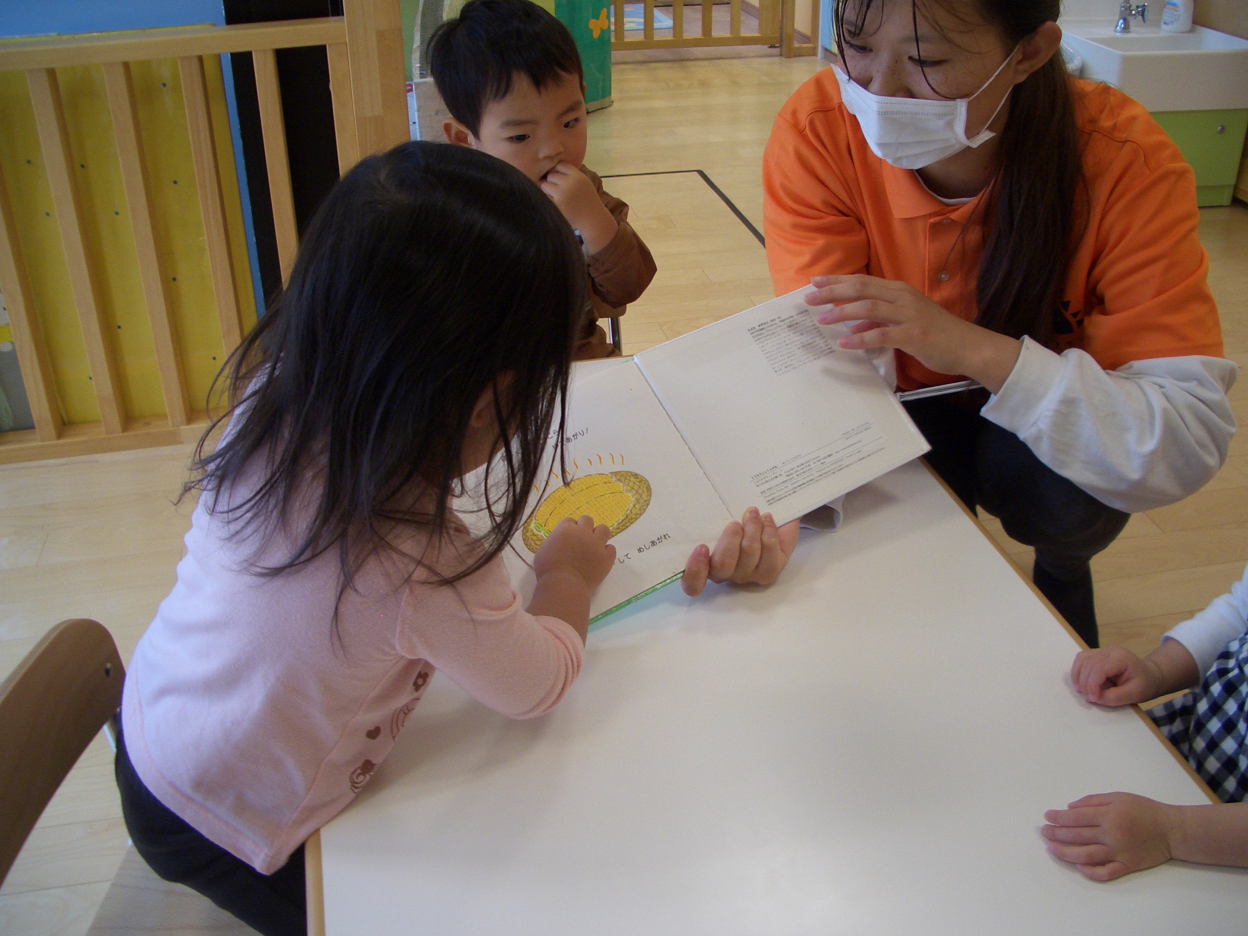 「あっ!」と言いながら絵本を触る子や「ふーふー」と息を吹きかけて食べる真似を楽しんでいました![]()