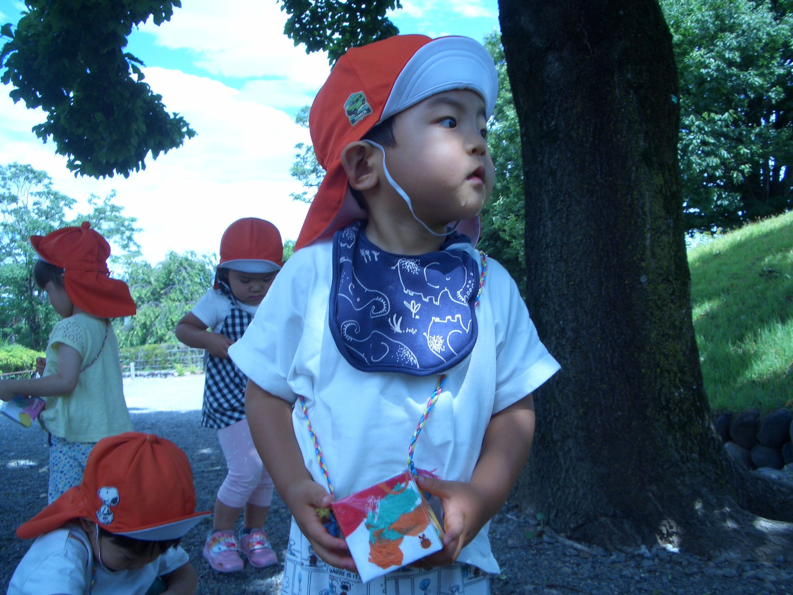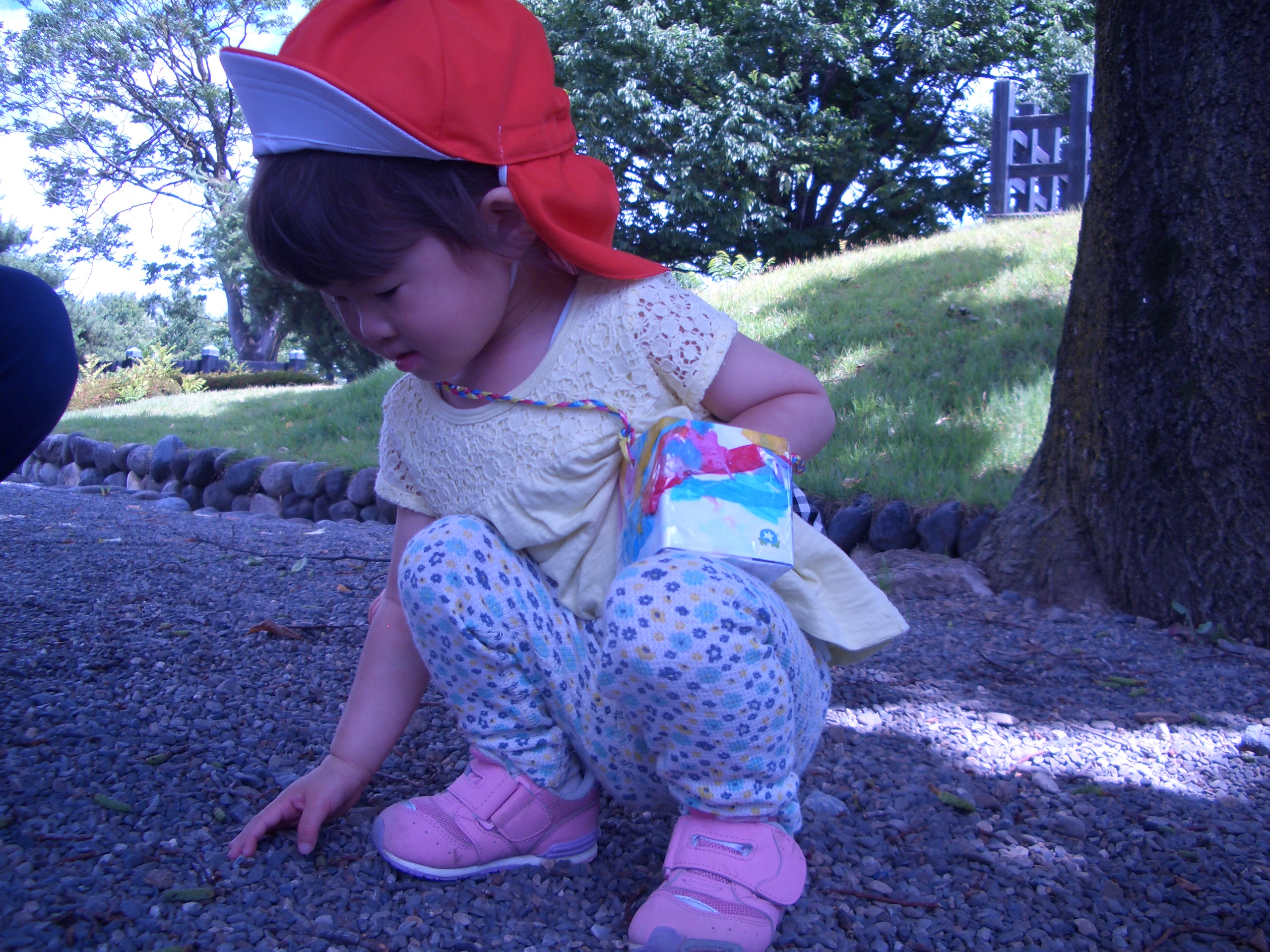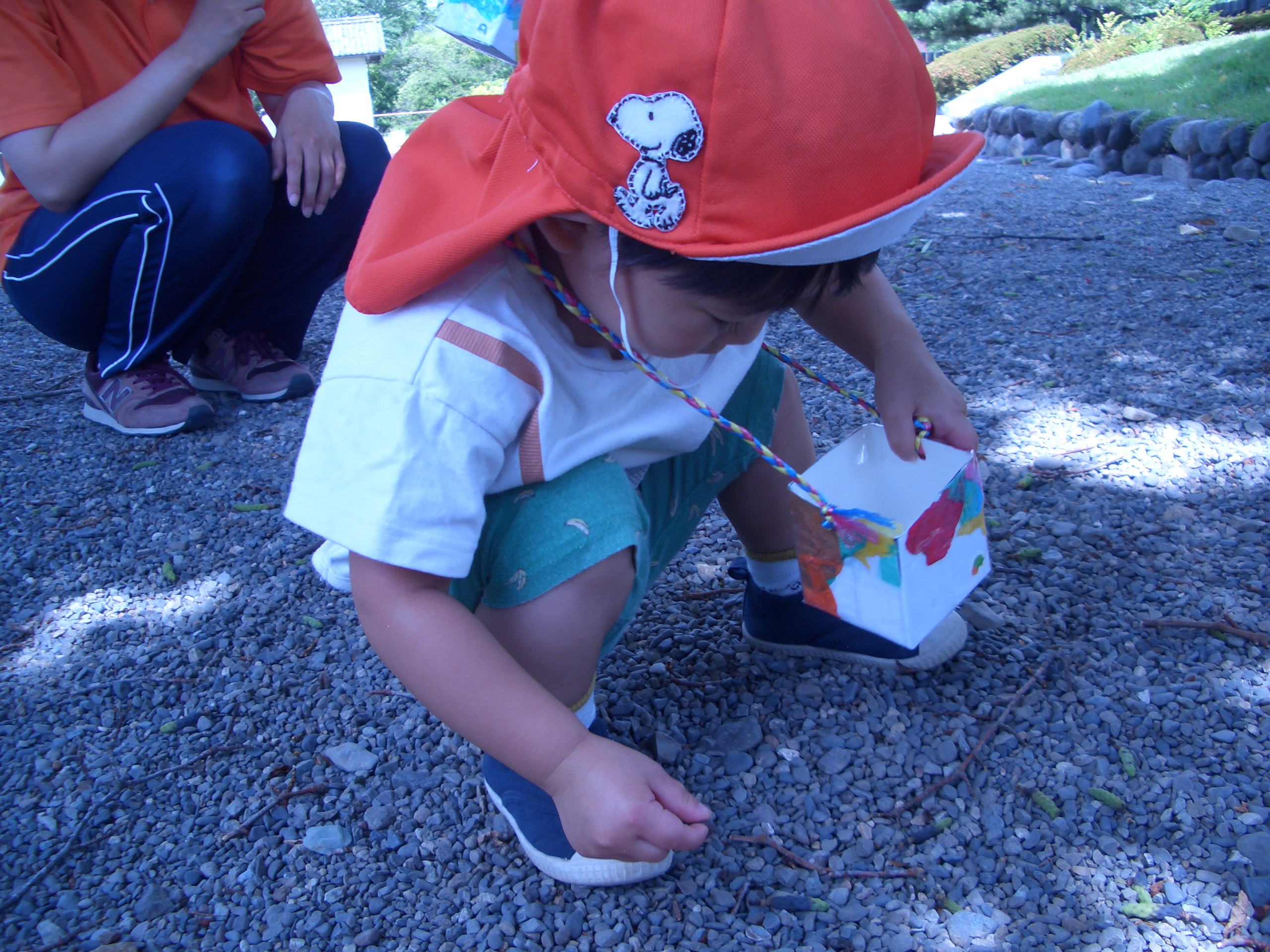 松本城では、木の実を拾ったり、自分の好きな石を見つけては入れたりと楽しんでいました![]()