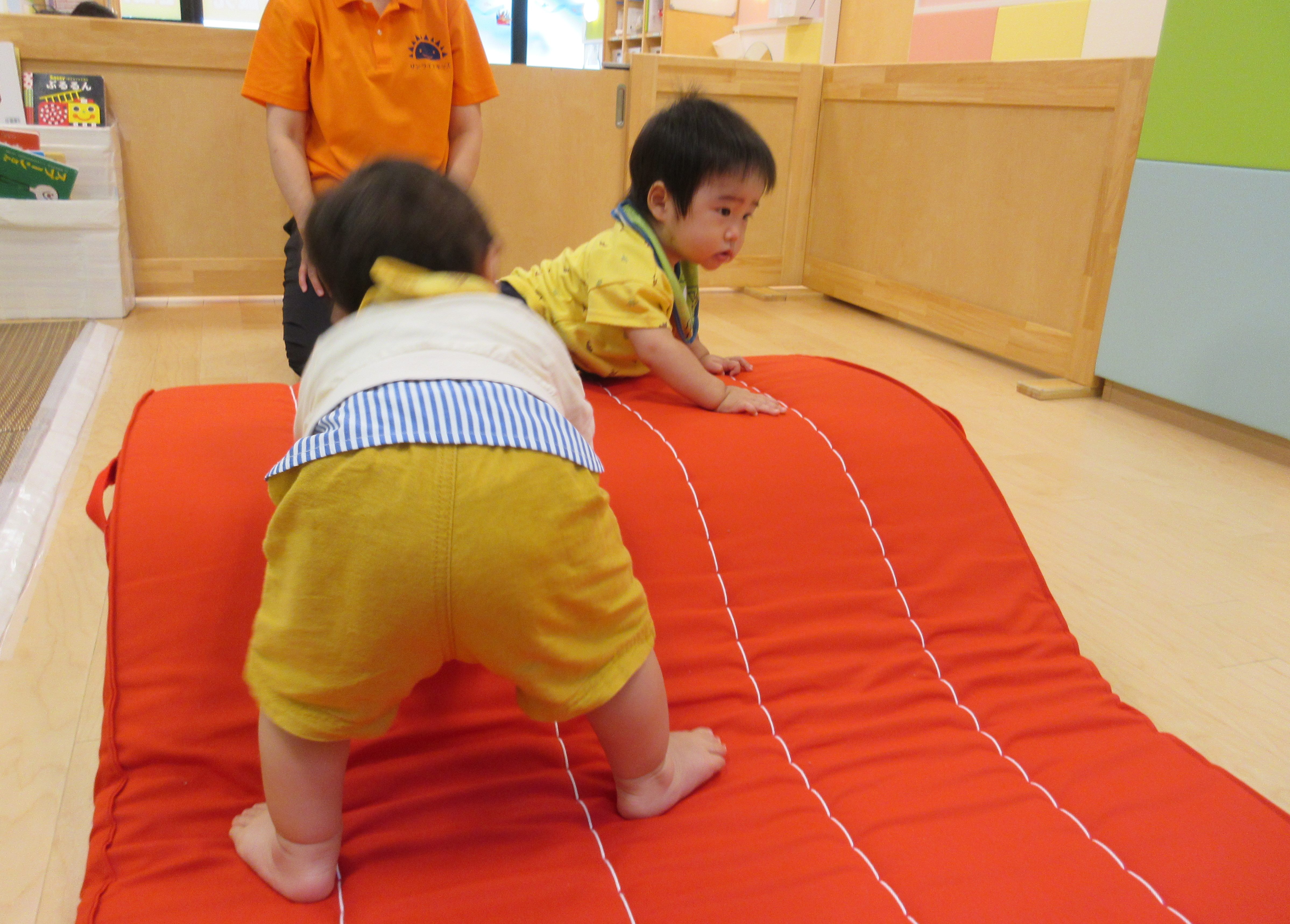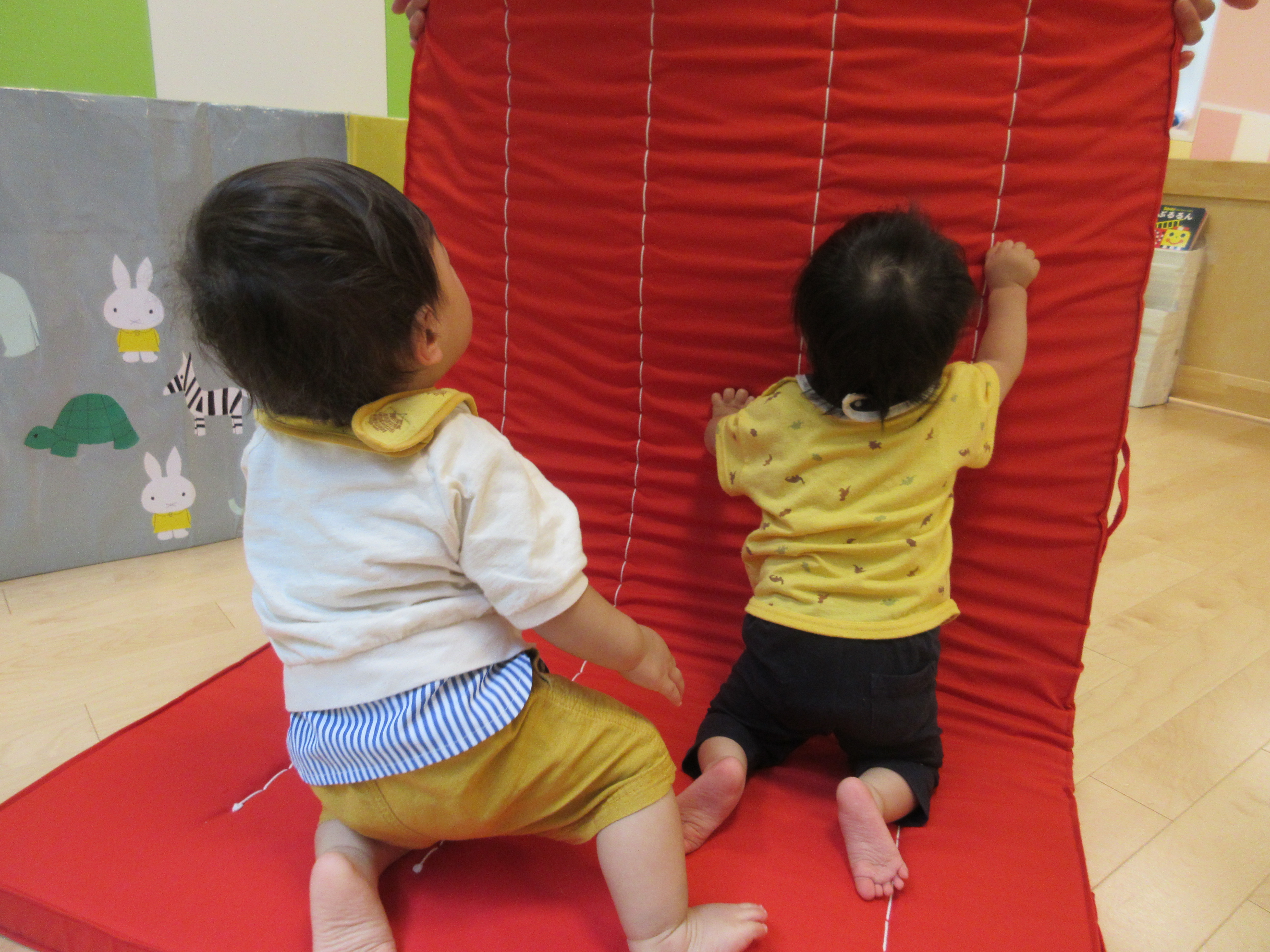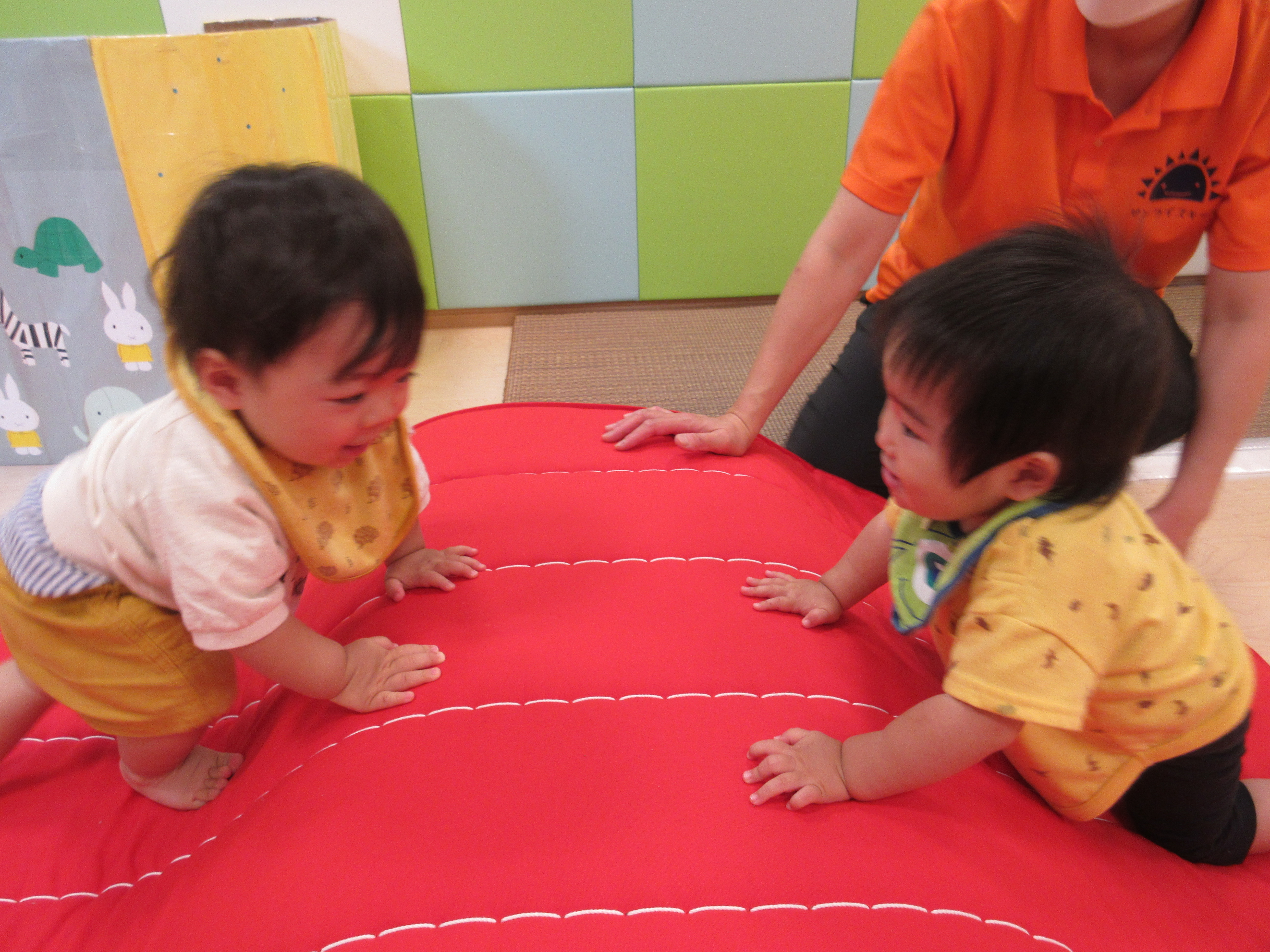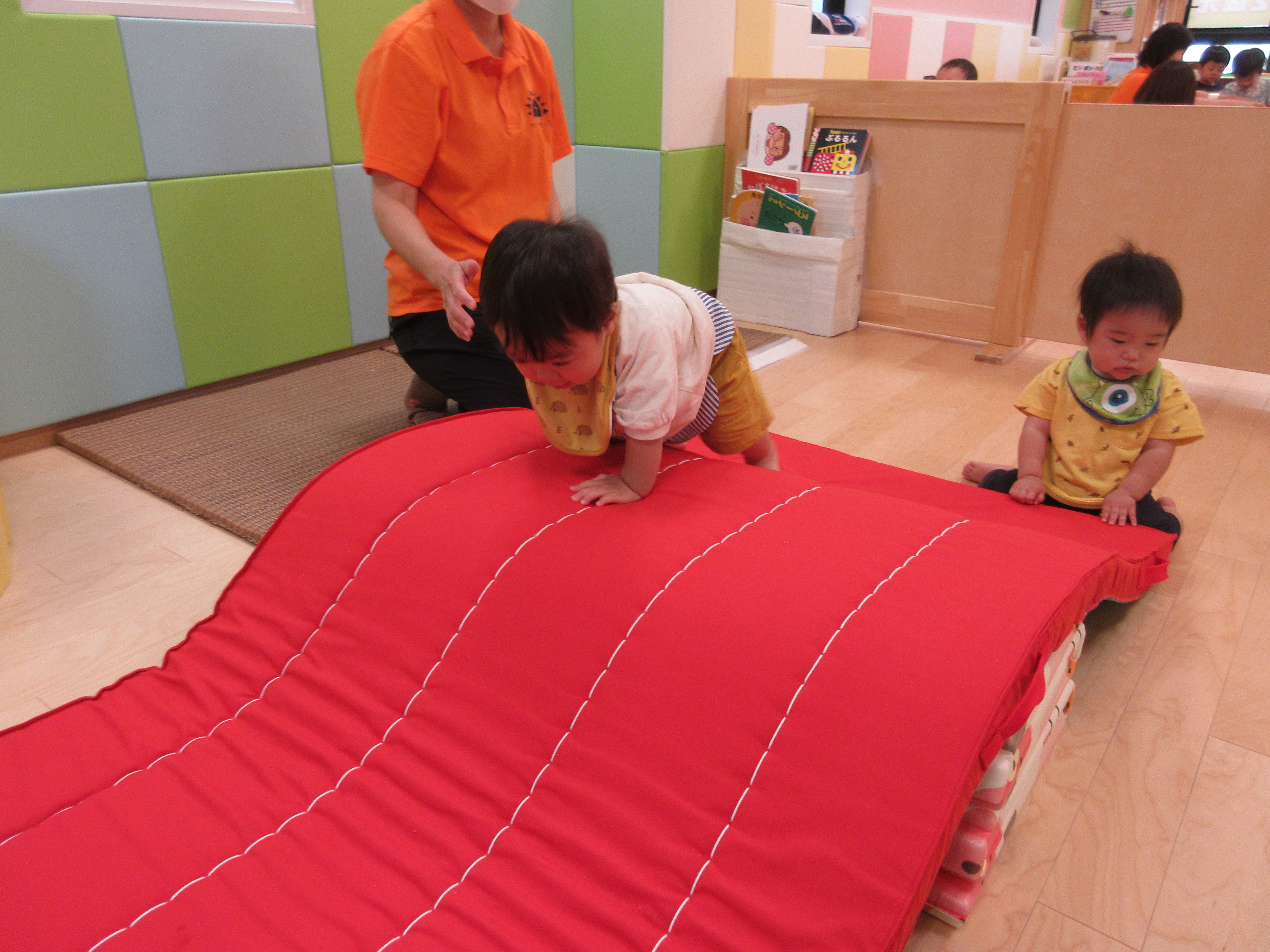 水曜日の沐浴前はマットをお山の形にして山登りをしました![]()
