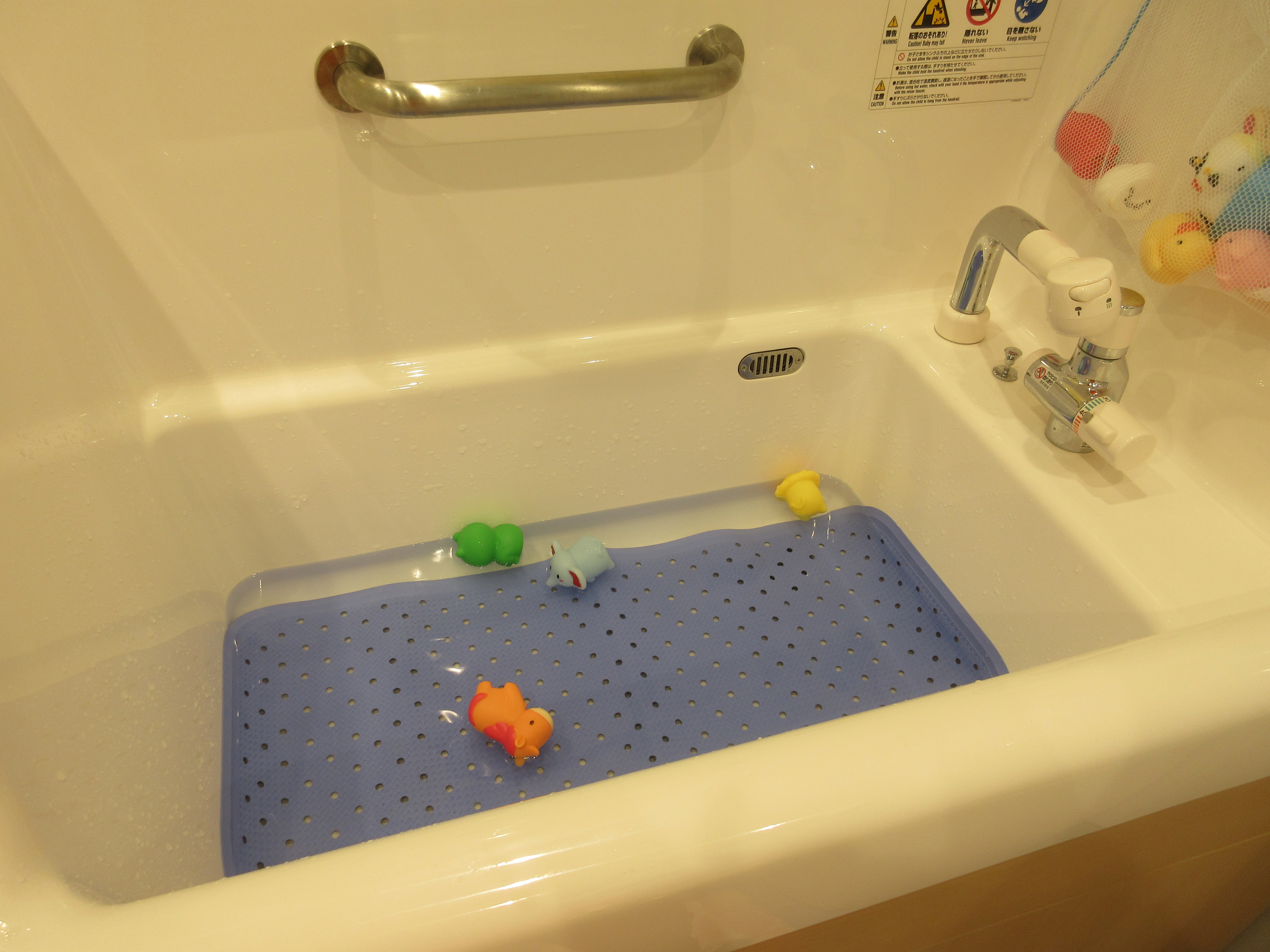 7月から沐浴が始まり、おもちゃも浮かべながら、ぱちゃぱちゃと水の感触を楽しんでいます![]()