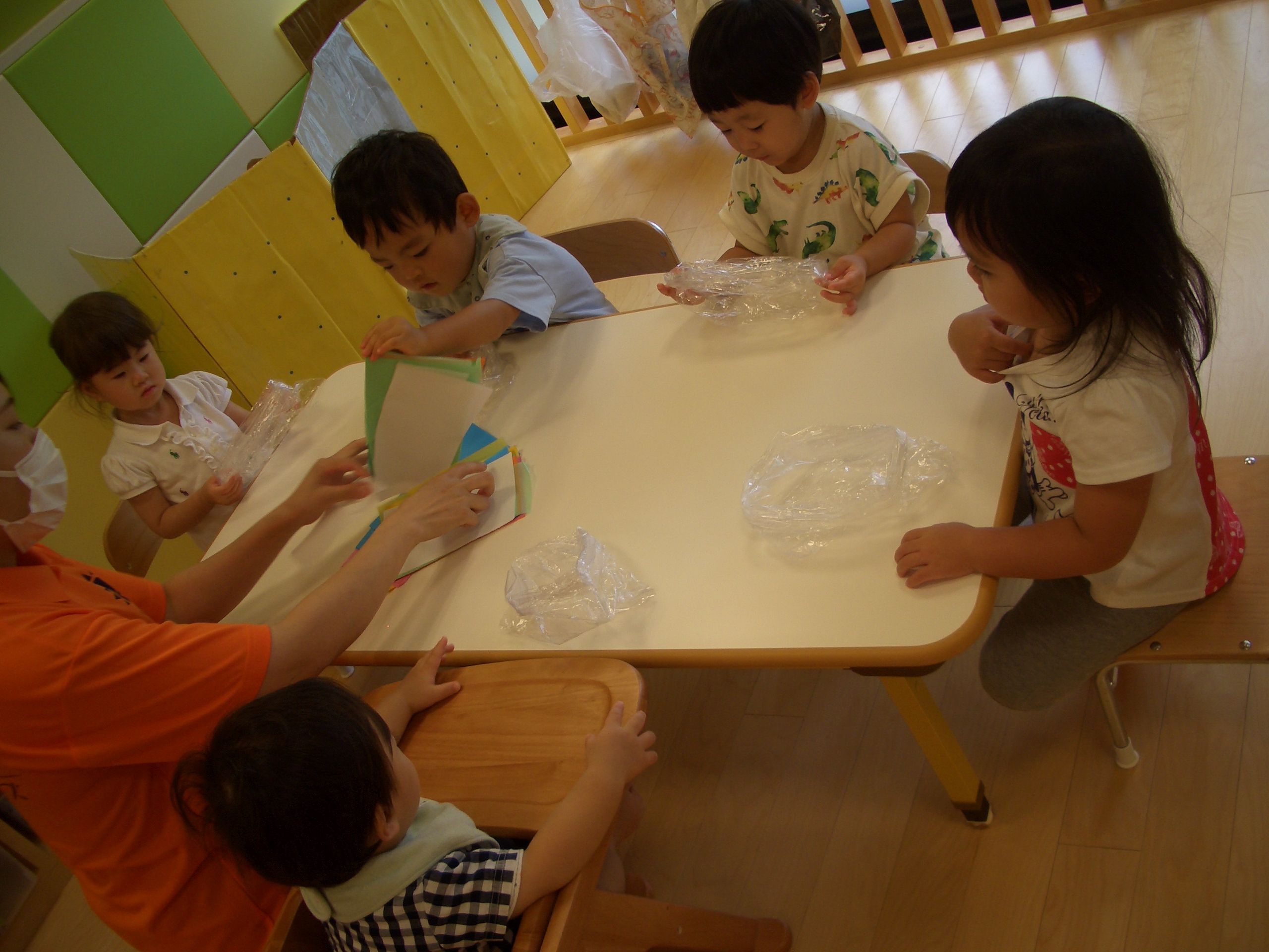 ⇧お花紙を配ると早速好きな色を手に取っている子もいましたよ![]()
