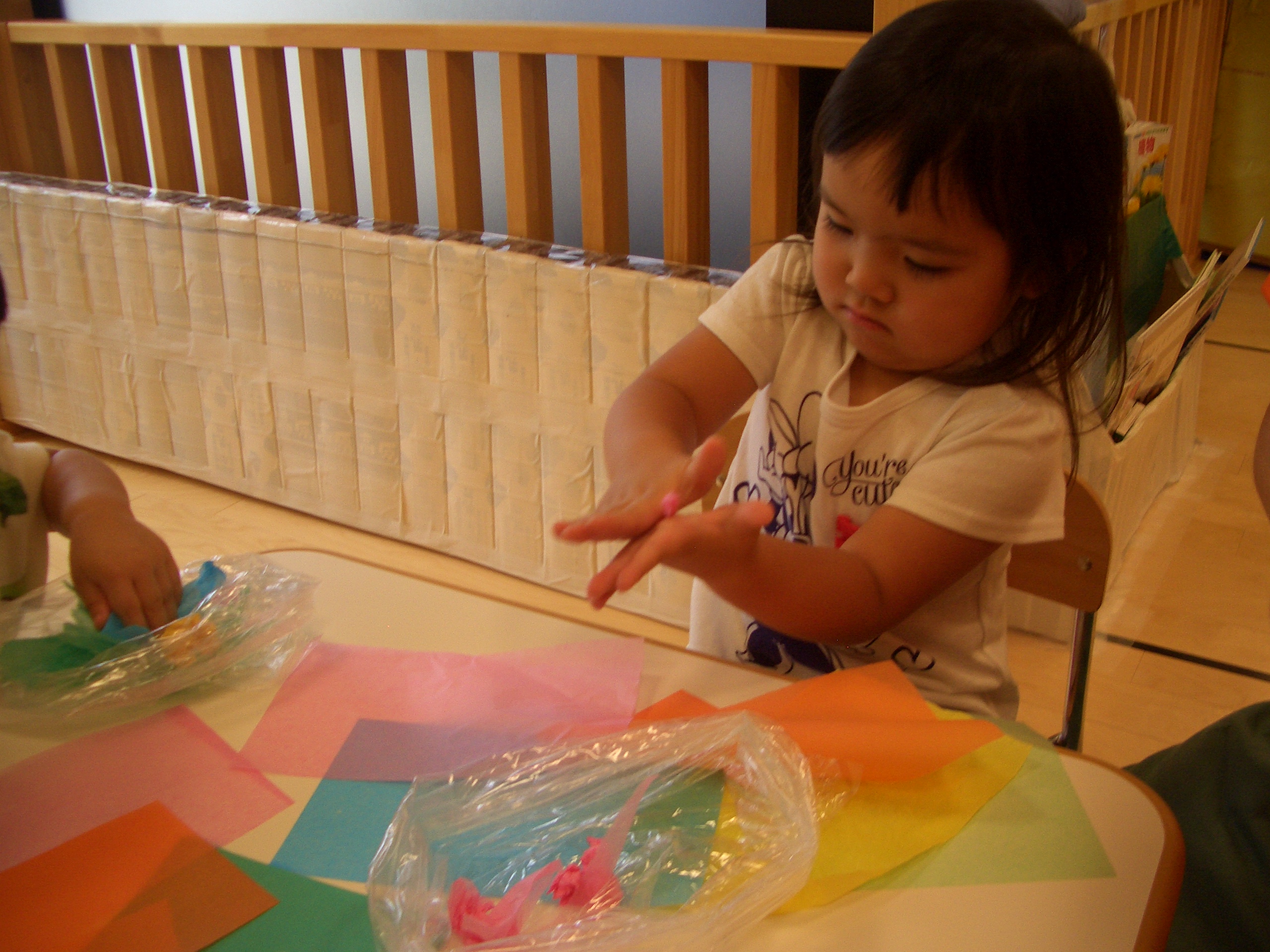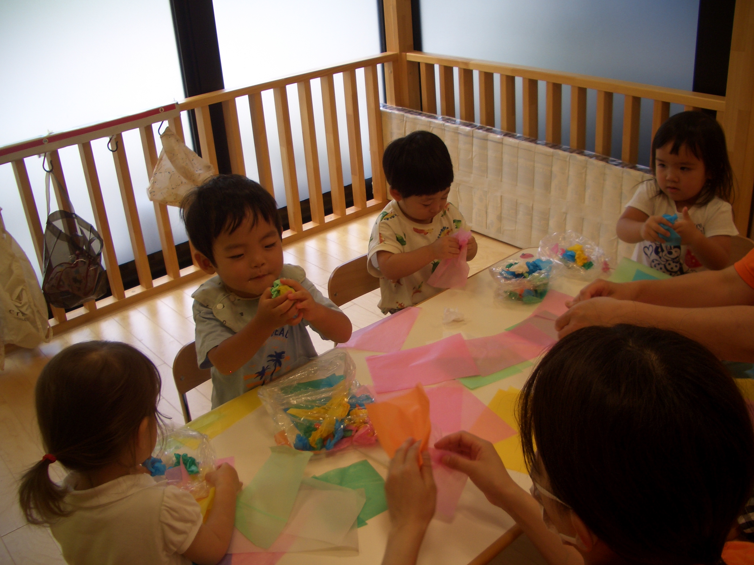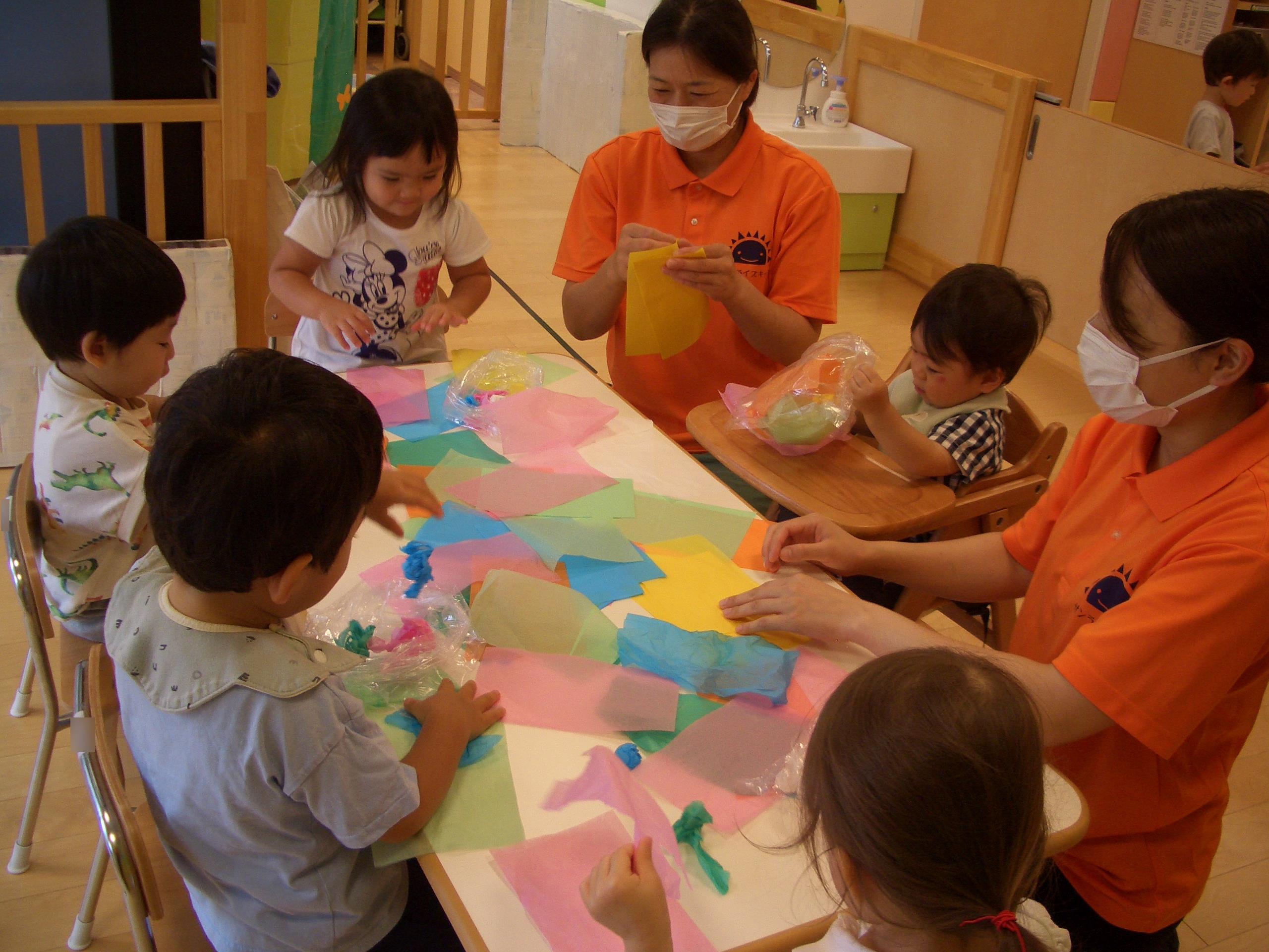お花紙の破れる感触がおもしろかったのか、ちぎるのを楽しむ子もいました![]()