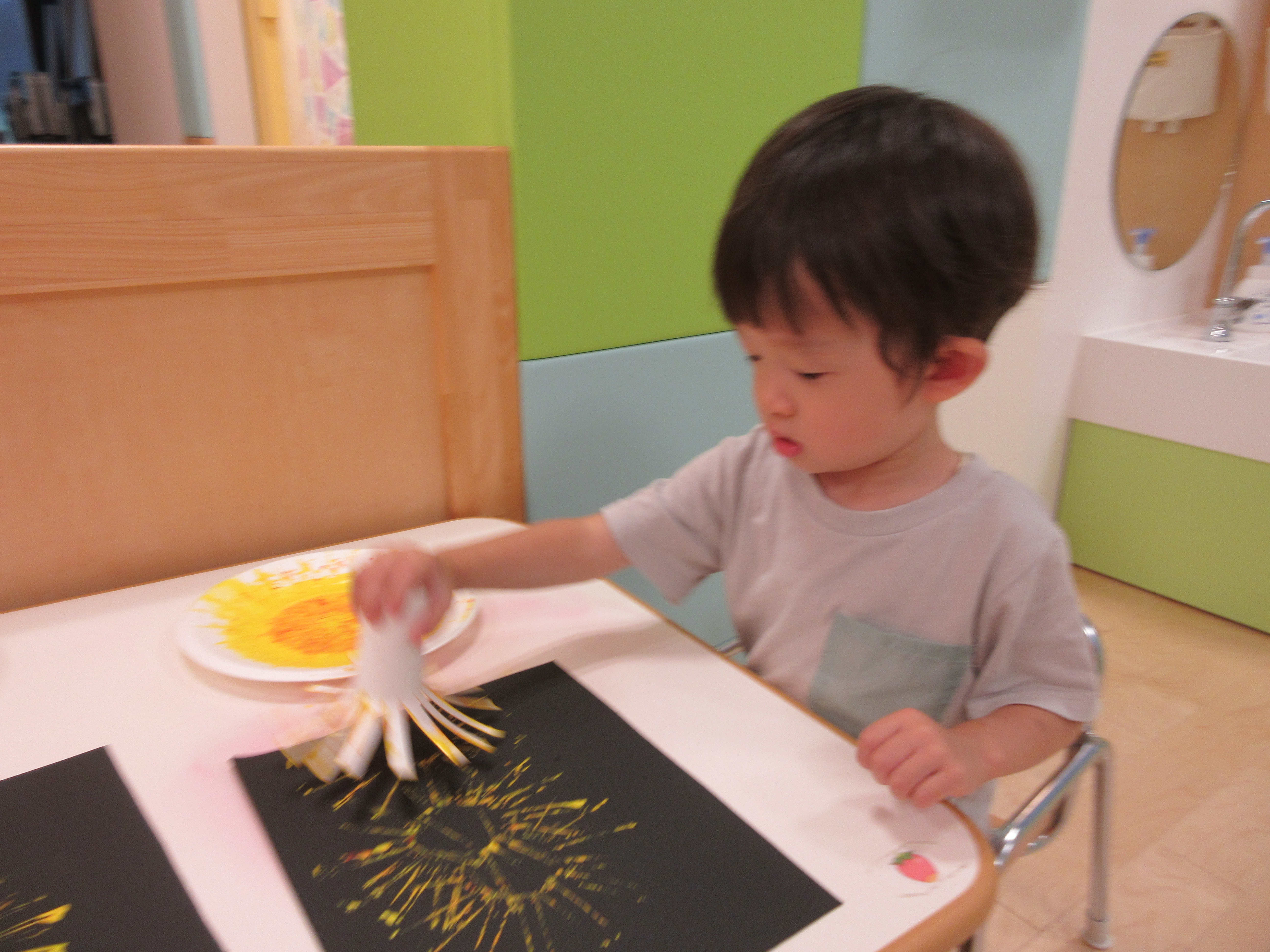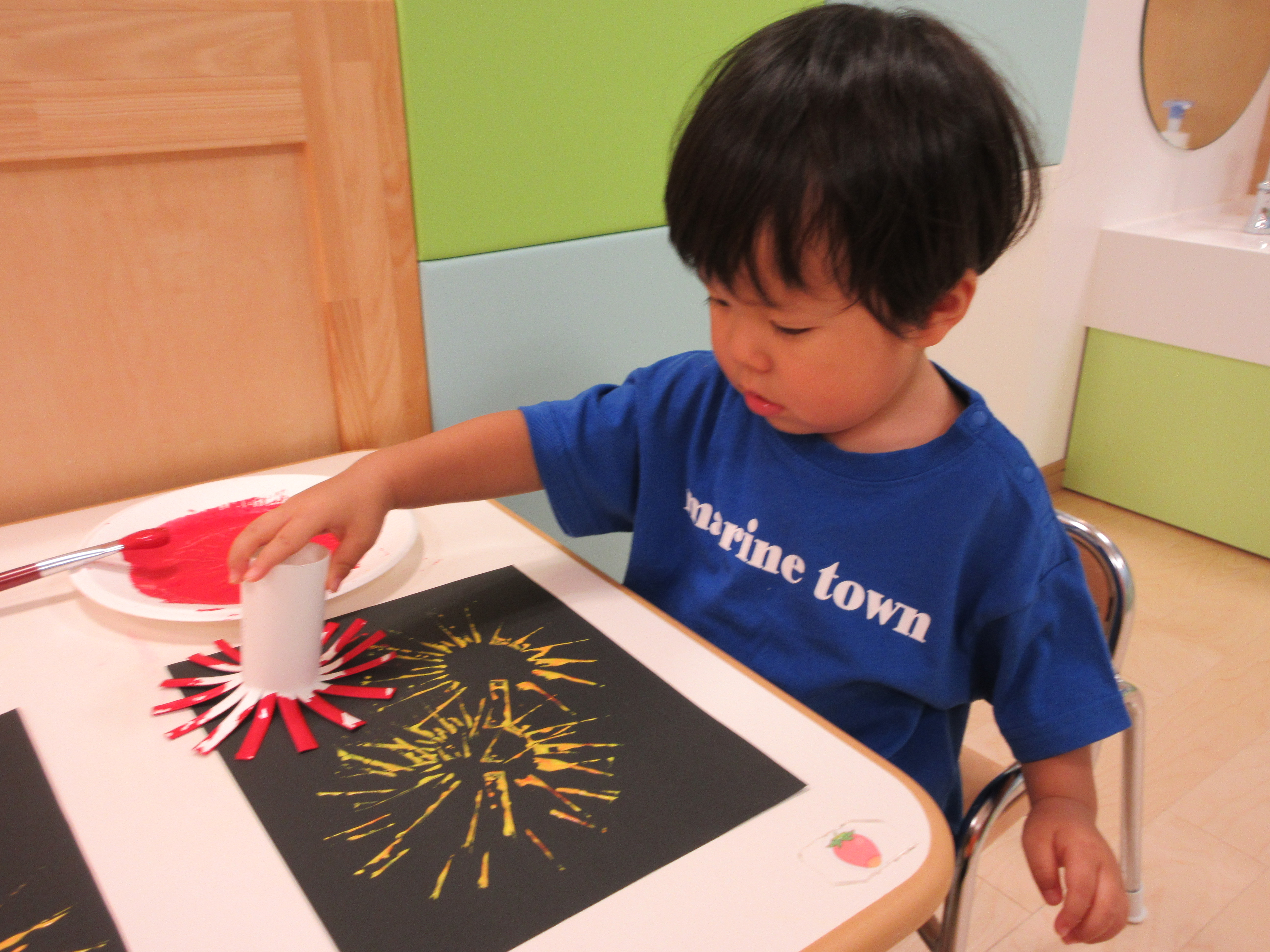 また、スタンプを押すと花火の形に色がつくのがとても楽しかったようです![]()