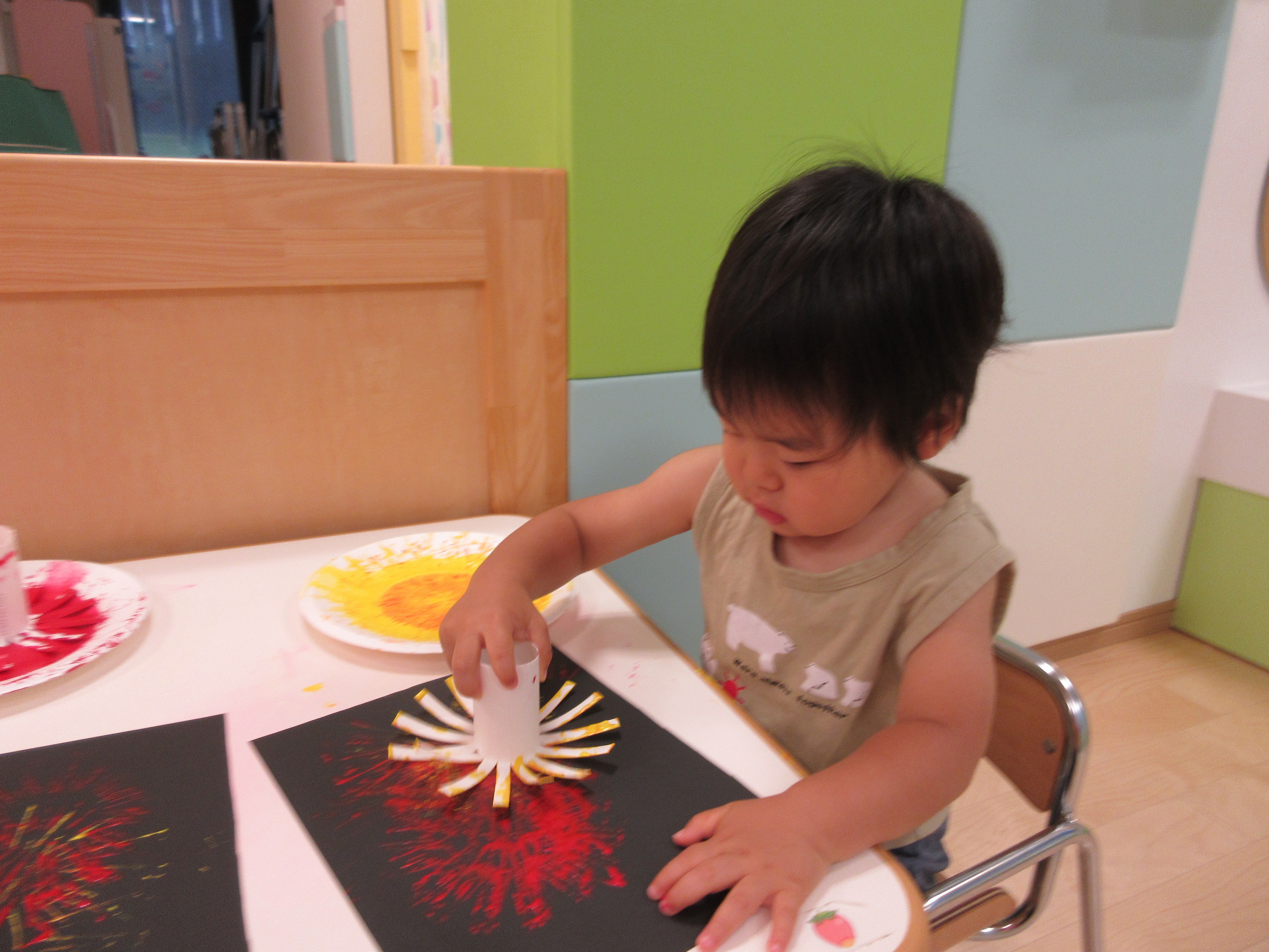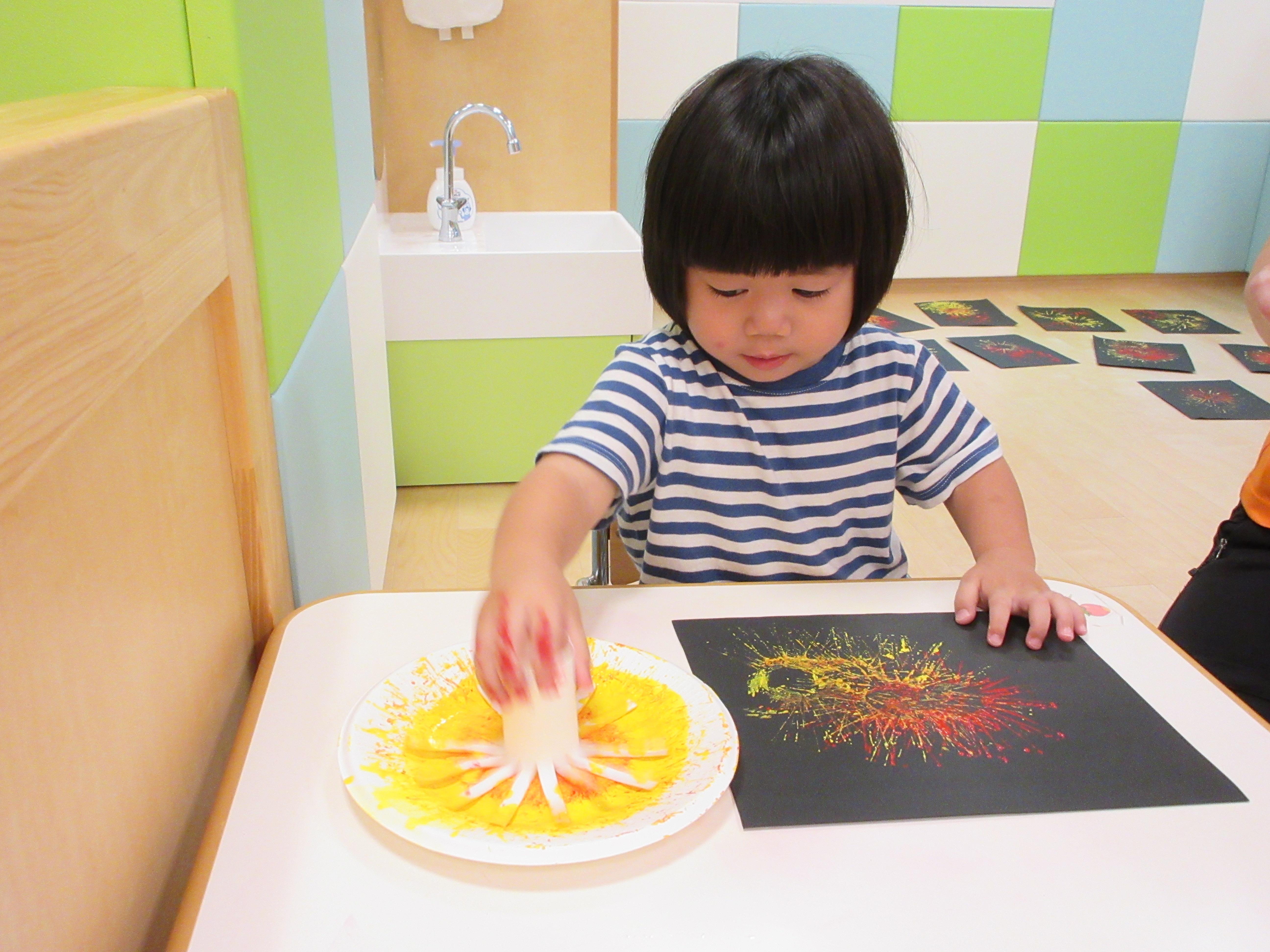 今週は夏祭り用の製作で花火のスタンプを行いました。