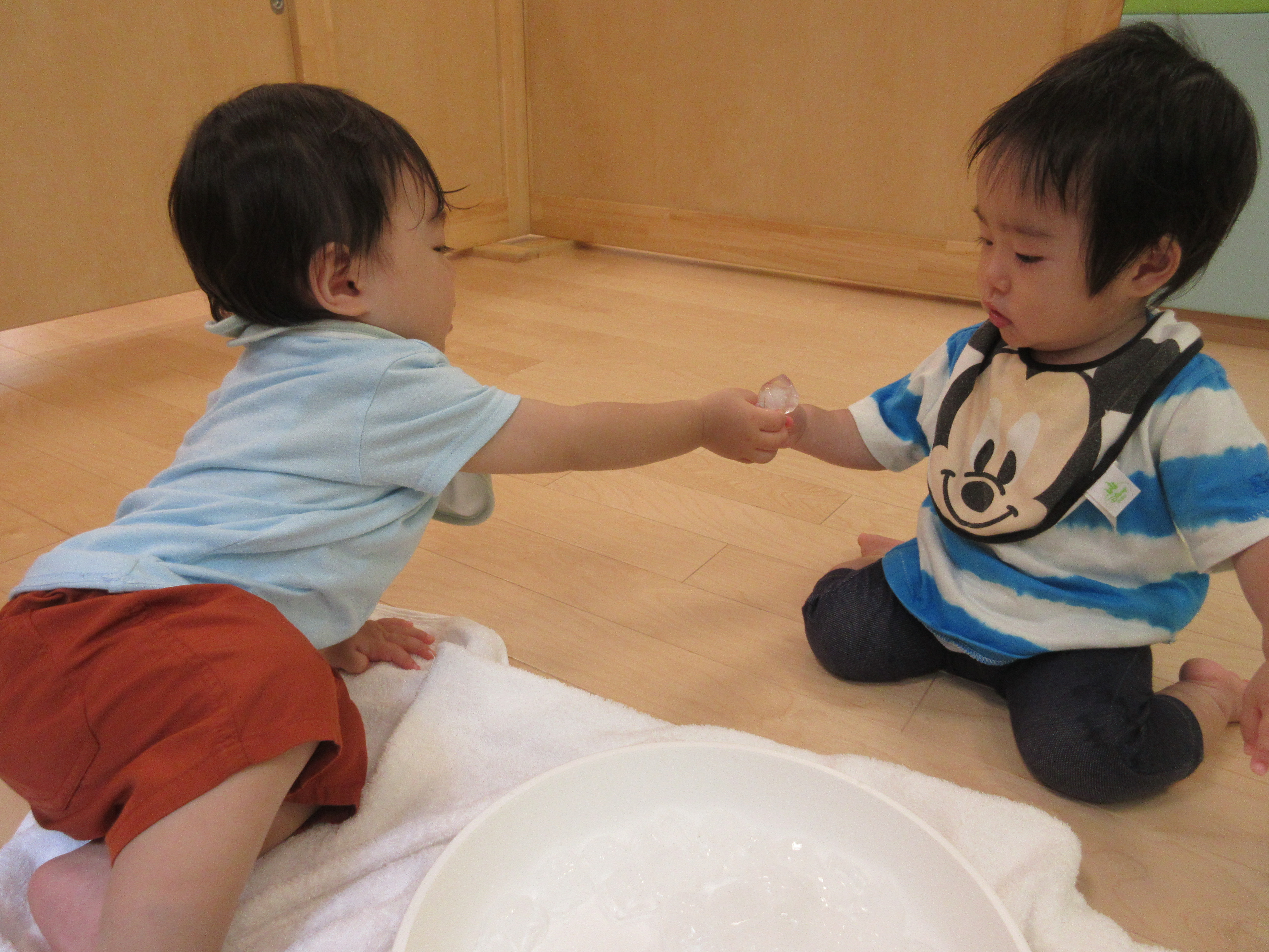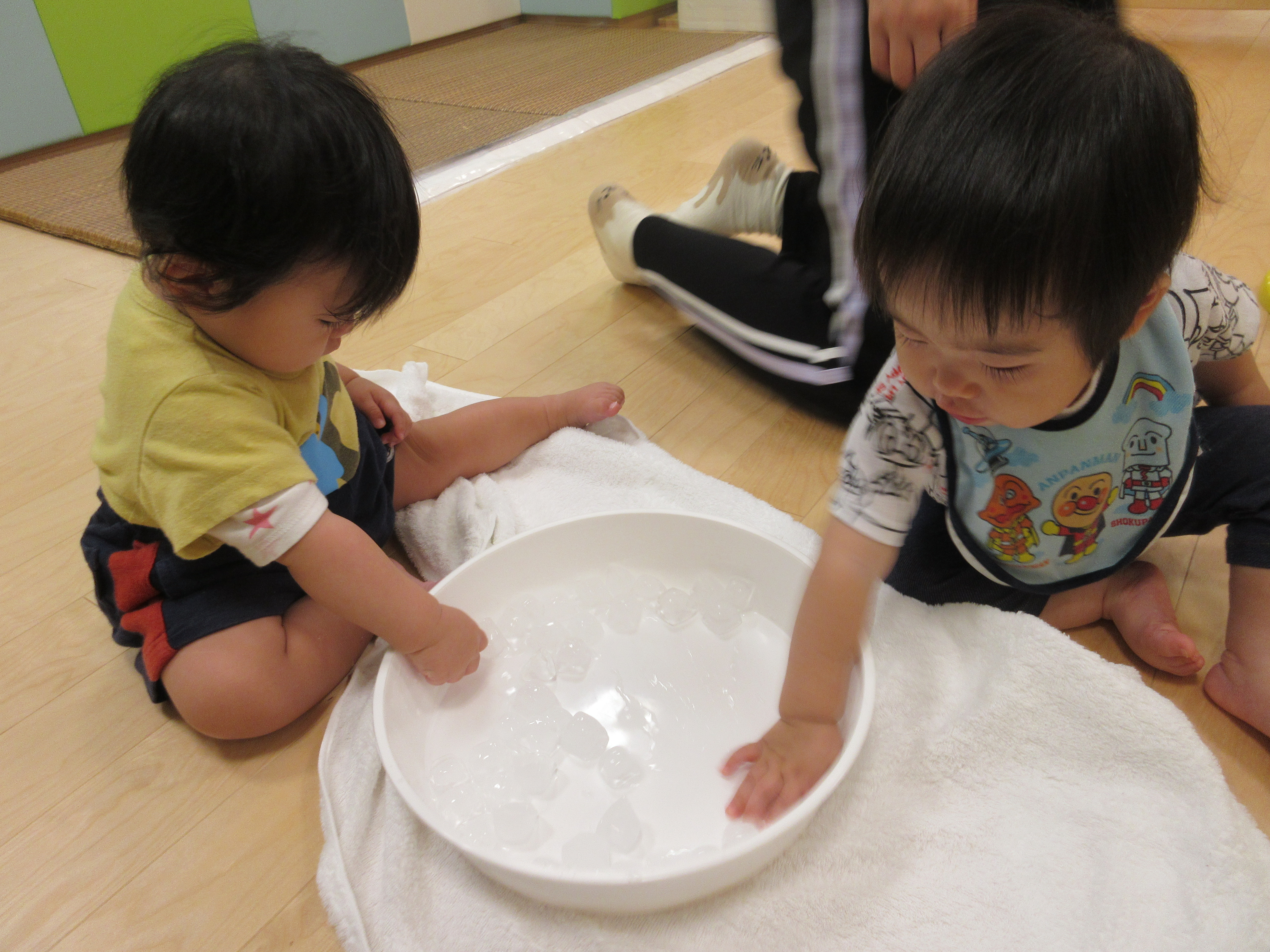 製作もそうですが、氷にとても興味を持っていた子どもたち。氷遊びを今週は2回も楽しみました。