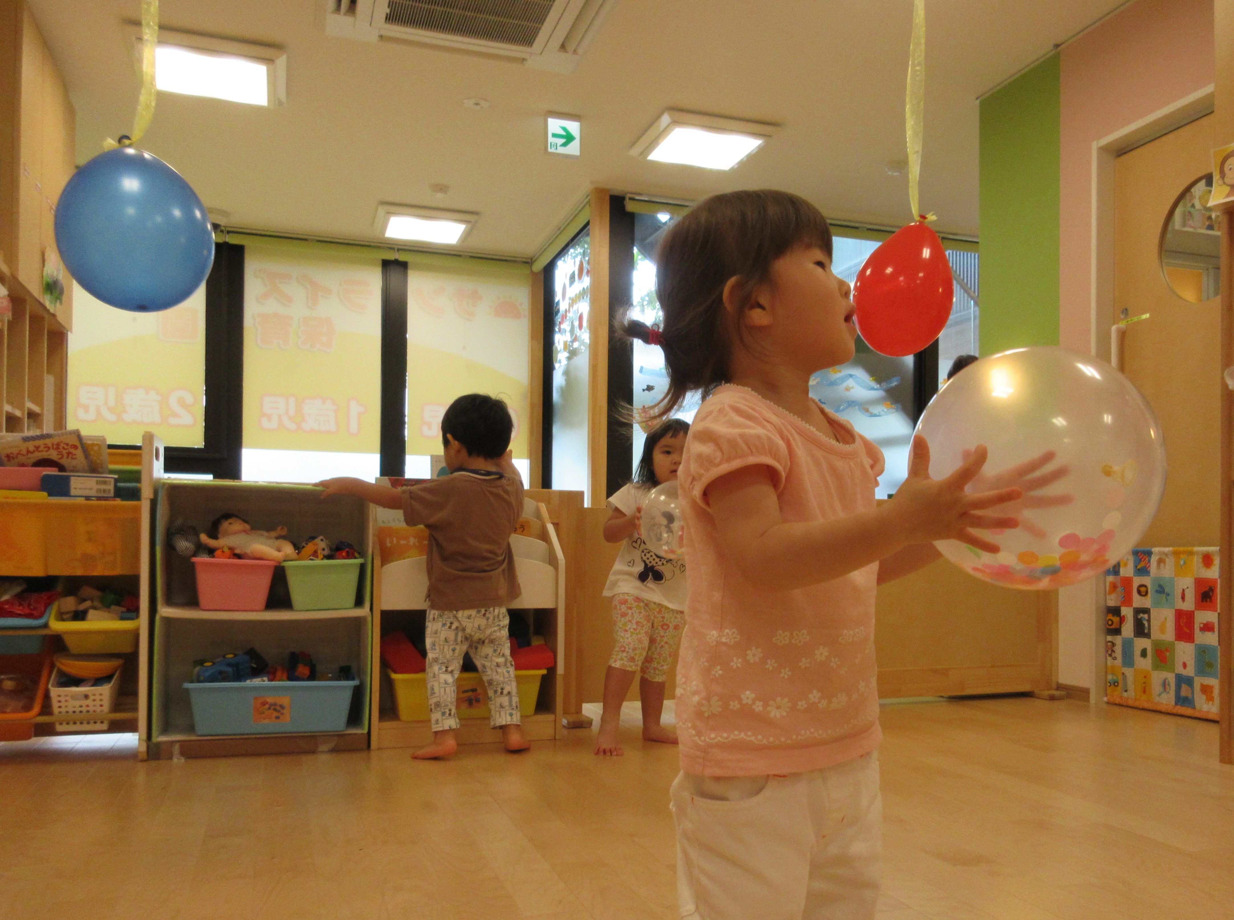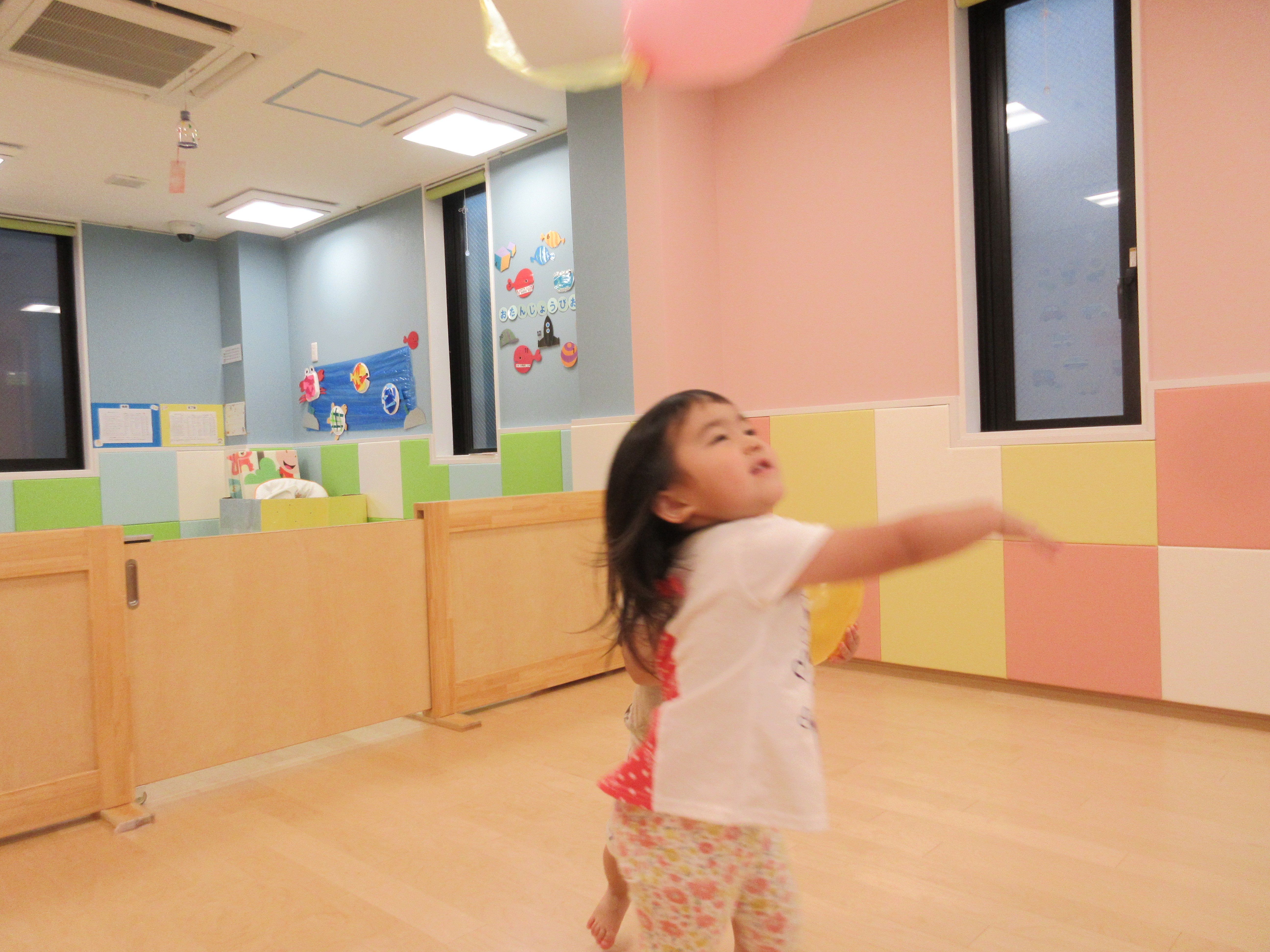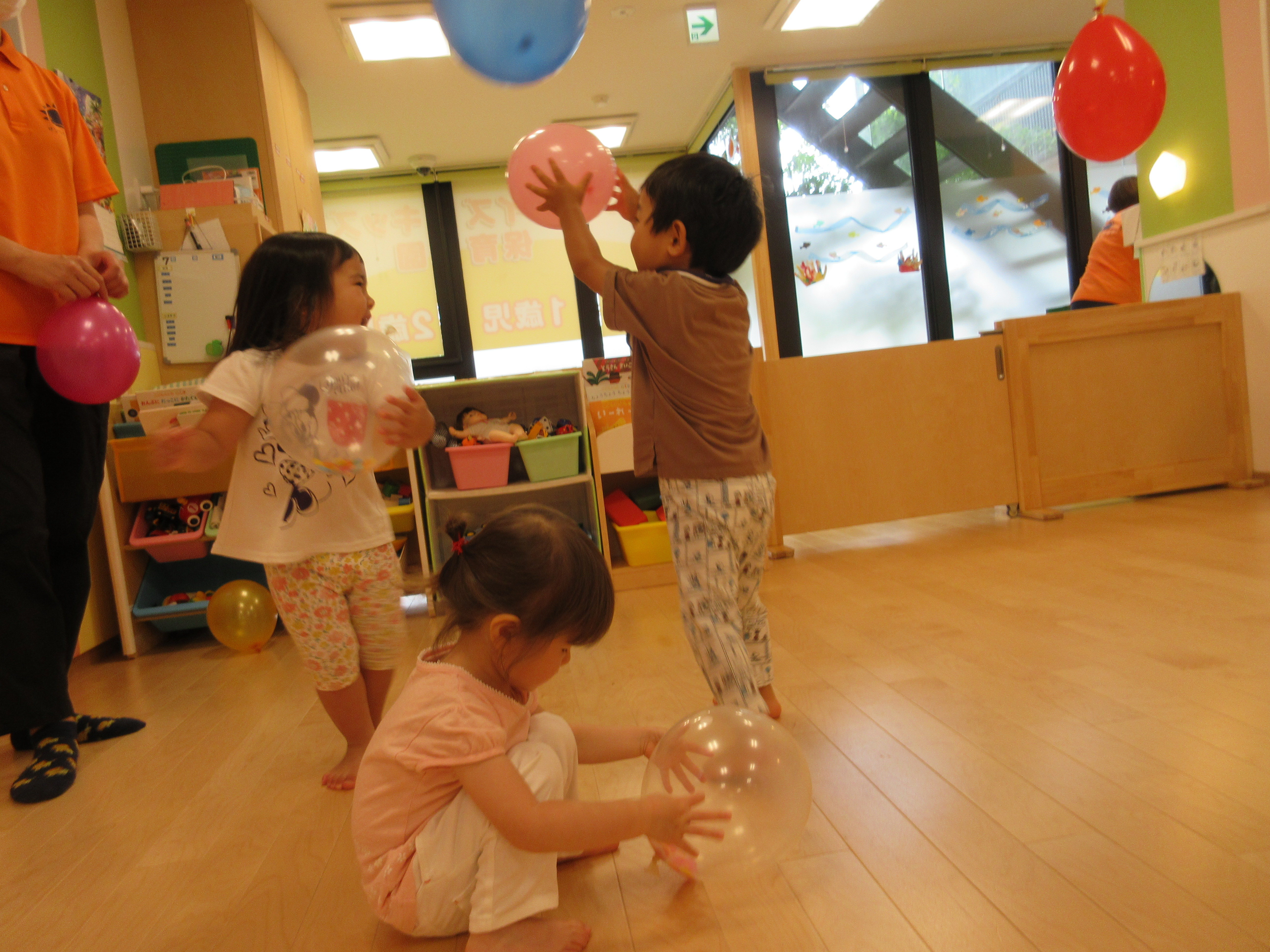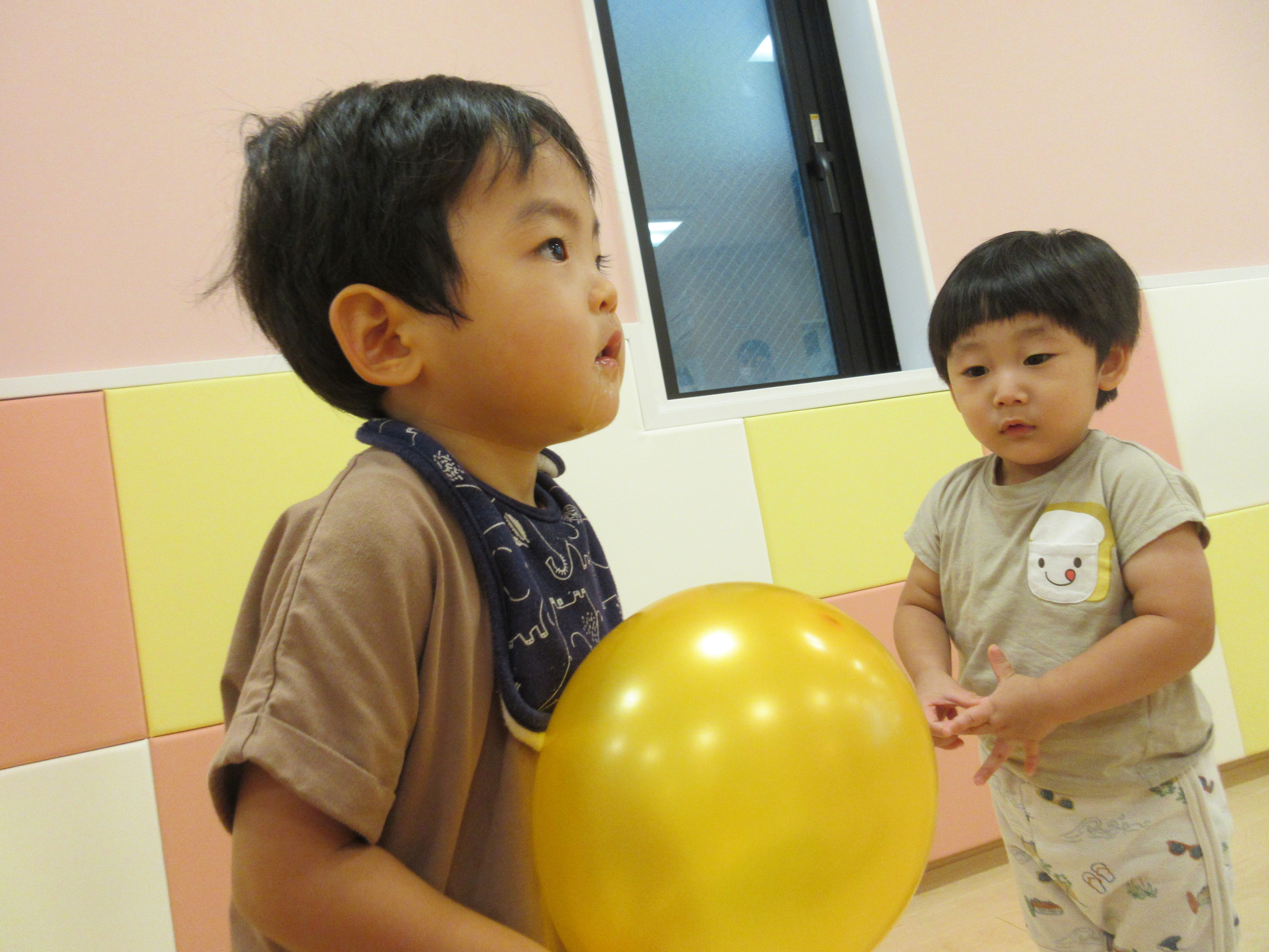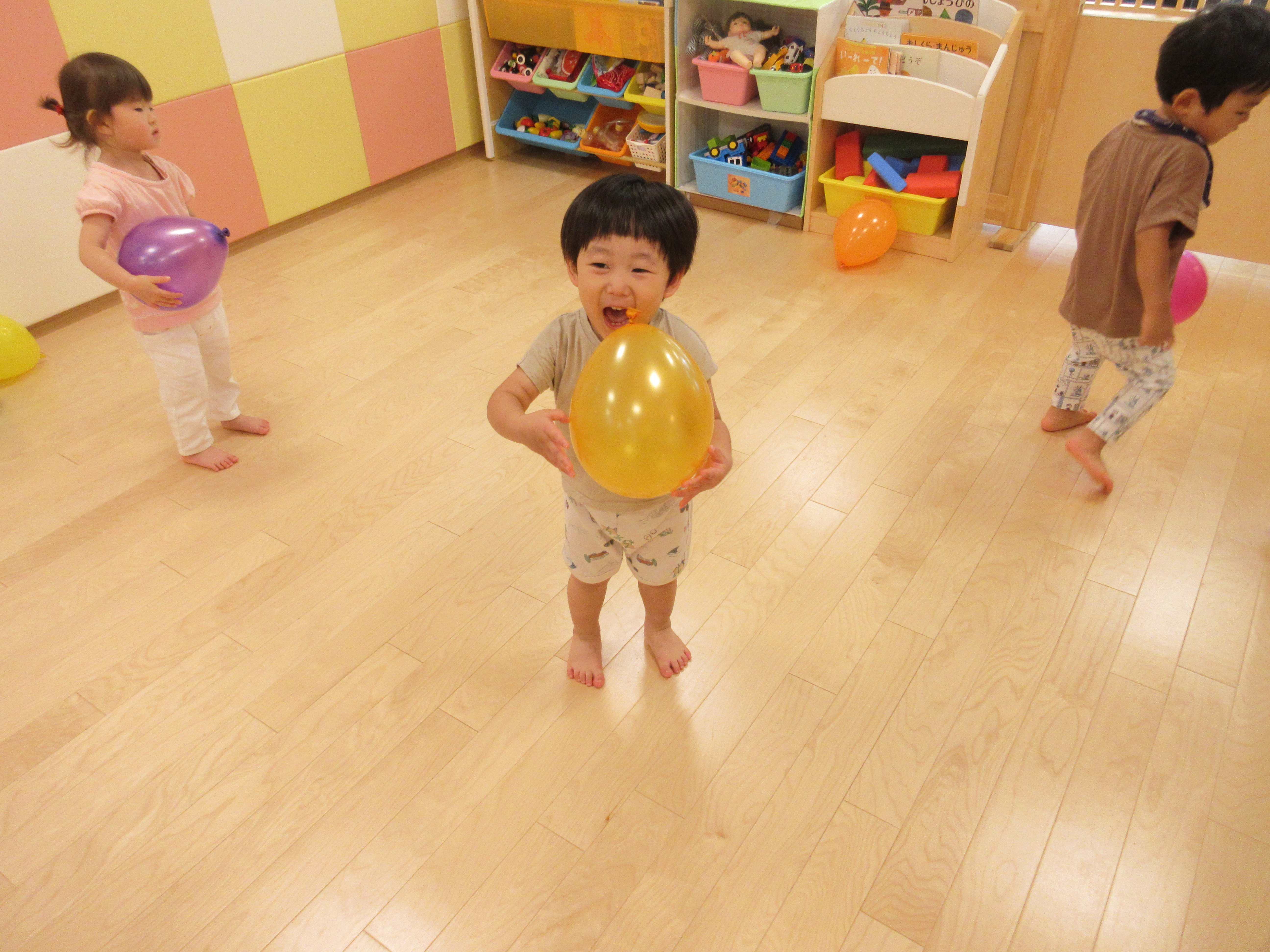 暑さでなかなか外に行けず、身体を思う存分動かせない日が続いていたので、水曜日に風船遊びをしました![]()
