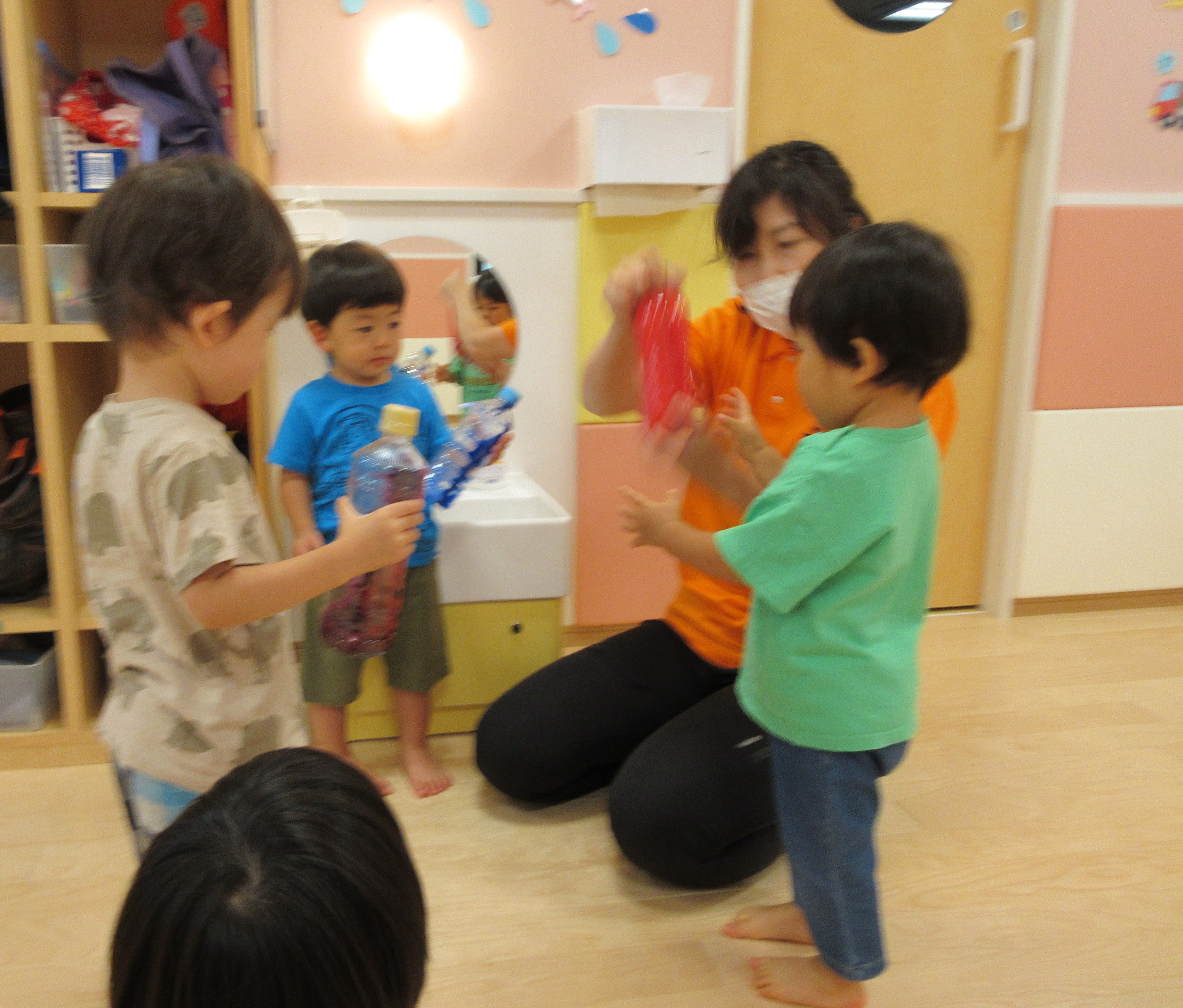 色水がきれいで、眺めたり、嬉しくて大事に抱えている子もいましたよ![]()