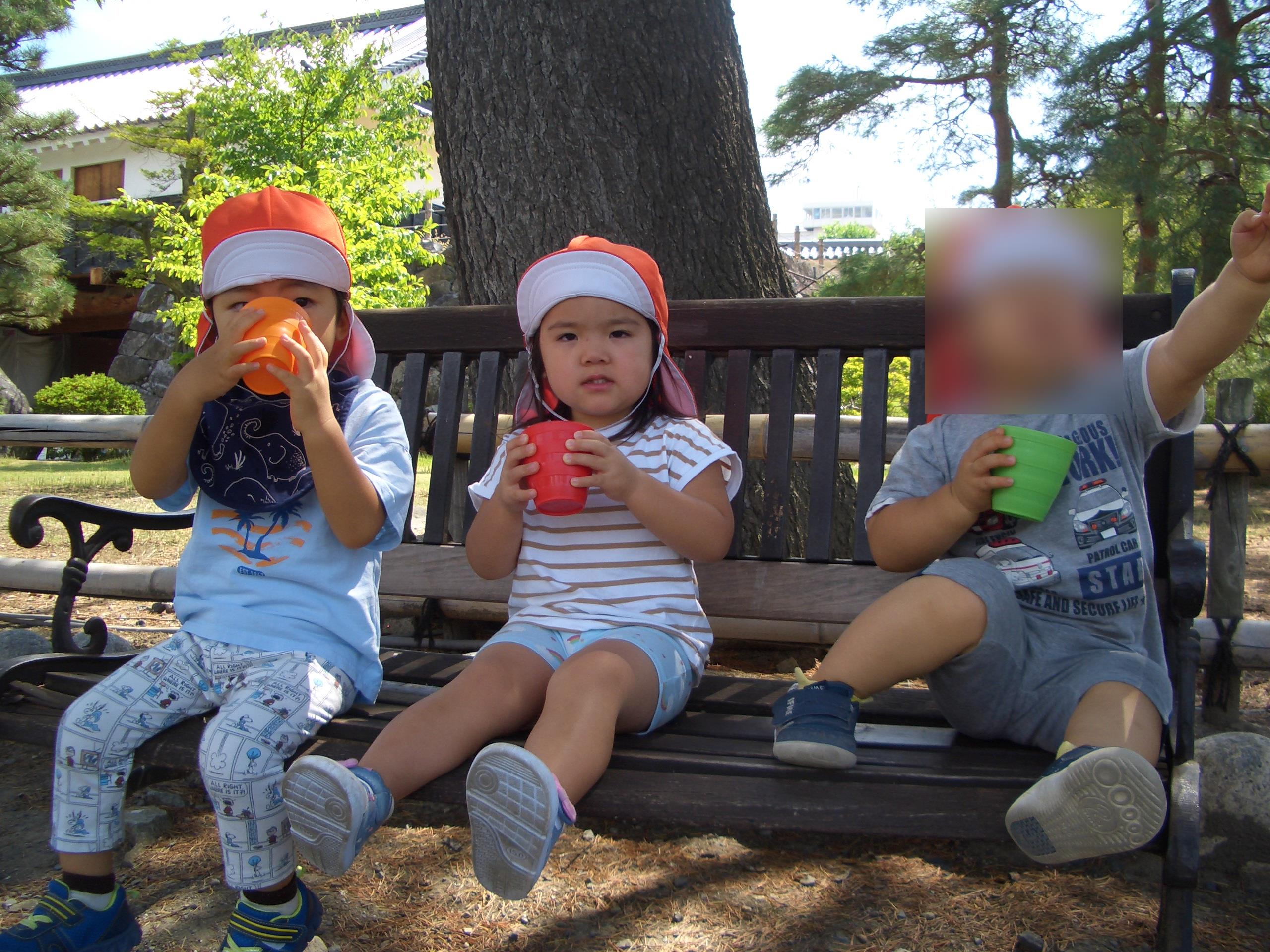 その後はベンチに座り、お茶を飲んで少し休憩をしました。