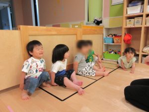 ↑ 動物の子どもたちの鳴き声が面白かったようで、にこにこです