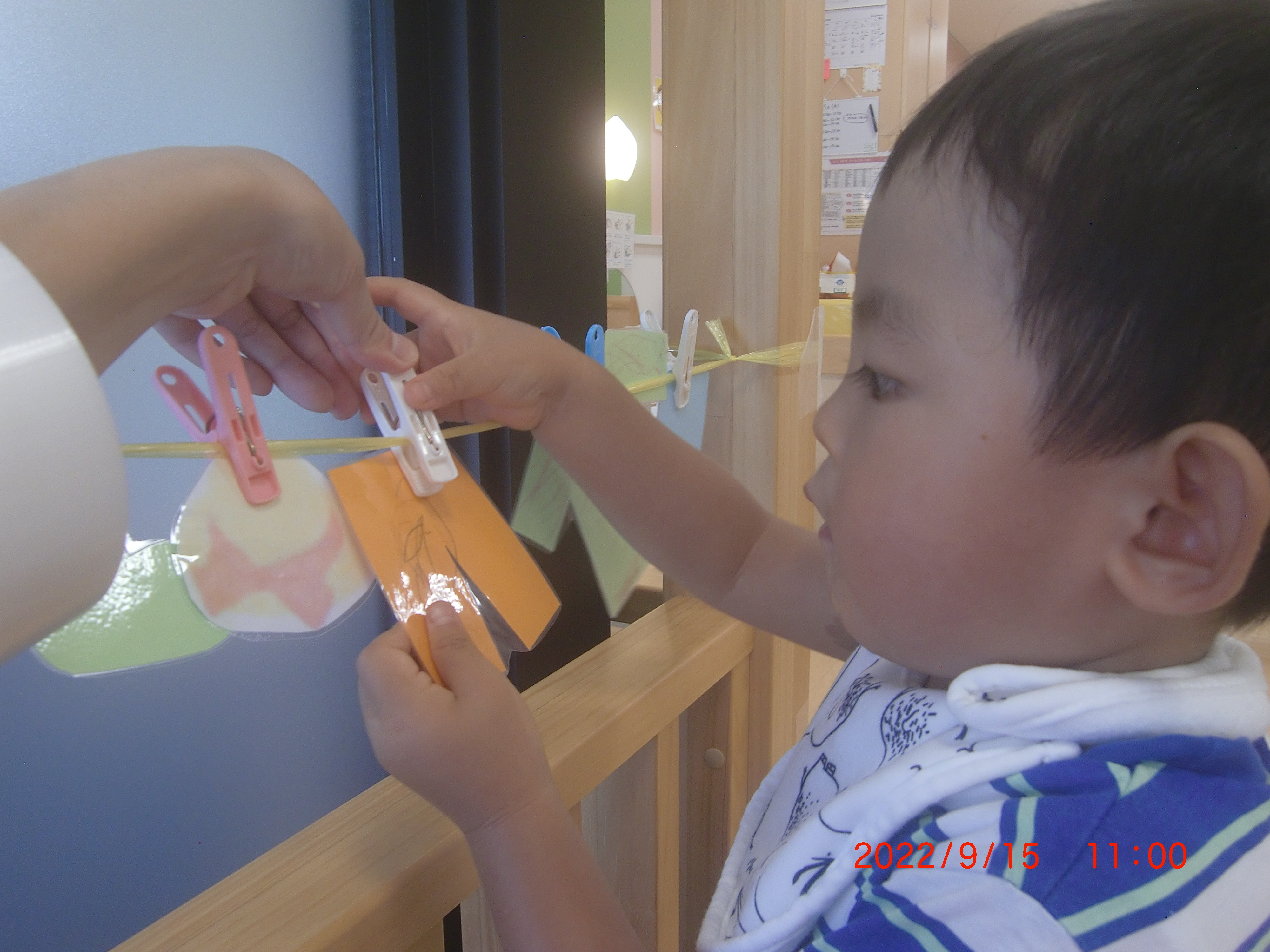 今週は指先を使った遊びをできるように洗濯物のおもちゃを子どもたちと一緒に作りました![]()