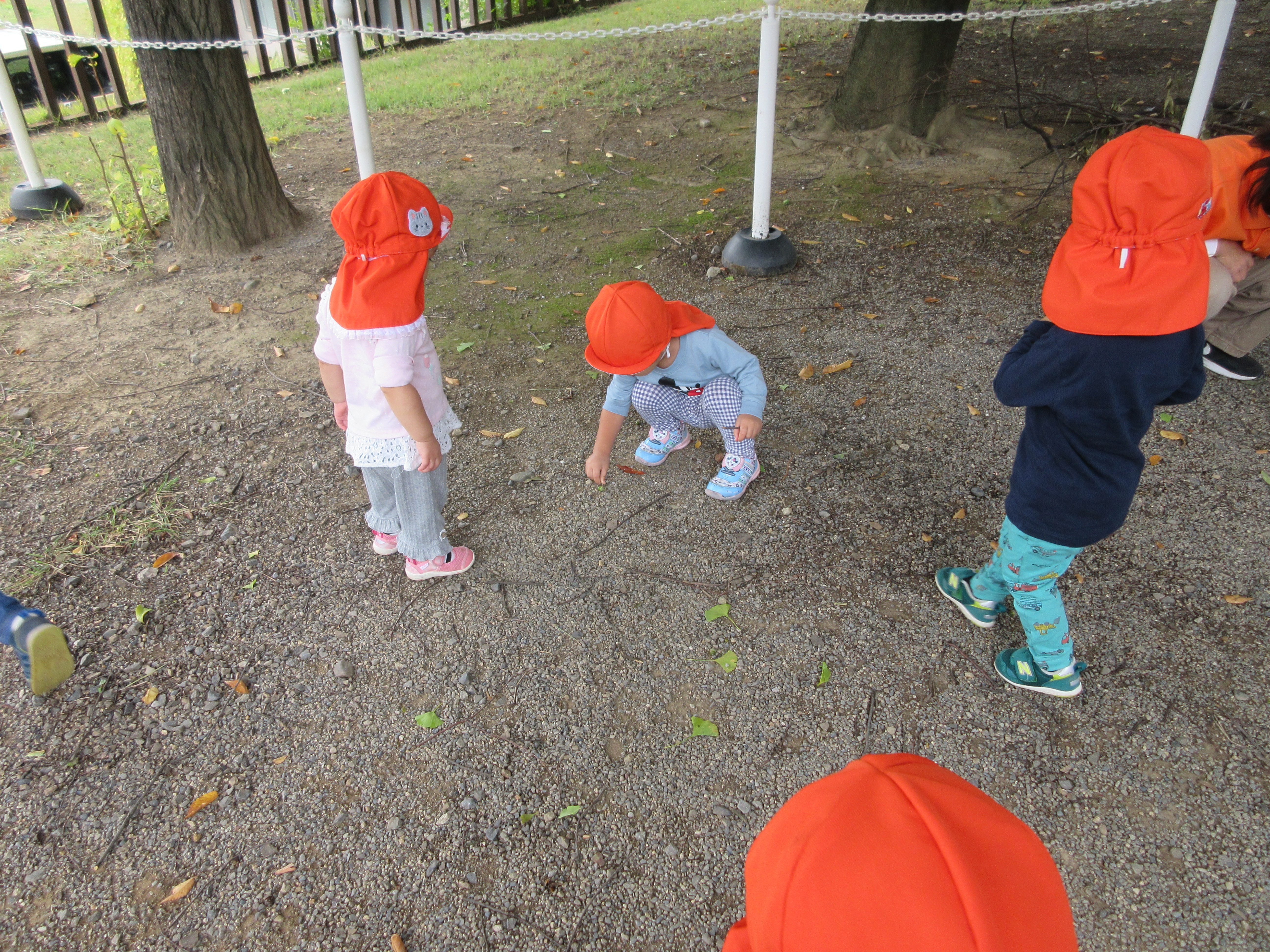 様々な色や形の落ち葉が落ちているので、子どもたちもどれにしようかなと選んでいる姿がありました。