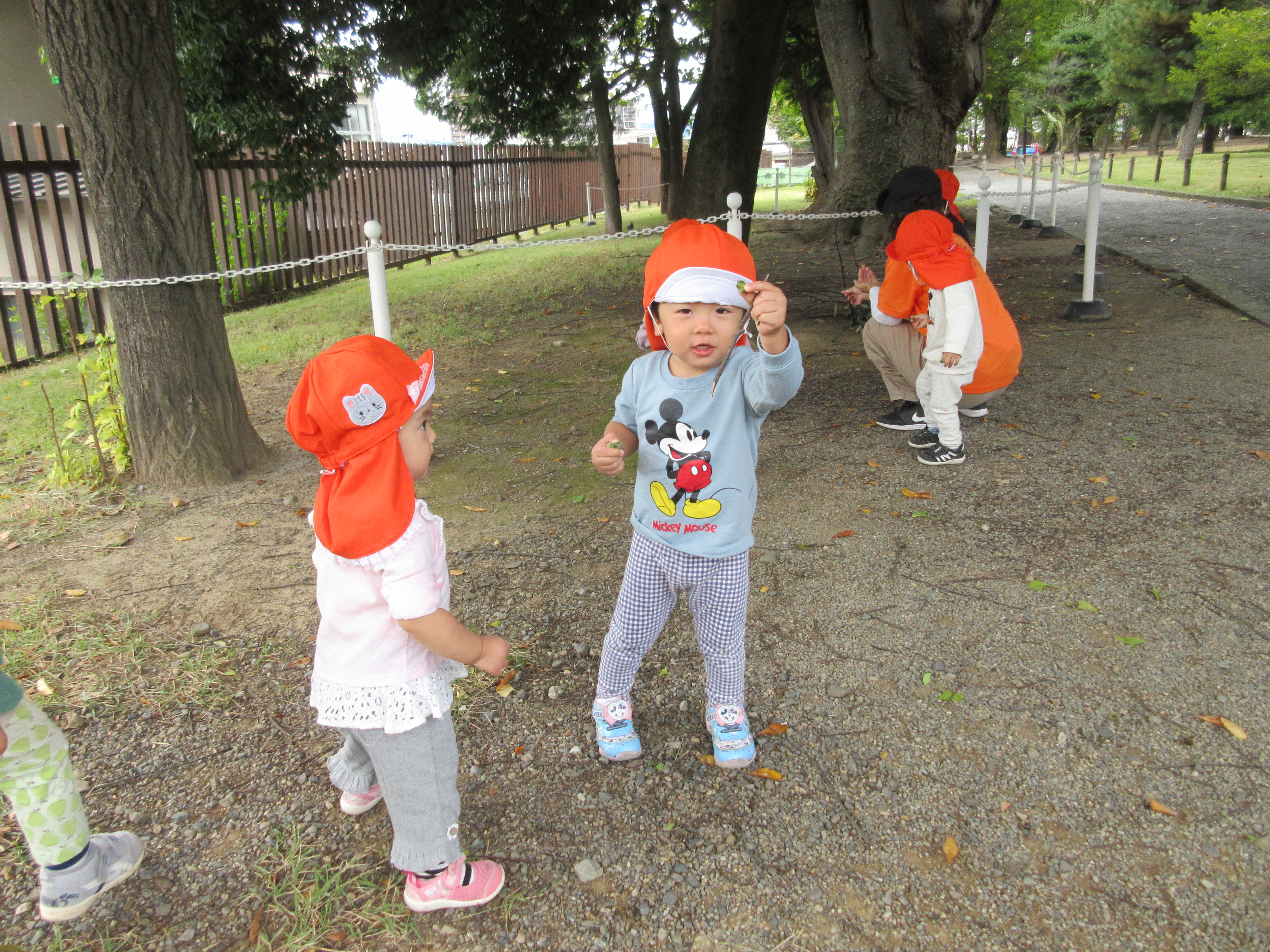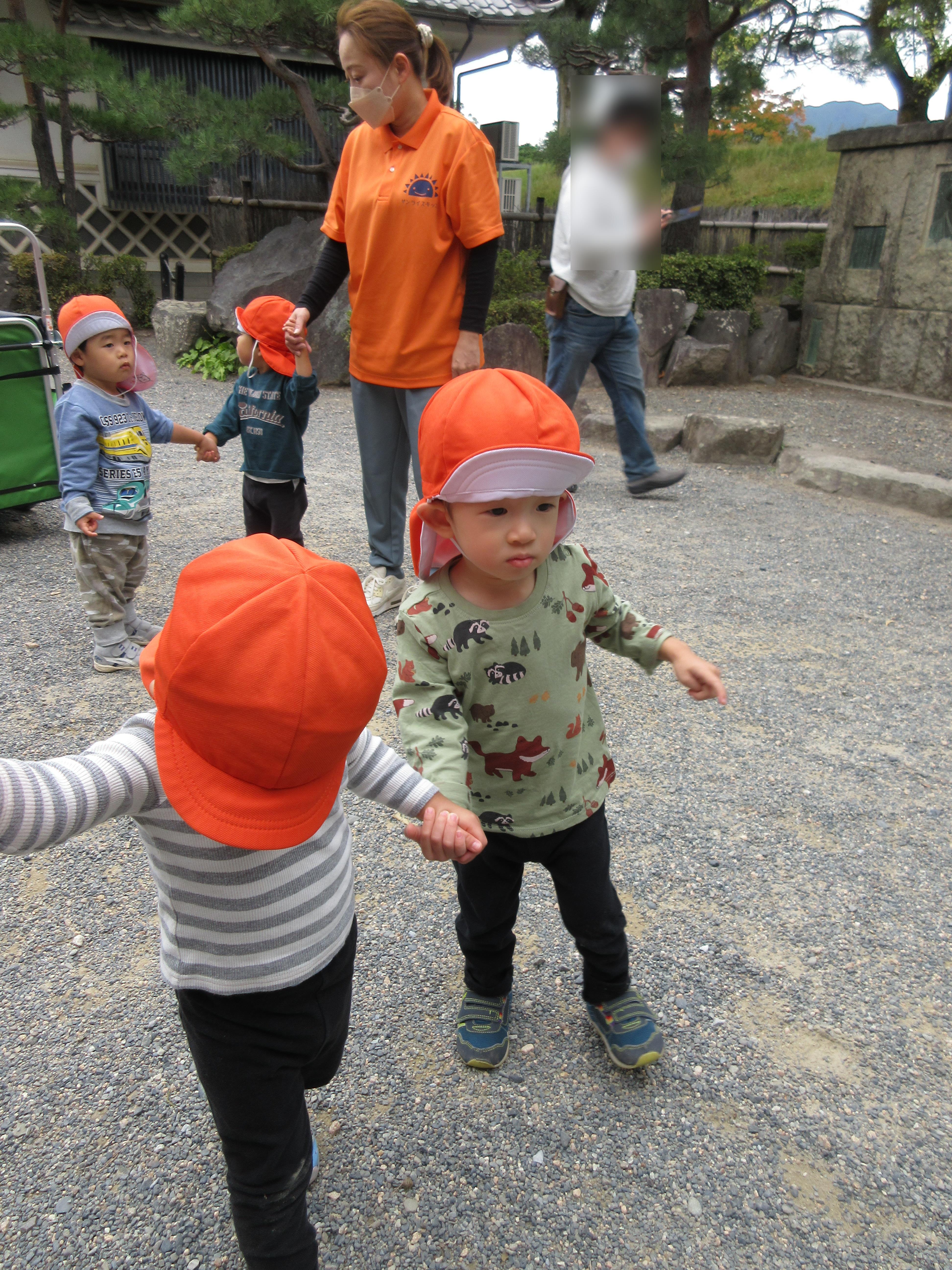 最近は月齢の高い子どもたちは、お友だちと手をつないで歩くのがとっても上手です![]()
