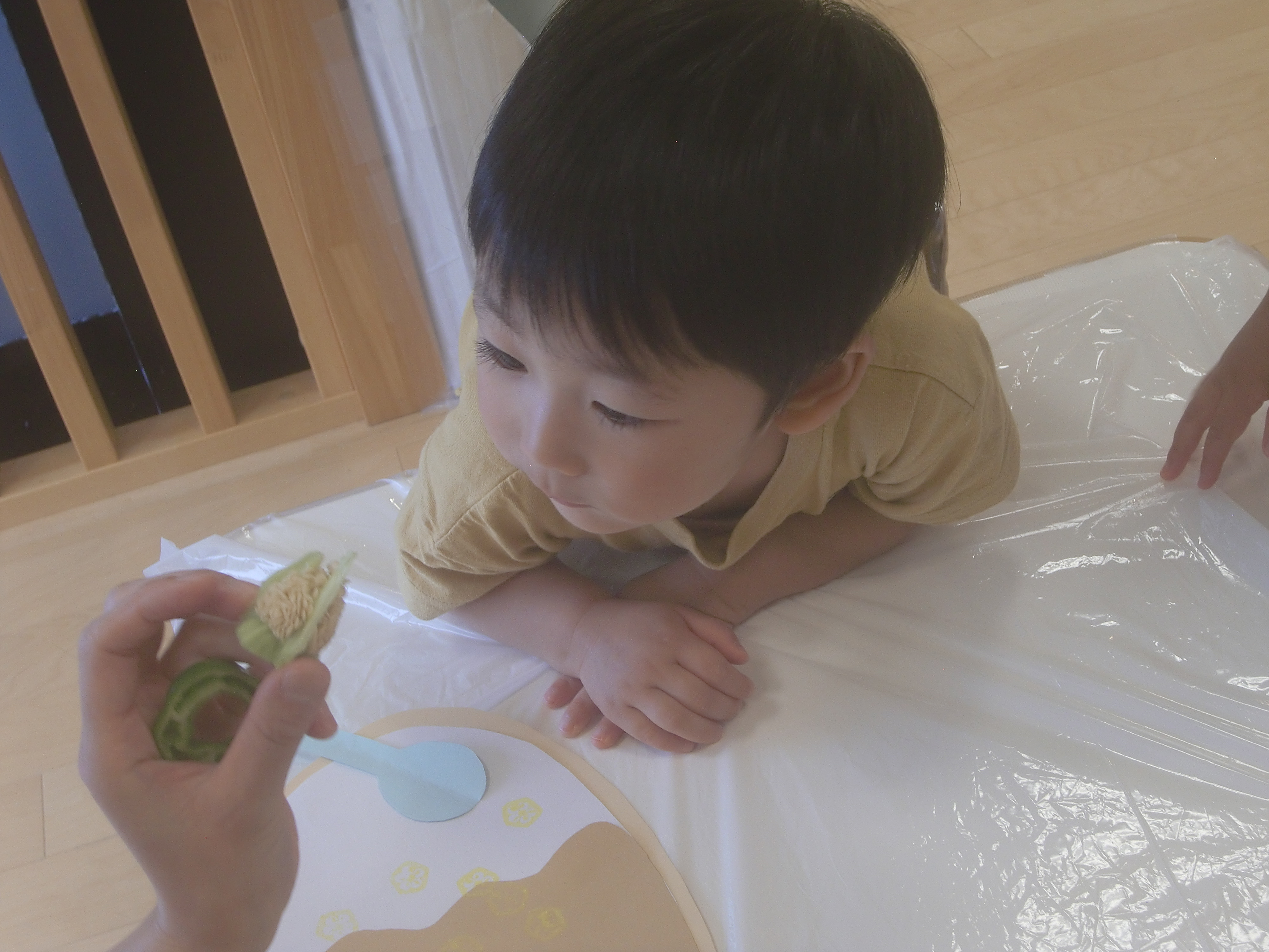 ⇧力強く絵の具をつけて、スタンプをしている子もいましたよ。