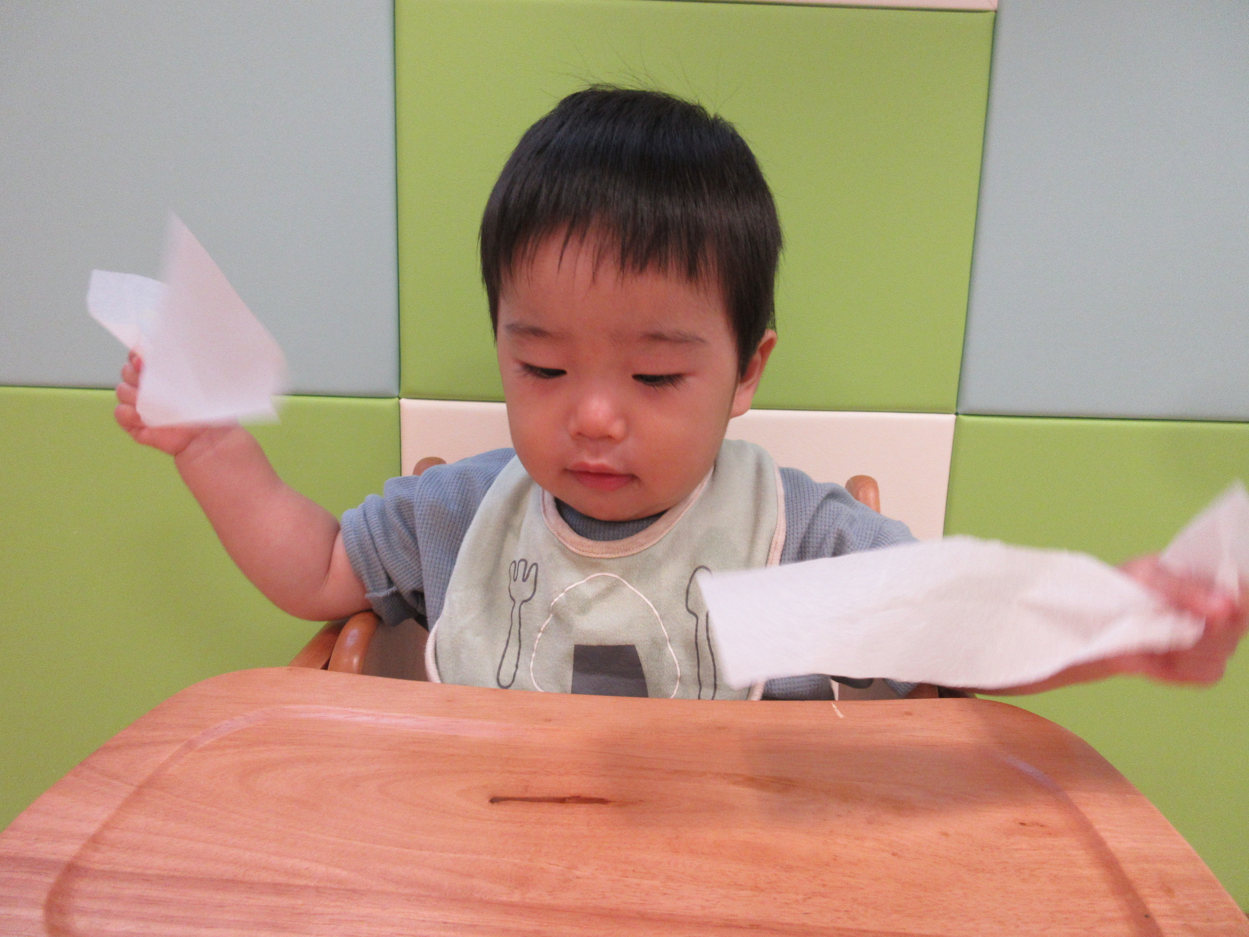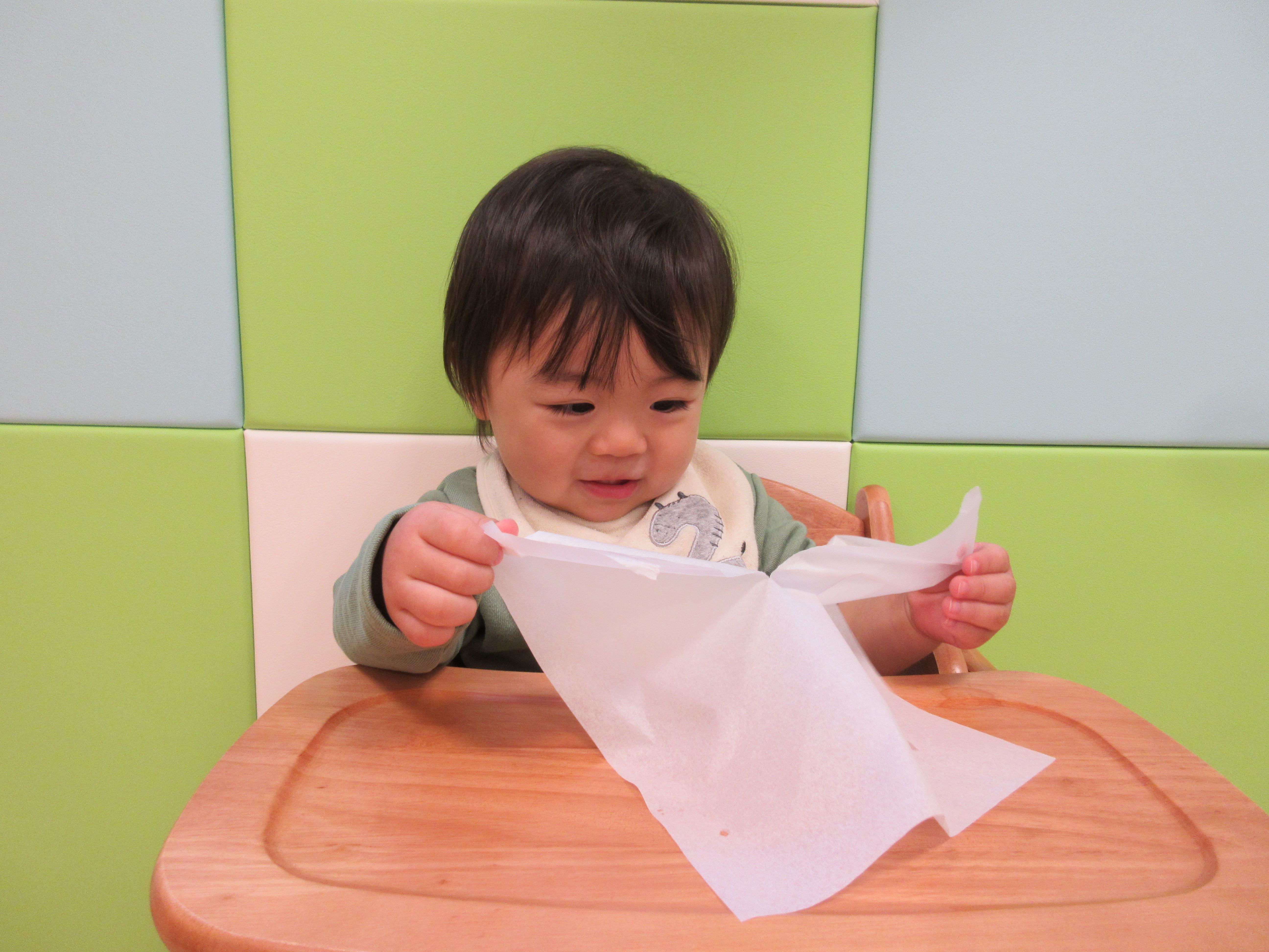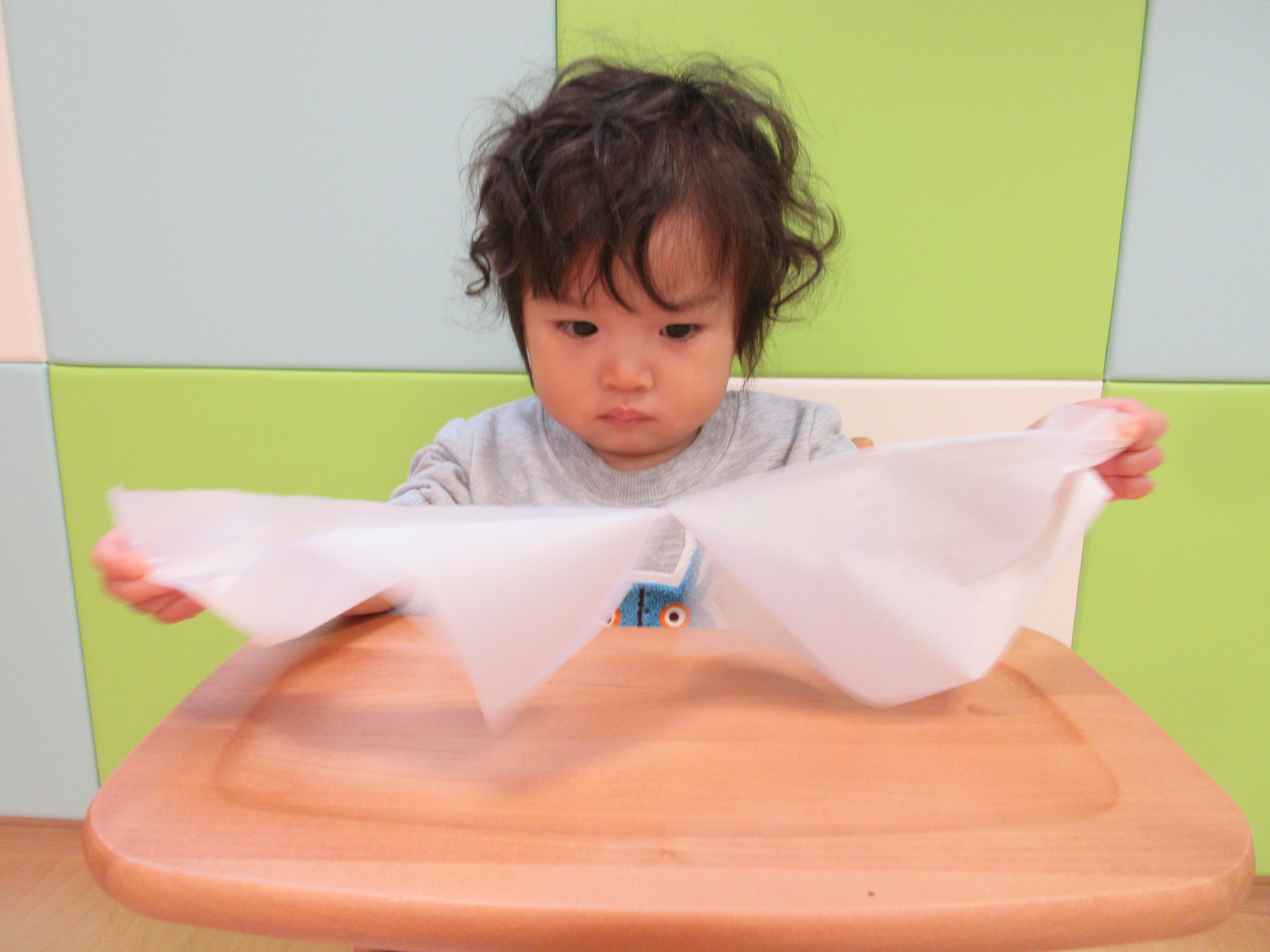 お花紙を渡すと上手にビリビリと破いていた子どもたち![]()