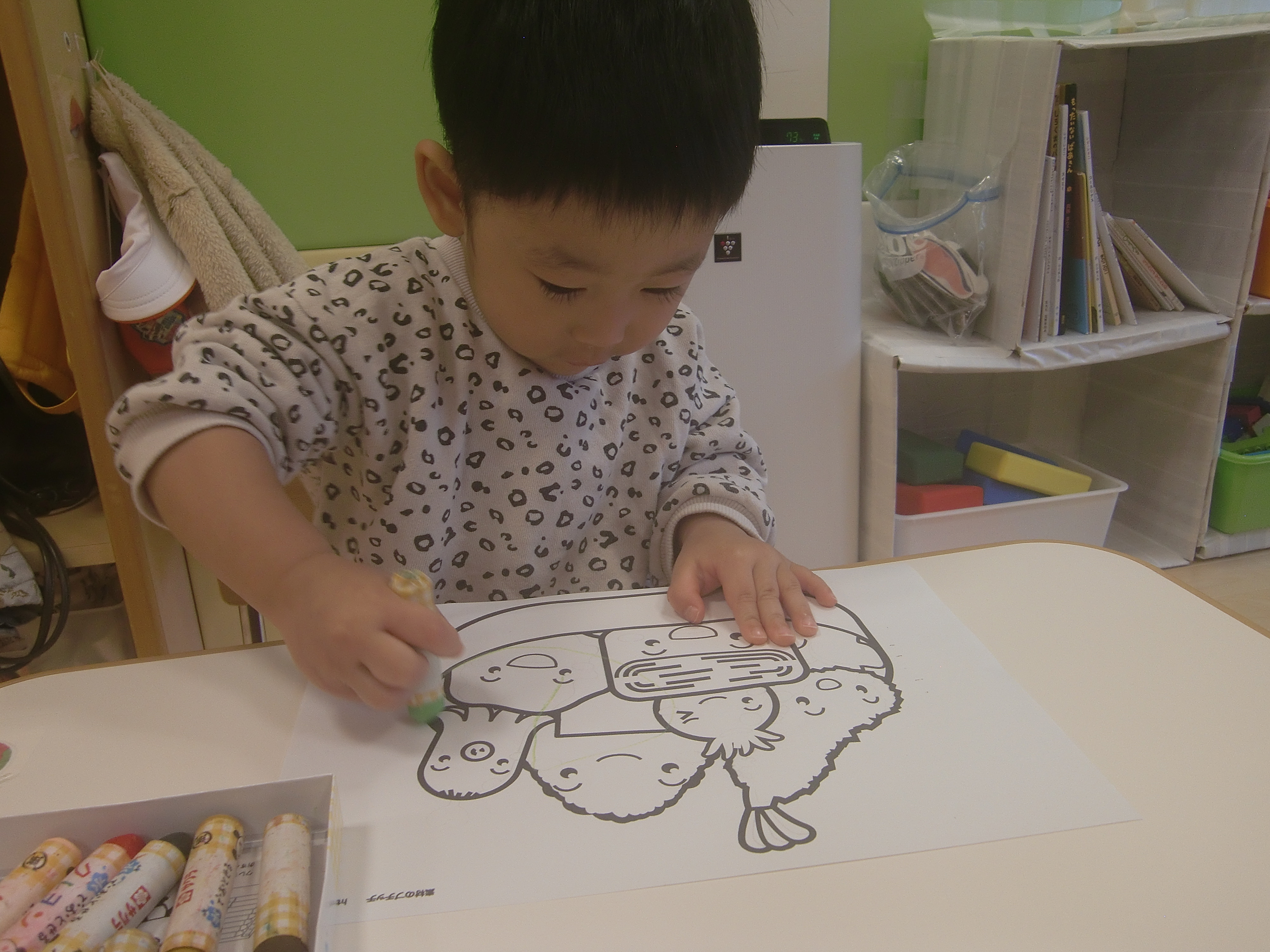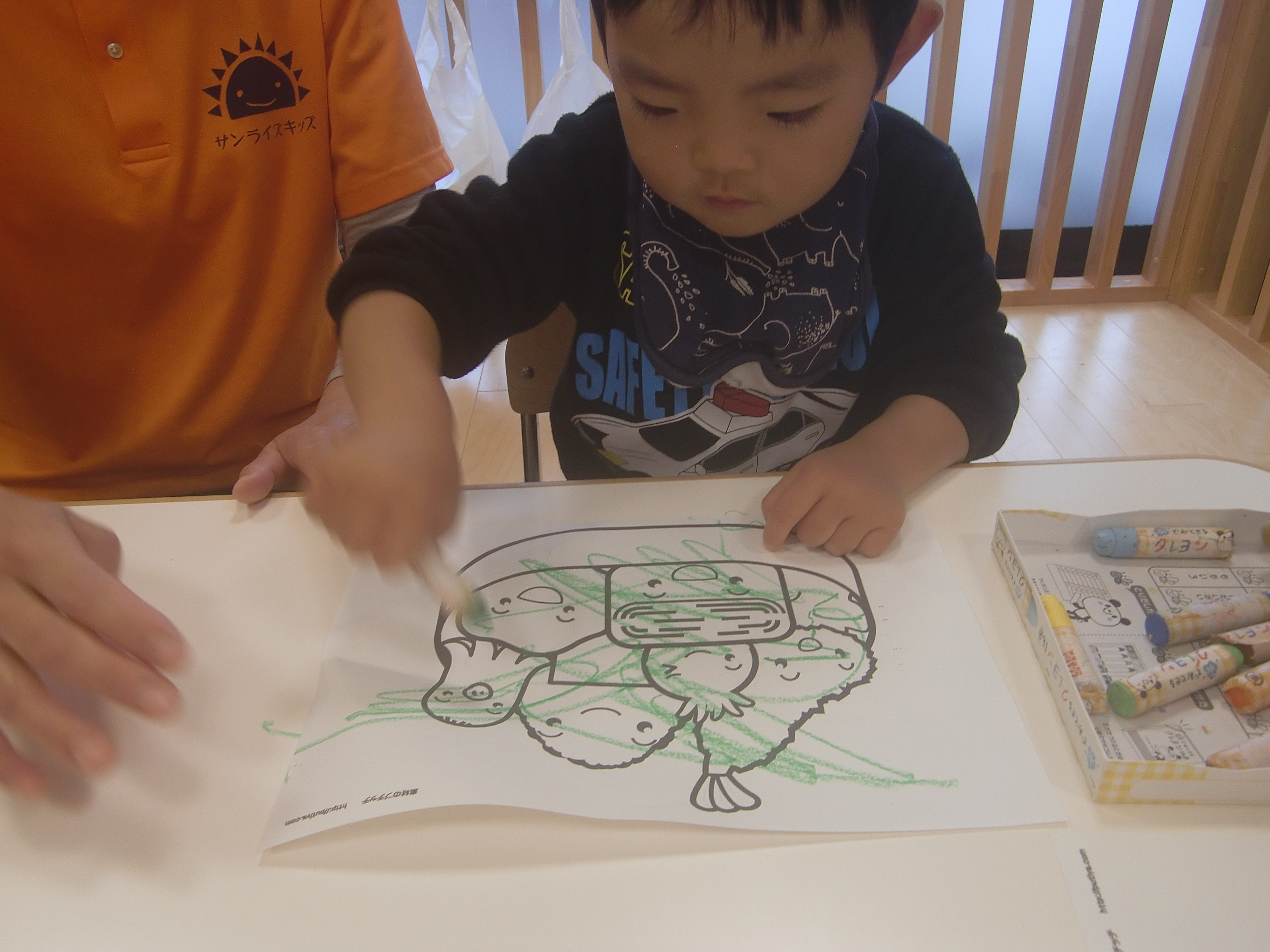 普段はクーピーを使っているのですが、今回はクレヨンを使ってみました。