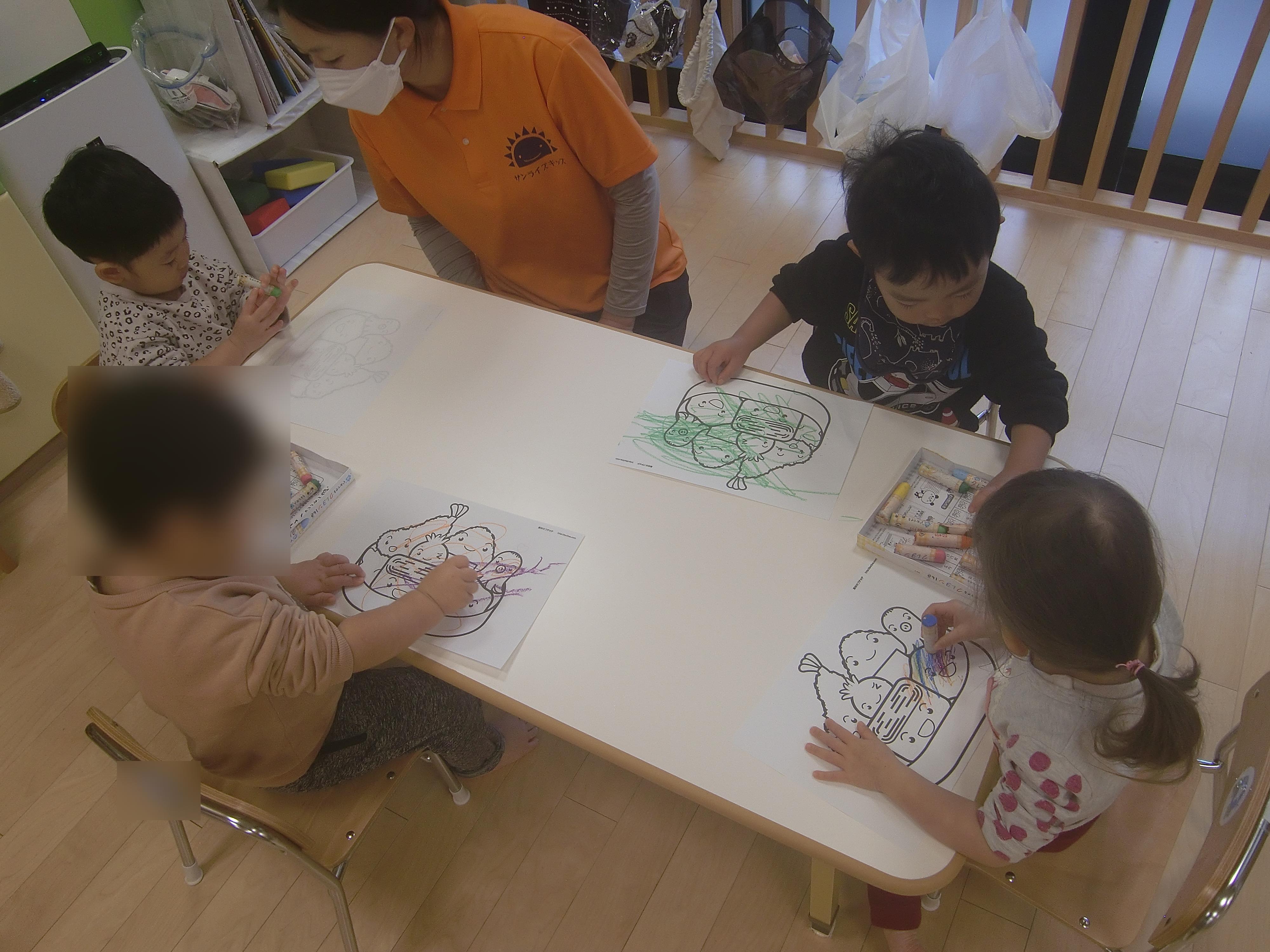 11月の製作に『おべんとうバス』をつくろうと考えているため、みんなでぬり絵をしてみました![]()