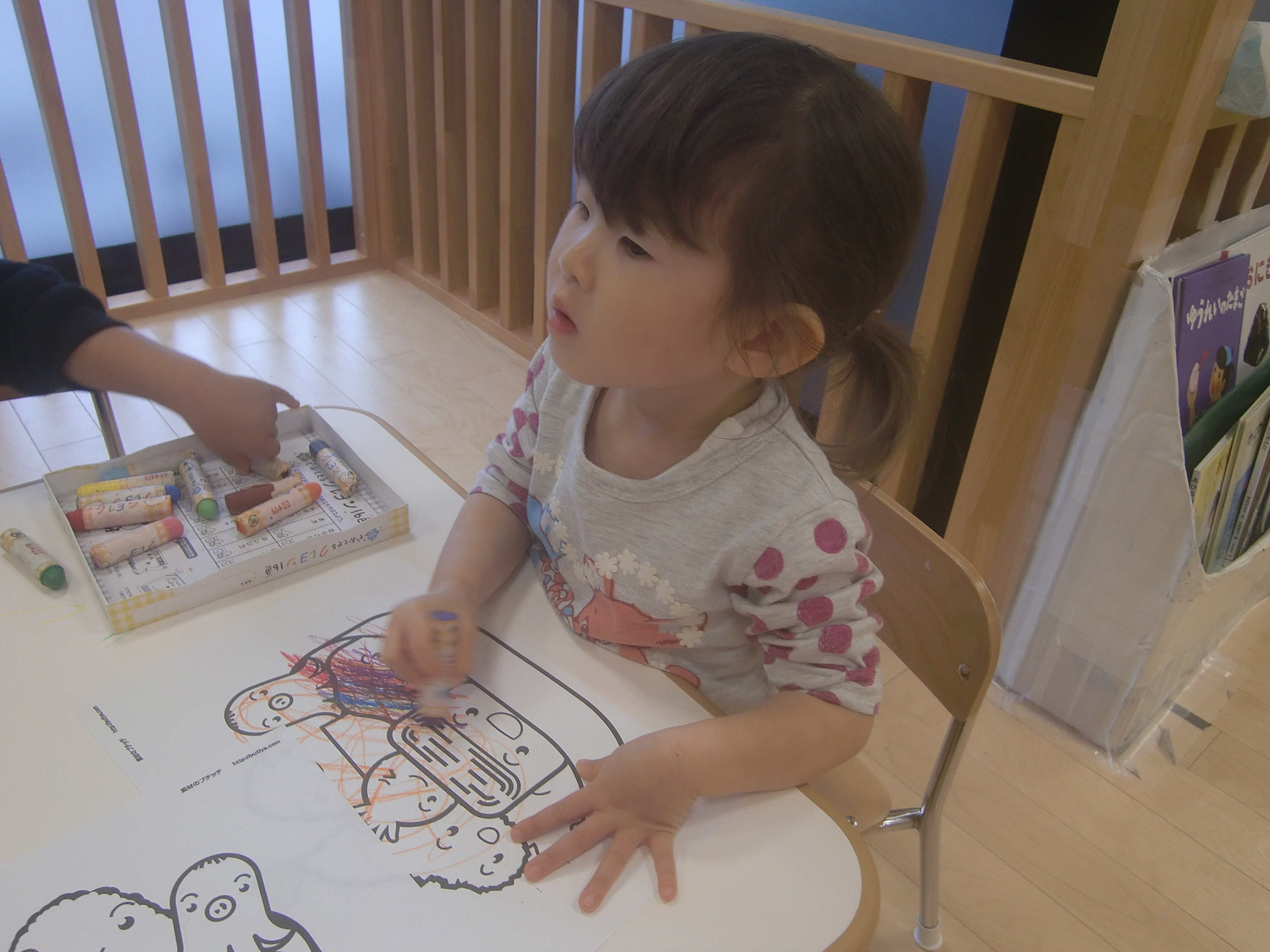 1つのクレヨンの箱を2人で1つずつ使いました![]()