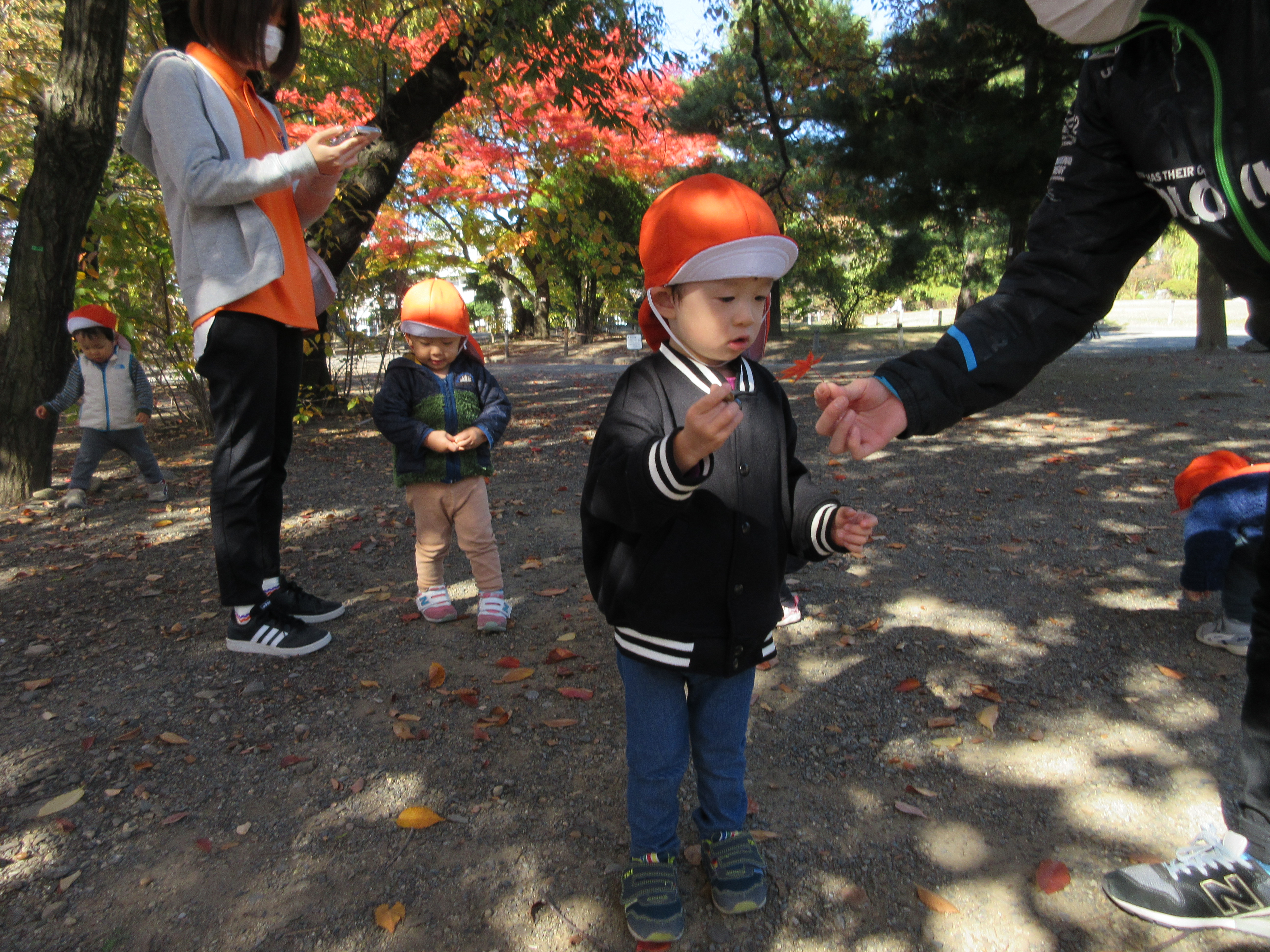 ドングリもすっかり茶色になり、落ち葉もたくさんあったので子どもたちも喜んで手に取ってみていました。